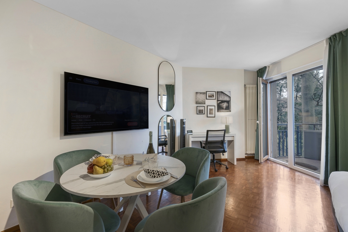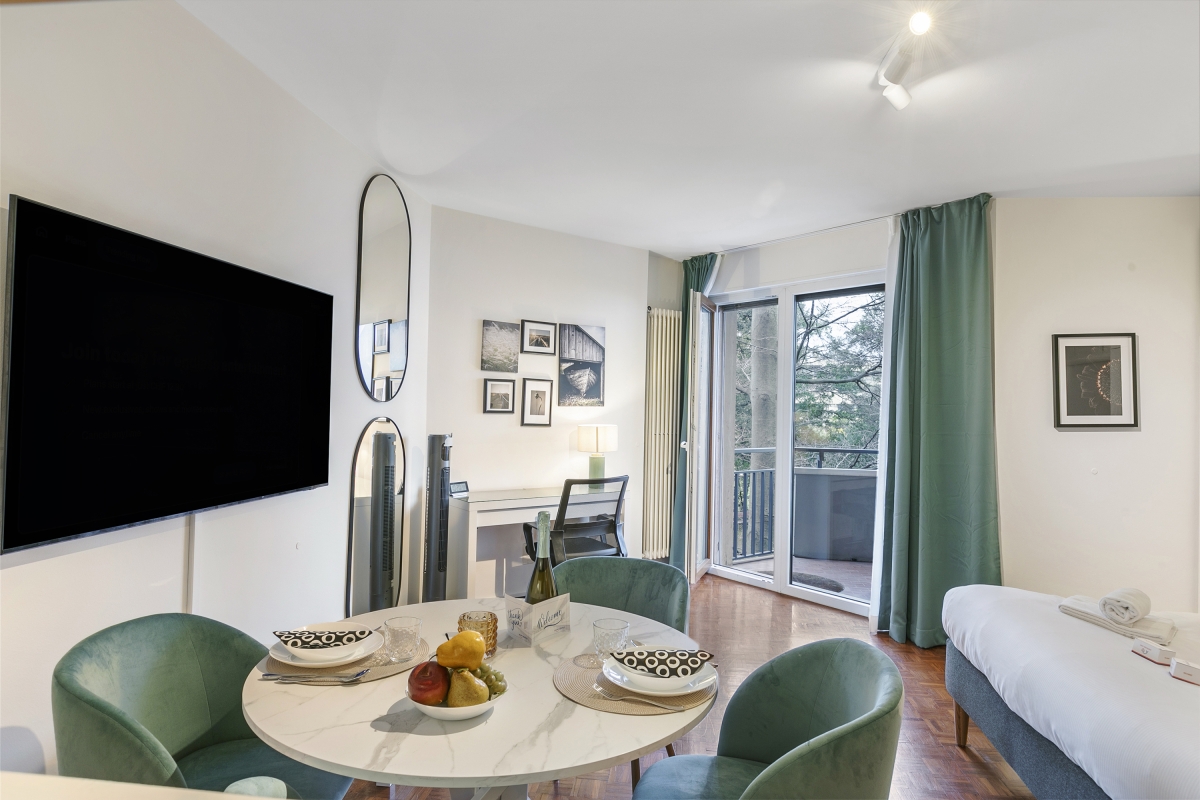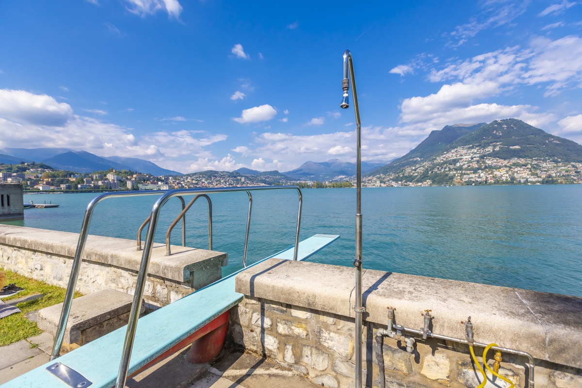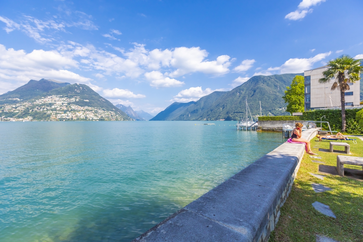 Escape to the tranquil shores of Lake Lugano at this inviting studio apartment in Paradiso (Lugano) with a shared lakefront garden. The perfect getaway for couples, this contemporary retreat for 2 is quietly situated on the 3rd floor of an 8-story building (with a lift). The property enjoys a spacious open-plan living space furnished with a double bed, a large flatscreen Smart HDTV, a dining table, a desk and plenty of storage. A sunny balcony with views of the lake provides a comfortable alfresco extension and the ideal spot to enjoy your morning coffee or an aperitif at the end of the day. The kitchen is separated from the main living area with a breakfast bar and fitted with: a Nespresso coffee machine, an induction hob, a microwave/oven combo, a dishwasher and a small fridge freezer. The private residents’ garden allows direct access to the lake and provides outdoor seating to relax and soak up the sun. Sleeping There is a double bed in the main living space Bathroom Bathroom 1: The bathroom is fitted with a shower in the bath, a bidet, a washbasin and a WC. Additional • On Lake Shore • Lake View • Moutain View • Balcony • Shared Garden • Outside Lounge Set • Central Heating • Free Wi-Fi • Car Not Necessary • Laptop Friendly Workspace • Pets Possible • Smoking Prohibited Extra Charges and Information Piad public parking spaces are available in front of the building, with time limits during the day and the Autosilo Comunale di Paradiso is less than a 15-minute walk. Location The property is situated in the picturesque town of Paradiso on the shores of Lake Lugano. The surrounding area offers beautiful lakeside walks, access to nearby beaches and many hiking routes. The lakeside Sentiero dell’ Olivo, route with its’ many viewpoints and a pathway lined with olive trees is a 15-minute drive away. The closest public Lido is a 2-minute walk and the residents’ garden allows direct access to the lake. Guests can access the garden and lake through a little gate across the street. Guests can reach the centre of Lugano with its beautiful Piazza della Riforma and the luxury shopping street Via Nassa in just 25 minutes on foot/ 5-minute drive. The Waterjet of Paradiso, Lugano Art and Culture Centre, Lugano’s ferry terminal, the funicular to Mount Salvatore and Paradiso’s train station are all a 10 -15-minute walk. Guests can also visit the amazing Swissminiatur (a 7-minute drive) and admirers of the Nobel Prize-winning author Herman Hesse will find a museum dedicated to the novelist in Montagnola (a 10-minute drive). The closest restaurant is a minute’s walk (underneath the building), guests also will find several grocery stores within a 15-minute walk / 3-minute drive and a mini market in the petrol station nearby (open from early in the morning until 9pm). The closest international airport is Milan Malpensa (MXP), approximately a one-hour drive from the accommodation.