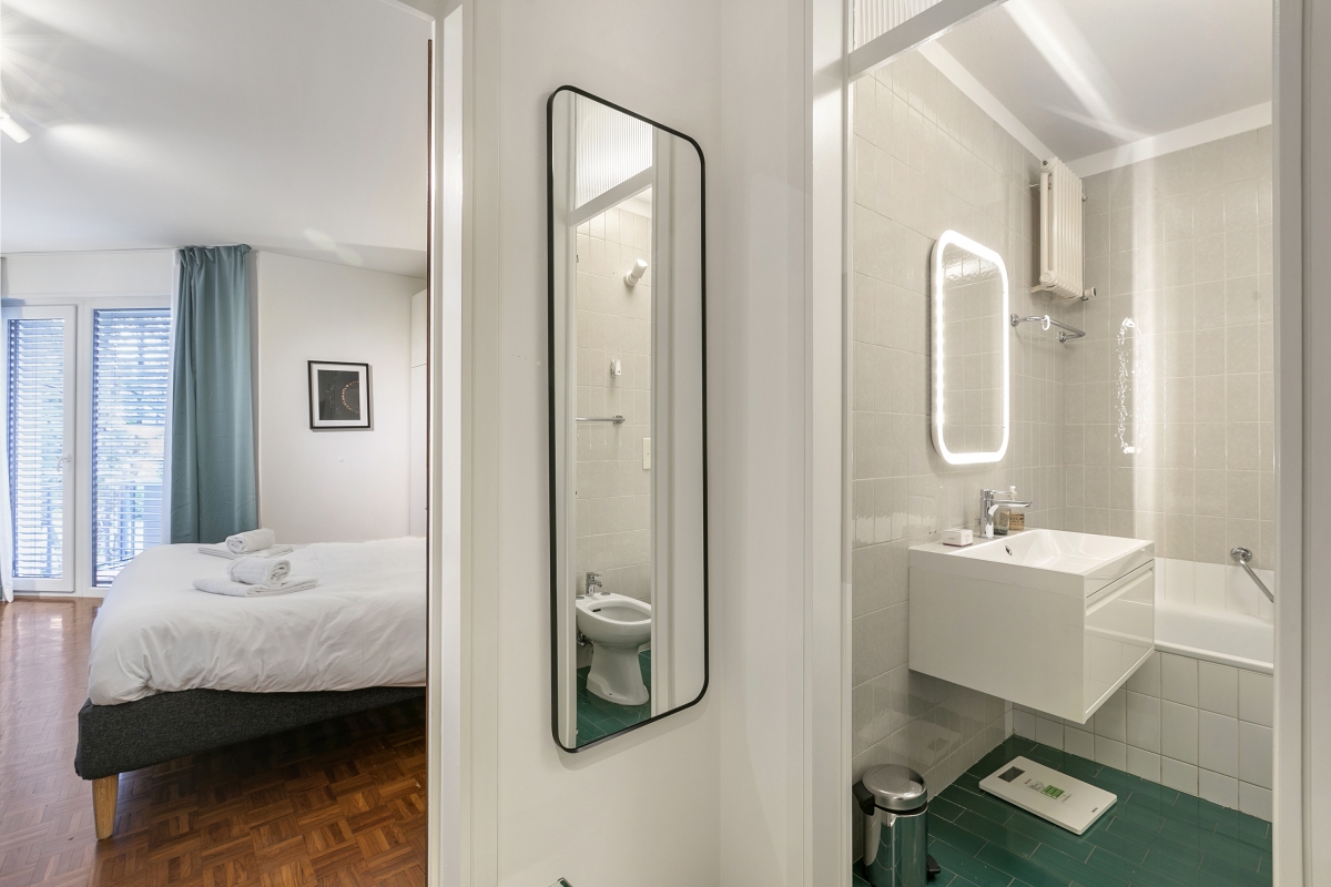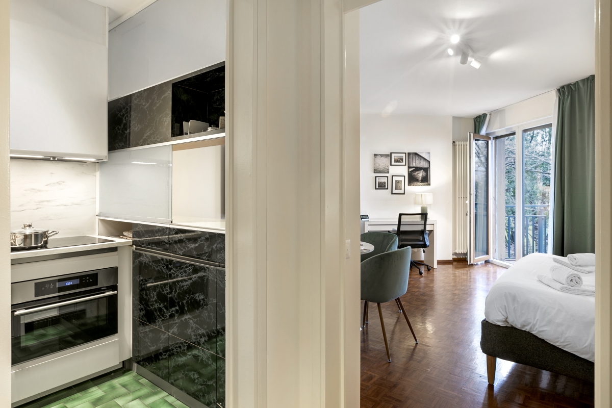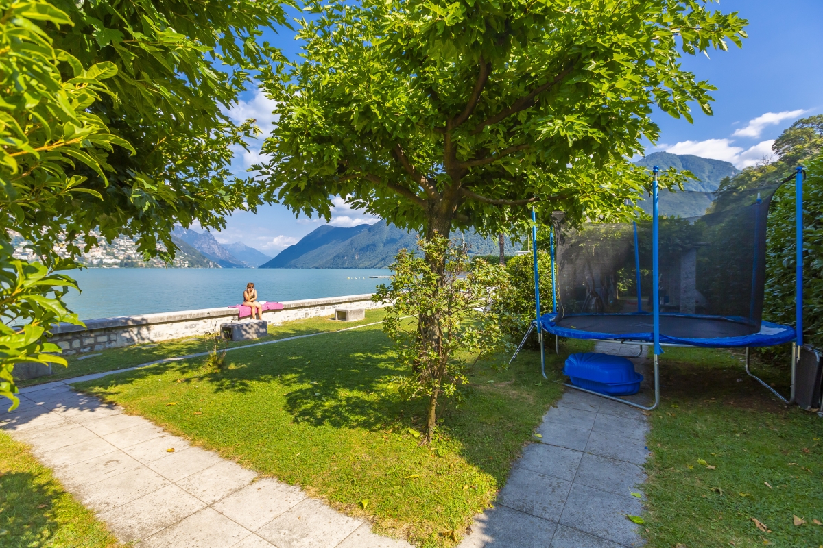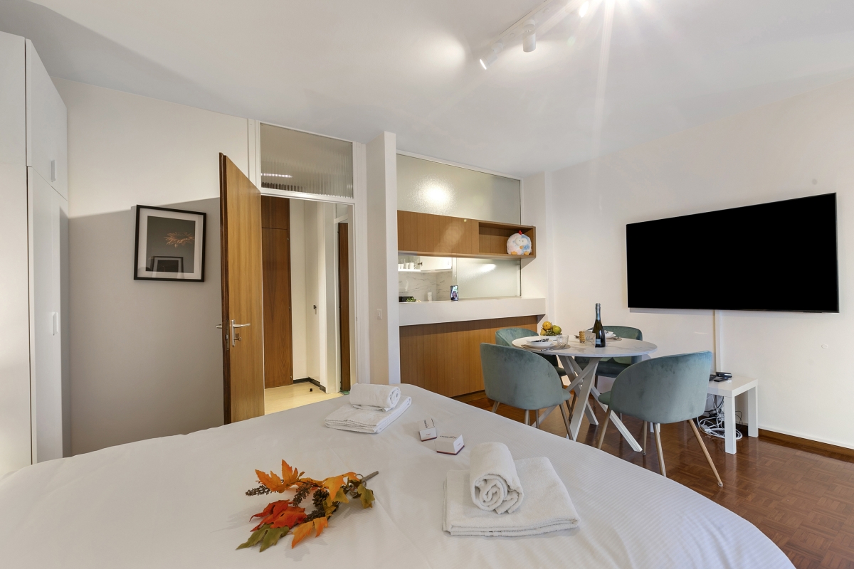 Escape to the tranquil shores of Lake Lugano at this inviting studio apartment in Paradiso (Lugano) with a shared lakefront garden. The perfect getaway for couples, this contemporary retreat for 2 is quietly situated on the 3rd floor of an 8-story building (with a lift). The property enjoys a spacious open-plan living space furnished with a double bed, a large flatscreen Smart HDTV, a dining table, a desk and plenty of storage. A sunny balcony with views of the lake provides a comfortable alfresco extension and the ideal spot to enjoy your morning coffee or an aperitif at the end of the day. The kitchen is separated from the main living area with a breakfast bar and fitted with: a Nespresso coffee machine, an induction hob, a microwave/oven combo, a dishwasher and a small fridge freezer. The private residents’ garden allows direct access to the lake and provides outdoor seating to relax and soak up the sun. Sleeping There is a double bed in the main living space Bathroom Bathroom 1: The bathroom is fitted with a shower in the bath, a bidet, a washbasin and a WC. Additional • On Lake Shore • Lake View • Moutain View • Balcony • Shared Garden • Outside Lounge Set • Central Heating • Free Wi-Fi • Car Not Necessary • Laptop Friendly Workspace • Pets Possible • Smoking Prohibited Extra Charges and Information Piad public parking spaces are available in front of the building, with time limits during the day and the Autosilo Comunale di Paradiso is less than a 15-minute walk. Location The property is situated in the picturesque town of Paradiso on the shores of Lake Lugano. The surrounding area offers beautiful lakeside walks, access to nearby beaches and many hiking routes. The lakeside Sentiero dell’ Olivo, route with its’ many viewpoints and a pathway lined with olive trees is a 15-minute drive away. The closest public Lido is a 2-minute walk and the residents’ garden allows direct access to the lake. Guests can access the garden and lake through a little gate across the street. Guests can reach the centre of Lugano with its beautiful Piazza della Riforma and the luxury shopping street Via Nassa in just 25 minutes on foot/ 5-minute drive. The Waterjet of Paradiso, Lugano Art and Culture Centre, Lugano’s ferry terminal, the funicular to Mount Salvatore and Paradiso’s train station are all a 10 -15-minute walk. Guests can also visit the amazing Swissminiatur (a 7-minute drive) and admirers of the Nobel Prize-winning author Herman Hesse will find a museum dedicated to the novelist in Montagnola (a 10-minute drive). The closest restaurant is a minute’s walk (underneath the building), guests also will find several grocery stores within a 15-minute walk / 3-minute drive and a mini market in the petrol station nearby (open from early in the morning until 9pm). The closest international airport is Milan Malpensa (MXP), approximately a one-hour drive from the accommodation.