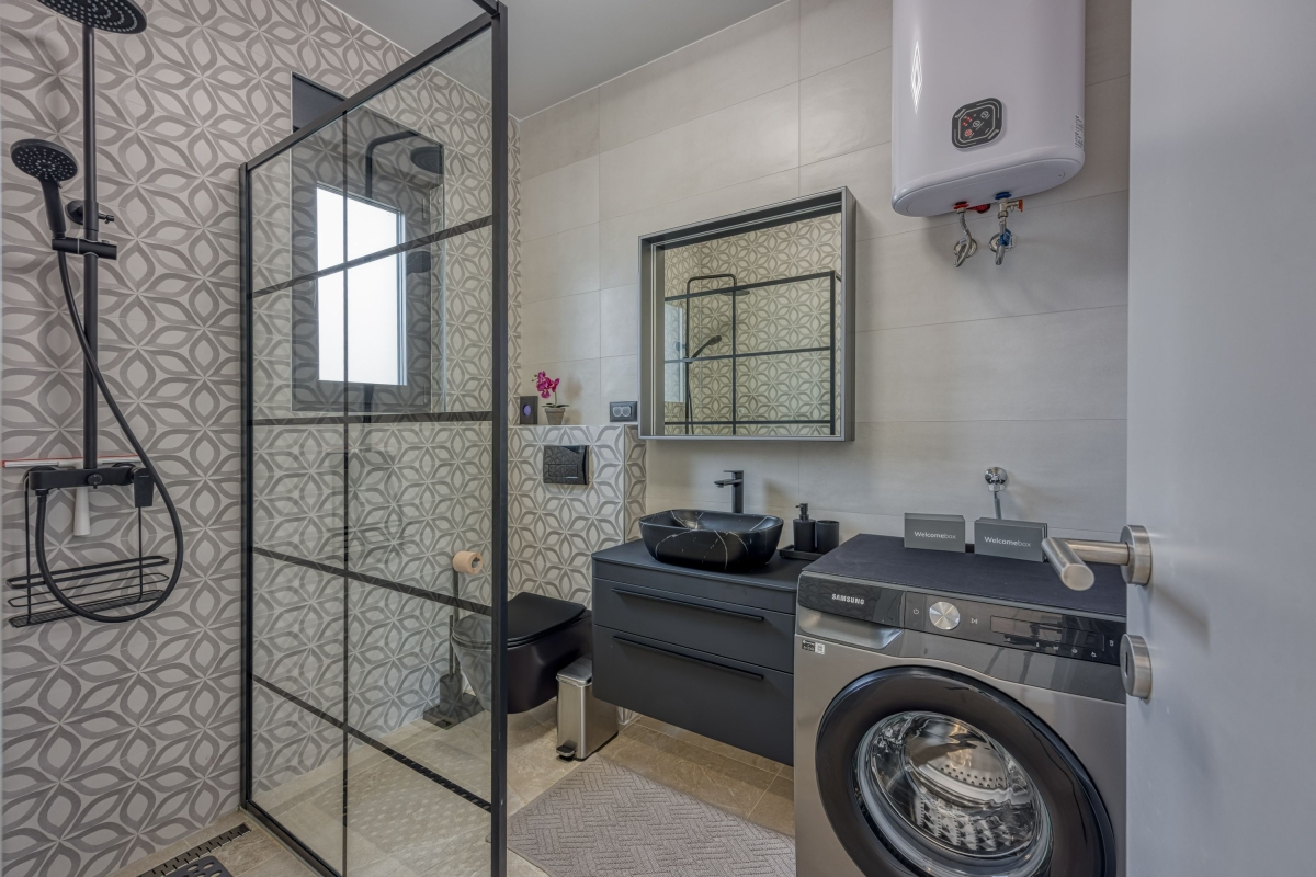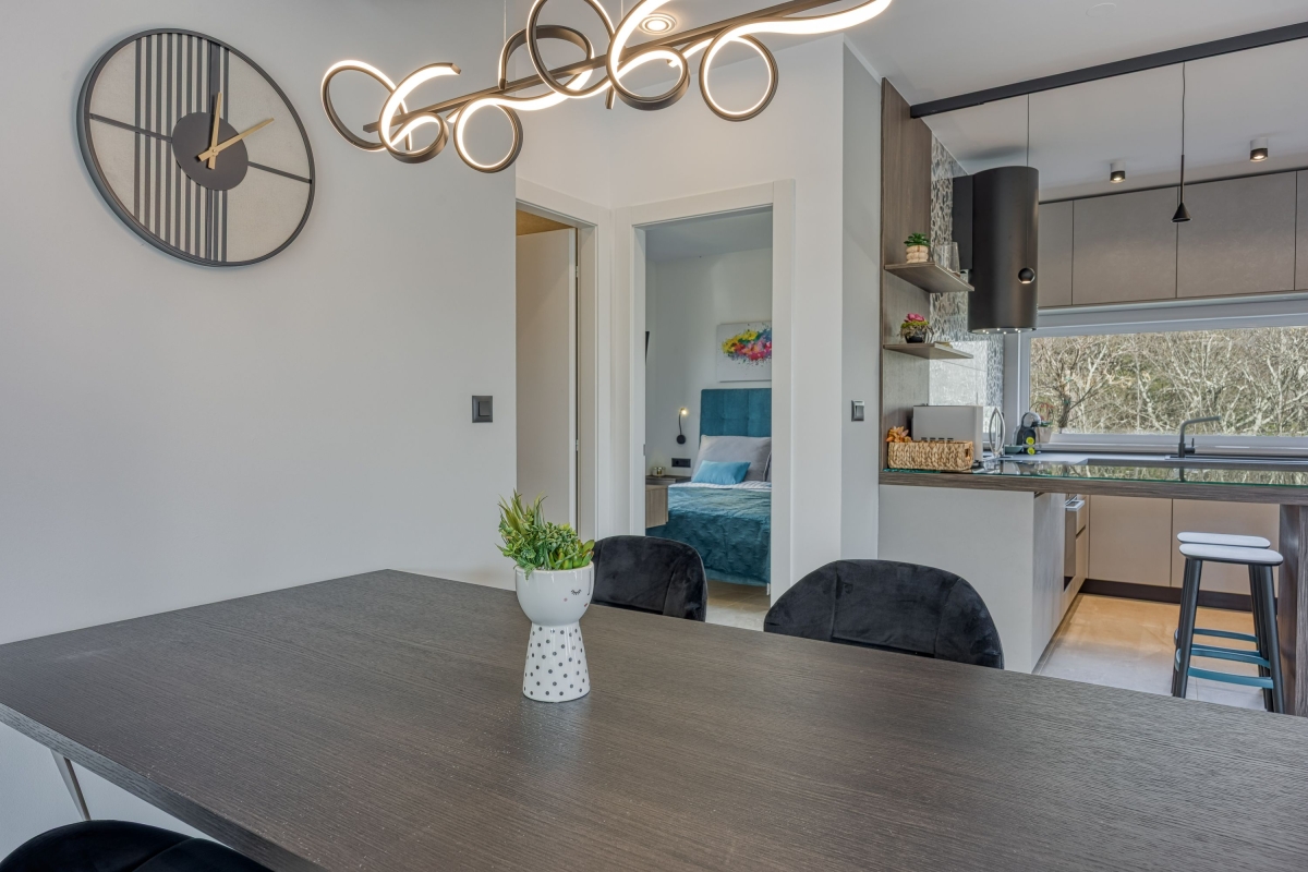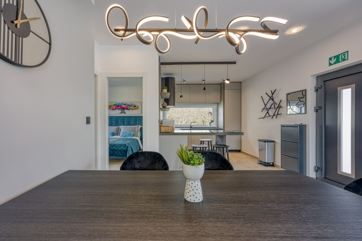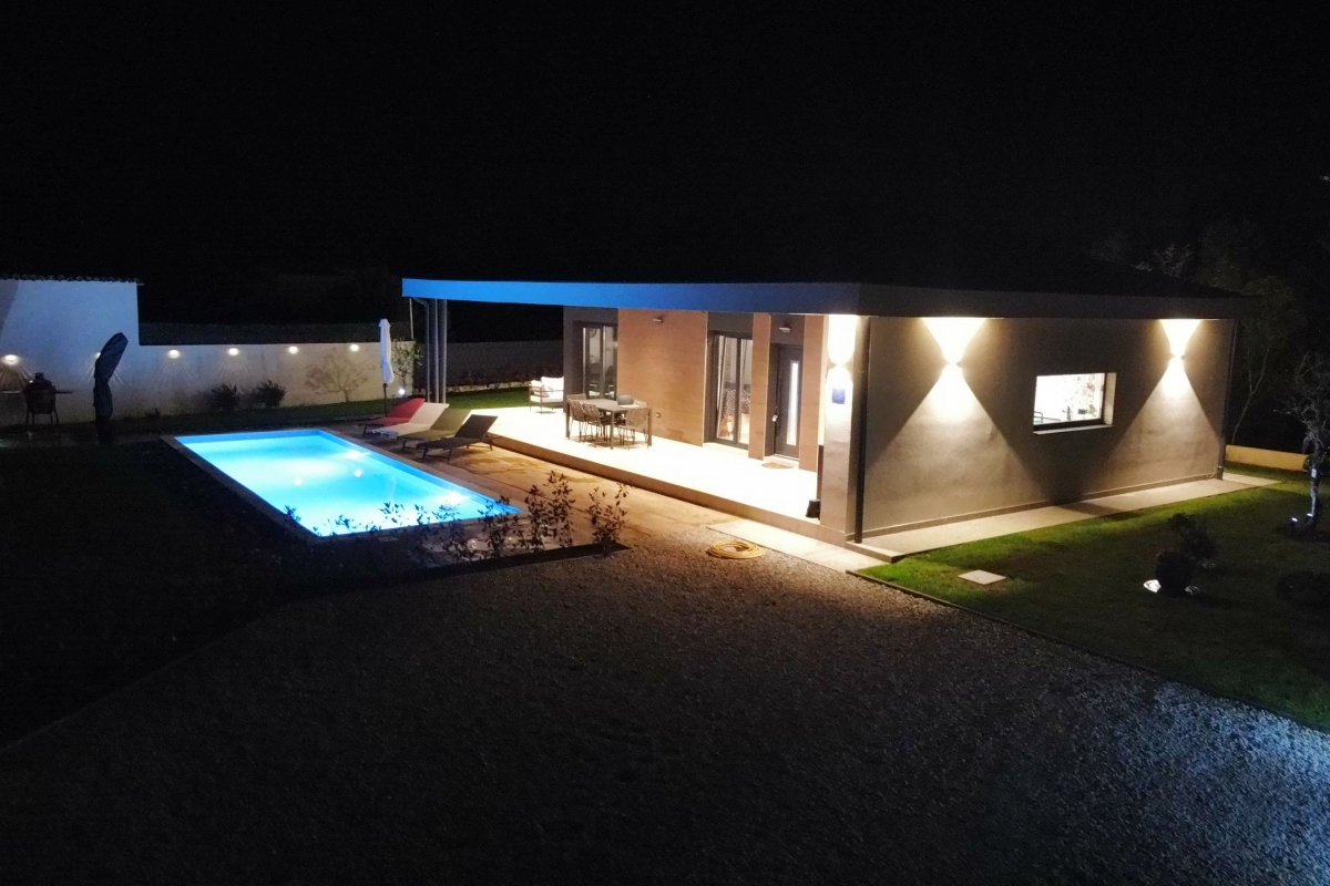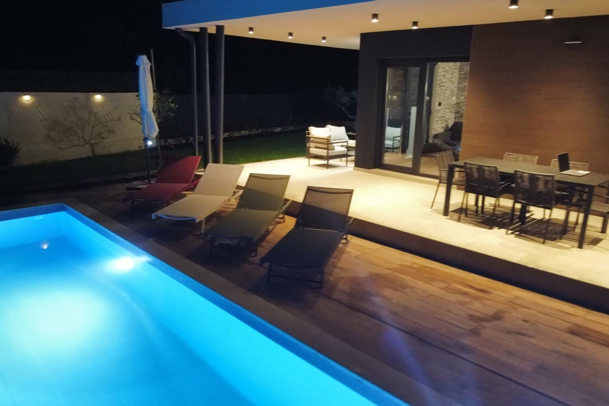 Relax in this charming holiday home in the heart of Istria in western Croatia. Set in a fenced garden, with a private swimming pool, this is the ideal base for a family or friends seeking to explore this beautiful region. This contemporary villa sleeps 5 people. The light-filled open-plan living space features French windows that open onto the terrace by the pool, and is divided into a seating area and a kitchen/diner. The seating area is comfortably furnished with an L-shaped sofa, coffee table and flat-screen TV. The newly fitted kitchen is well-equipped with a breakfast bar, cooker hob, oven, microwave, dishwasher, fridge/freezer and a Dolcegusto coffee machine. Separating the kitchen and the seating area is a dining table with 5 chairs. The shaded veranda allows guests to enjoy life al fresco. It includes an attractive seating area and a separate dining area, with a small kitchen, for memorable meals, overlooking the swimming pool. The poolside sun loungers allow guests to relax in the sun after a refreshing swim. Sleeping Bedroom 1: The master bedroom is furnished with a double bed, a flat-screen TV, a wardrobe and French windows opening onto the garden. Bedroom 2: Another airy bedroom is furnished with a comfortable double bed, a wardrobe, a flat-screen TV and glass doors leading to the garden. Extra: The sofa converts into a comfortable single bed. Bathroom The independent bathroom has a shower, basin, bidet, washing machine and WC Extras: In addition to the second separate WC, there is an outdoor shower by the swimming pool. Additional • Free wifi • Private swimming pool (open 1st May – 1st October) • Outside dining area & BBQ • Air conditioning (both bedrooms) • Flat-screen HD TV • Washing machine • Private, fenced garden • Pets possible, maximum of 2 pets (€70/stay for the second pet) • Child friendly • Baby’s cot & highchair available • Suitable for elderly guests • Security safe • Hair dryer • Private parking - car essential • Check-in from 4.00pm, Check out before 10.00am Location Set in the quiet village of Cvitani, the villa is only 20 minutes from Porec and the coast. Porec is packed with history, with a 6th-century basilica, a fascinating Old Town and a harbour. There are many excellent restaurants and cafés. The beaches and bays along the coastline are some of the finest in Croatia. If you can tear yourself away from the villa’s pool or one of the many stunning beaches, then a trip to Pazin is well worth it. Pazin (23 minutes) is dominated by its medieval fortress in the middle of the town. It also hosts the largest outdoor market in the area, on the first Tuesday of each month. For self-catering, there are supermarkets in Baderna (6 minutes) and Zbandaj (10 minutes). To enjoy some of the area’s excellent wines, head to the Saints Hills Cantina (4 minutes) to sample various wines and buy some to drink at home. Further afield, the city of Pula (40 minutes) makes an unmissable day trip. It has very well-preserved Roman ruins, as well as many cafés, restaurants and a large harbour. Pula International Airport is just 40 minutes away.