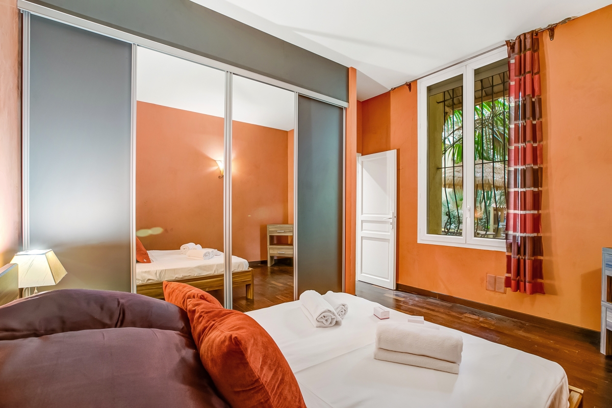 Vacation at this stylish in Beausoleil, just a 2-minute walk from the heart of Monte Carlo, This bright and unique apartment offers the perfect setting for an unforgettable getaway. With world-renowned attractions like the Casino de Paris, the Yacht Club de Monaco, and the Metropole Shopping Center all within walking distance, this retreat is perfect for travelers looking to experience the French Riviera. Situated on the ground floor of a 5-story building, the apartment features a comfortable living room, kitchen with a coffee machine, dishwasher, electric kettle, microwave, oven, toaster, fridge, and induction hob. Additional amenities include free Wi-Fi, a TV, and a washer-dryer for added convenience. The property boasts an inviting outdoor dining area, perfect for enjoying meals al fresco. Guests can also relax at the wellness area with a sauna, adding a touch of luxury to the stay. Sleeping Arrangements Bedroom 1: This bedroom features a double bed, wardrobe, and air conditioning. Bedroom 2: This bedroom offers a double bed, wardrobe, and air conditioning. Bedroom 3: This bedroom includes a double bed, wardrobe, and air conditioning. Crib available on request (to avoid choking risks we do not provide sheets or pillows for the crib). Bathrooms Bathroom 1: This bathroom has a shower and WC. Bathroom 2: This bathroom has a shower and WC. Additional • Free Wi-Fi • Outside Dining Area • Sauna • Washing Machine • In town Location Discover the beauty of Beausoleil, a picturesque town perched on the slopes of the French Riviera. Known for its stunning architecture and proximity to Monaco, Beausoleil offers a perfect blend of French charm and Mediterranean allure. The apartment is just a 10-minute drive from Solarium Beach and Marquet Beach, and an 11-minute drive from Oceanographic Museum of Monaco. Other beaches like Larvotto Beach (a 12-minute drive), Mala Beach (a 12-minute drive) and Pont de Fer (a 15-minute drive) are also at a drivable distance and house several restaurants, beach clubs and pubs. Grimaldi Forum Monaco is an 8-minute drive away, and the glamorous Monte Carlo is just a 10-minute drive from the property. Guests can enjoy local activities such as fishing, hiking, and walking tours. Chapiteau of Monaco is a 10-minute drive, while Nice-Ville Train Station is about 30 minutes away. The nearest airport, Nice Côte d'Azur Airport, is a 35-minute drive from the property.
