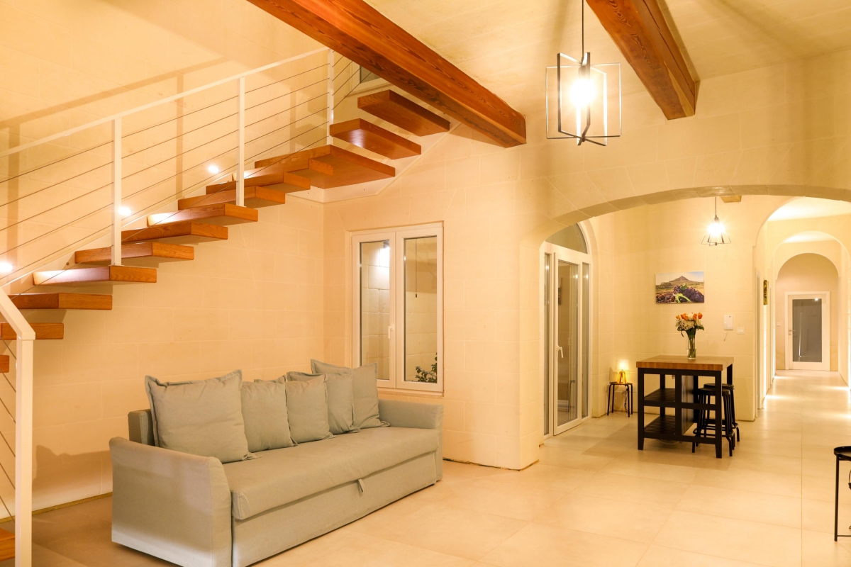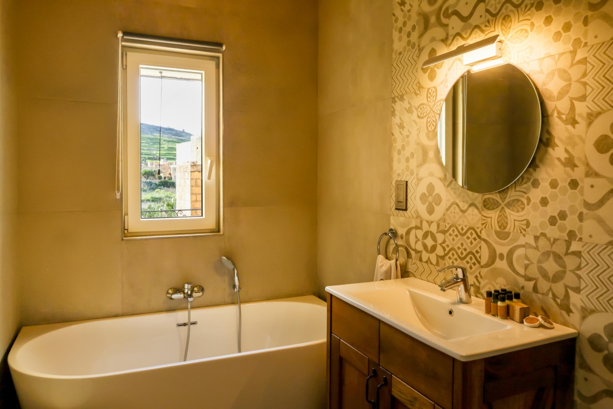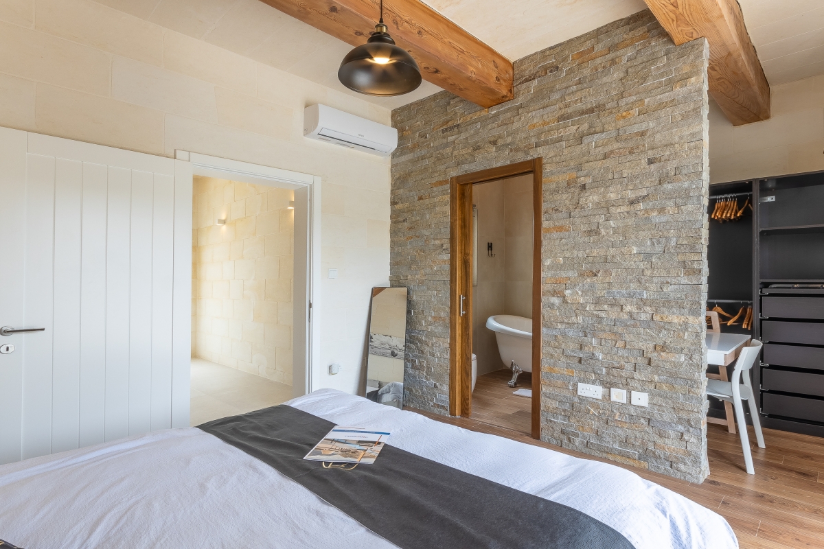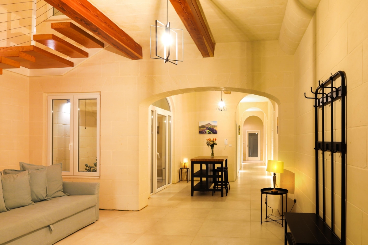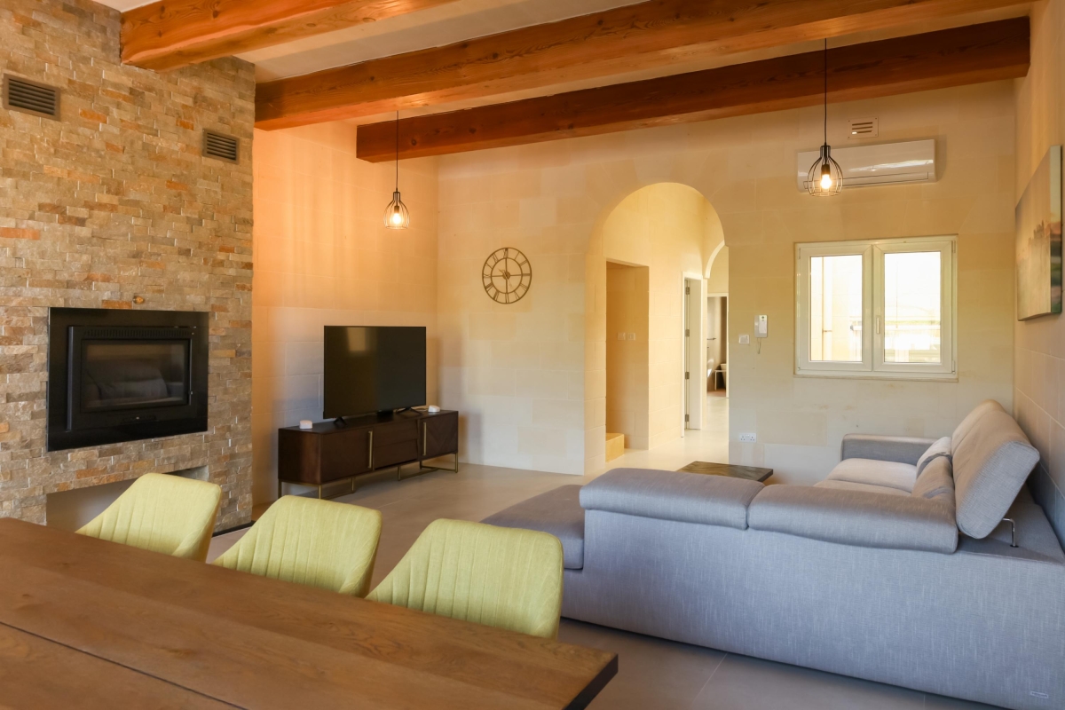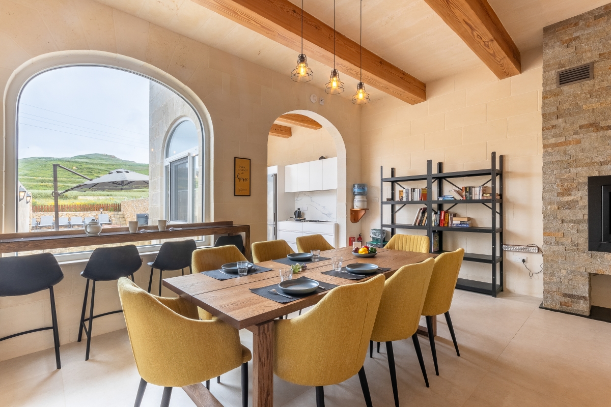 Unwind in luxury at this 4-bedroom stunning villa with a private outdoor pool and breathtaking countryside views in the peaceful village of Ghasri, Gozo. Accommodating up to 10 guests, Solaris Villa blends contemporary elegance with traditional Gozotan charm and is perfect for family and friends getaways. Step inside into an open-plan living space filled with natural light. A cosy fireplace makes the lounge inviting, while the dining area seats eight. The sleek kitchen, equipped with high-end appliances, opens onto the outdoor pool deck. Solaris offers four beautifully designed bedrooms. On the ground floor, a sitting area with a sofa bed leads to two twin bedrooms and a shared bathroom. The first floor features another reading space, a double bedroom with a balcony, and a second bathroom. A stylish lounge with a corner sofa, fireplace, and flat-screen TV sits beside a modern kitchen with a breakfast bar overlooking the pool. A spiral staircase leads to the top-floor master suite, complete with an en-suite bathroom, a private terrace, and stunning views. A separate laundry room adds convenience. Relax outdoors on the sun loungers by the private swimming pool, perfect for soaking up the sun in the villa's very sunny position. An outdoor dining area with a table and chairs allows for enjoyable al fresco meals, complemented by a barbecue area for casual gatherings. Sleeping Bedroom 1: The first bedroom has two single beds and a wardrobe. Bedroom 2: The second has two single beds, a wardrobe and access to the terrace. Bedroom 3: The third has a double bed, wardrobe and access to the balcony. Bedroom 4: The fourth bedroom has a double bed, wardrobe, access to the terrace and an ensuite bathroom. Bathrooms Bathroom 1: The bathroom features a shower, a washbasin and a WC. Bathroom 2: The second features a shower in the bath, a washbasin and a WC. Bathroom 3: The en-suite bathroom features a bathtub fitted with a shower and a WC. Additional • Private outdoor pool (unheated) • Balcony • Outside Dining Area • BBQ • Air conditioning • Free Wi-Fi • Washing Machine • Fireplace • TV • Public Parking • Car Recommended Extra Charges and Information Wi-Fi access will be shared a few days before arrival by the owner. Pets are allowed upon request. Location The property sits on the edge of Ghasri, a small village with a charming square, traditional shops, a chapel, and a grocery store (8-minute walk). Several restaurants and the Tal-Massar Winery are within a 5-minute drive. Nearby attractions include the Basilica of Ta’ Pinu (7-minute walk) and the Ta’ Gurdan Lighthouse (25-minute walk), offering stunning valley views. Wied il-Ghasri, a secluded beach at the end of Ghasri Valley, is a 9-minute drive away, while Reqqa Point (11-minute drive) is ideal for swimming, snorkeling, and diving. Gozo enjoys a Mediterranean climate with over 300 sunny days a year. Summers are hot and dry, while winters remain mild—perfect for countryside walks. The nearest airport, Malta International (MLA), is a 1.5-hour journey, including a ferry crossing from Gozo to Cirkewwa, passing by Comino, known for its caves and turquoise waters.