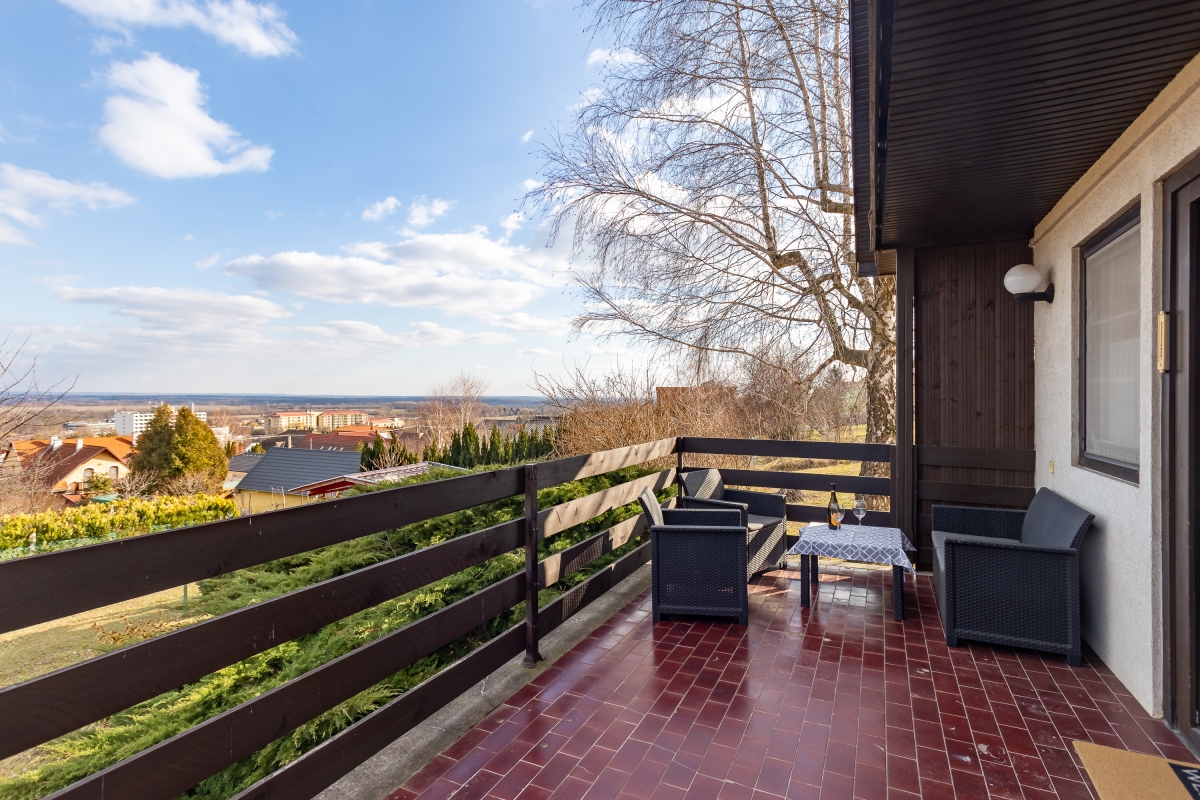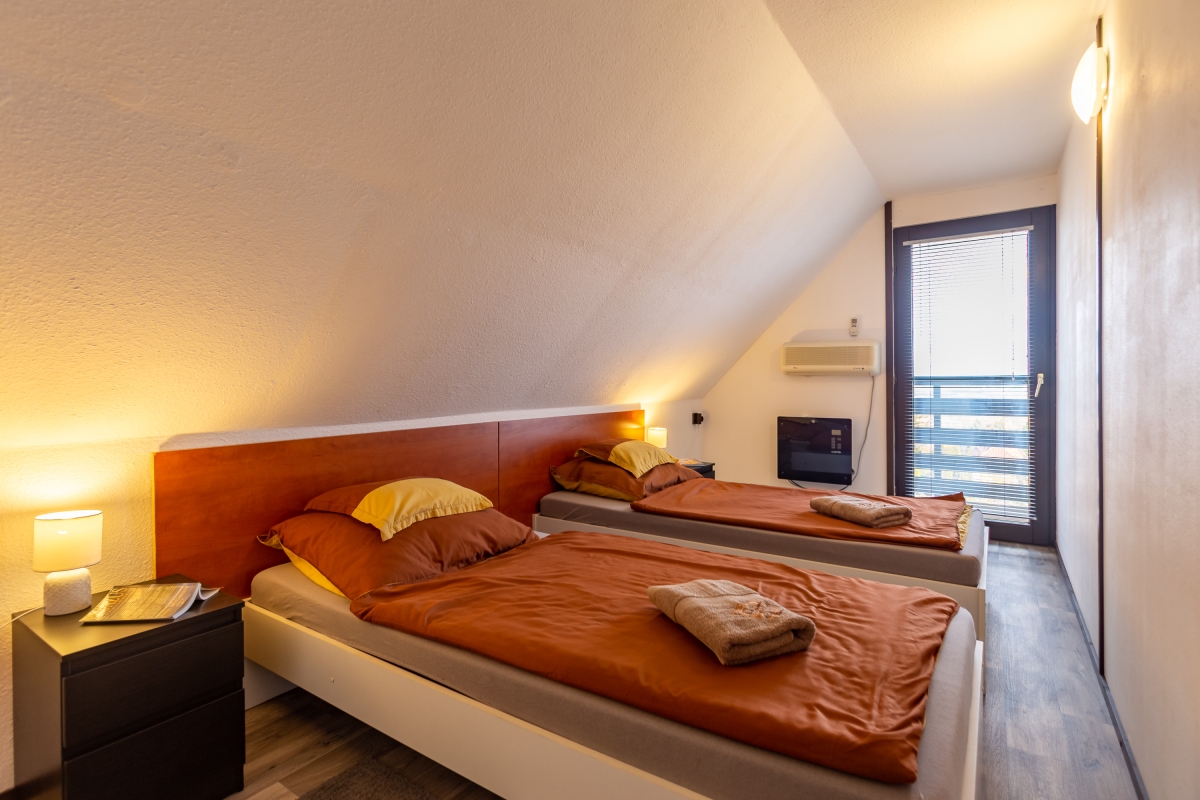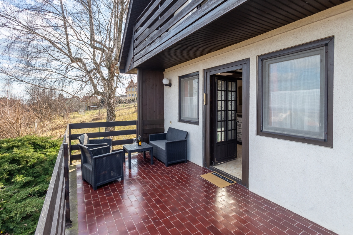 Soak in the waters of Zalakaros at this charming apartment with a fenced garden and panoramic views. Perched on a peaceful hillside, this rustic retreat is perfect for those seeking active relaxation, tranquillity, and rejuvenation. Just a 15-minute walk from the thermal baths, this charming home blends traditional charm with modern comfort. The ground-floor entrance opens onto a welcoming terrace, where a cosy sofa, a flat-screen TV and chairs invite guests to unwind. The open-plan kitchen, dining, and living area create a warm atmosphere inside. The kitchen is fully equipped with an induction hob, an electric kettle, a coffee machine, a microwave, a toaster, and a fridge with a freezer, while a dining table set adds to the charm. A staircase leads to the first floor, where 2 inviting bedrooms with access to the balcony, and a living room comfortably accommodate up to 5 guests. Outside, a beautifully maintained garden offers a fireplace, BBQ, and an alfresco dining space- perfect for enjoying meals under the open sky. Whether you are relaxing in the peaceful surroundings or exploring the island’s natural beauty, this holiday home is an ideal getaway. Sleeping Bedroom 1: This bedroom with a balcony has a double bed and a wardrobe. Bedroom 2: This bedroom has 2 single beds and a wardrobe. This bedroom enjoys access to the balcony. Extra: A single sofa bed in the living room can accommodate 1 guest. Bathroom Bathroom 1: This bathroom has a shower, a wash basin and a WC. Additional • Free Wi-Fi • Private Parking (Car not Necessary) • Pets Allowed on request • Child-Friendly • Smoking not Allowed • Clothes Horse • 15 Steps (Internal) Please note: A damage deposit of 500 has to be paid locally for groups under 21. Location Zalakaros is renowned for its healing thermal waters, known to alleviate muscle pain, musculoskeletal issues, and skin conditions, making it a sought-after wellness destination. Just a stone's throw from the house, an art gallery offers a glimpse into local creativity, while a short stroll leads to a charming traditional Hungarian restaurant, My Grandfather’s Wine Cellar, perfect for an authentic culinary experience. Within an 8-minute walk, guests can enjoy a movie at the local theatre, while a grocery store is a 12-minute walk away for everyday essentials. For outdoor enthusiasts, the region boasts diverse attractions. A 14-minute walk leads to aquatic centres and an outdoor swimming pool, while a scenic 20-minute walk or a quick 3-minute drive reaches hiking trails. Nearby, the breathtaking thermal lake and eco-park, the forest lookout, and historical adventure parks, including 7 Vezér, Kányavár Island, and Nagybakónak Energy Park, offer unforgettable experiences. The rock gorge and the thrilling water park, just a 3-minute drive away, complete the perfect mix of relaxation and adventure. Liszt Ferenc Airport in Budapest is approximately 2 hours and 20 minutes away from here.