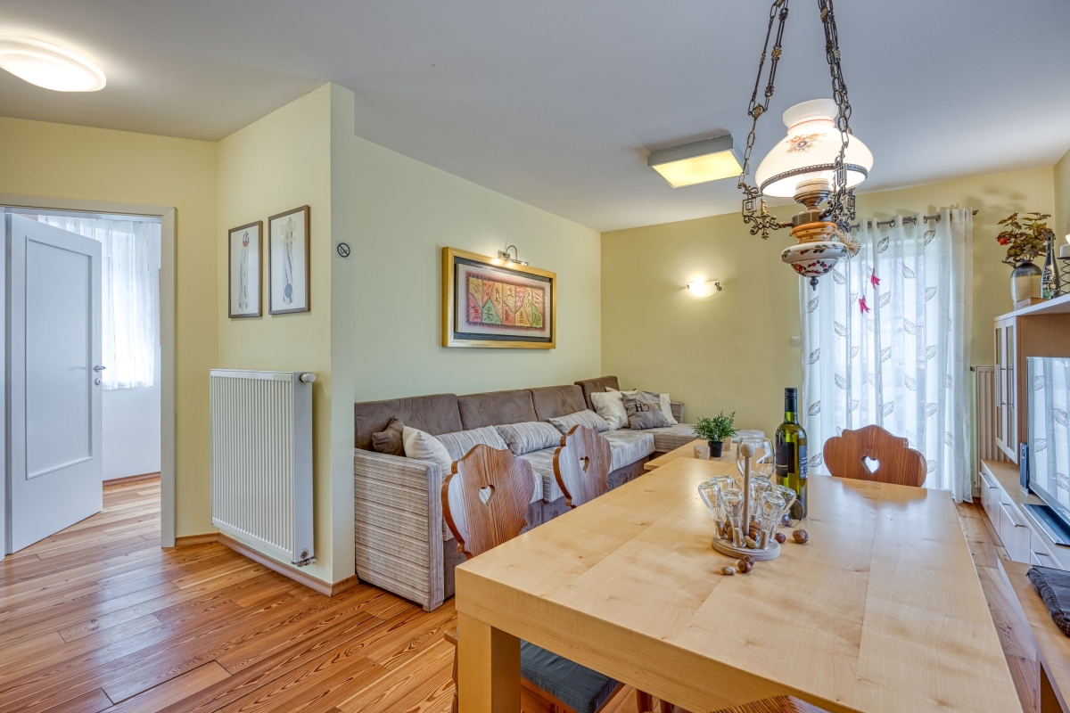 Escape from it all at this charming chalet apartment for 6, quietly situated in the lush countryside, at the foothills of the Julian Alps. The property is conveniently located a 4-minute drive from Kranjska Gora, making it an ideal base during the ski season or a peaceful summer retreat. The property is surrounded by nature and arranged over the ground and lower ground floors of a two-story building. With plenty of space for alfresco living, guests can relax in the garden, cook meals on the BBQ and dine outside on the terrace. There is even a private sauna to help visitors unwind after a busy day exploring the mountains. Inside, Alpine Chalet Planica features a generous open plan living space furnished with a comfortable double sofa, a large dining table and a Smart flatscreen digital HDTV. This area also incorporates the kitchen, which is fitted with a drip coffee machine, an induction hob, an oven and a fridge freezer. Sleeping Bedroom 1: The master bedroom is furnished with a double bed and a wardrobe Bedroom 2: The spacious second bedroom is furnished with two single beds, a wardrobe and a desk Extra: There is a double sofa bed in the living room Bathroom Details Bathrooms 1 & 2: Both bathrooms are fitted with a shower, a washbasin and a WC Additional • Sauna • Private Garden • Terrace • BBQ • Outside Dining Area • Outside Table-Chairs • Free Wi-Fi • Washing Machine • Central Heating • Laptop Friendly Workspace • Car Essential • Private Parking Space • Smoking Prohibited Extra Charges A tourist tax of €2.50 is payable per person per day Location The property is situated in the countryside, a 4-minute drive from Kranjska Gora, one of Slovenia’s premier winter sports centres. Located in a peaceful alpine location close to the borders with Austria and Italy, the surrounding area offers travellers opportunities for year-round outdoor adventures. In winter, it’s a family-friendly ski resort, and in the summer, it offers hiking, cycling, and lakeside relaxation. Nearby attractions include Lake Jasna (a 7-minute drive), a calm alpine lake with a sandy play area and shallow waters that are perfect for paddleboarding, and the picturesque Vršič Pass (a 28-minute drive), which offers breathtaking views and outdoor activities. For children, Kekec's Land (Kekčeva dežela) is a family-friendly attraction in Kranjska Gora (a 5-minute drive), inspired by the beloved Slovenian literary character Kekec – please note that booking is recommended. Additionally, the Planica Nordic Centre (an 8-minute drive) is home to a ski jumping museum, a glass elevator that takes you up the hill and, in the summer, the world’s steepest zipline. The closest restaurant is a 10-minute walk / 2-minute drive away, and there are several supermarkets in Kranjska Gora, a 4-minute drive away. The closest international airport is Ljubljana Jože Pučnik Airport (LJU), approximately a 50-minute drive away.