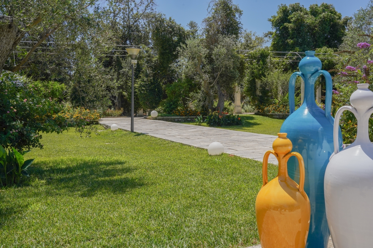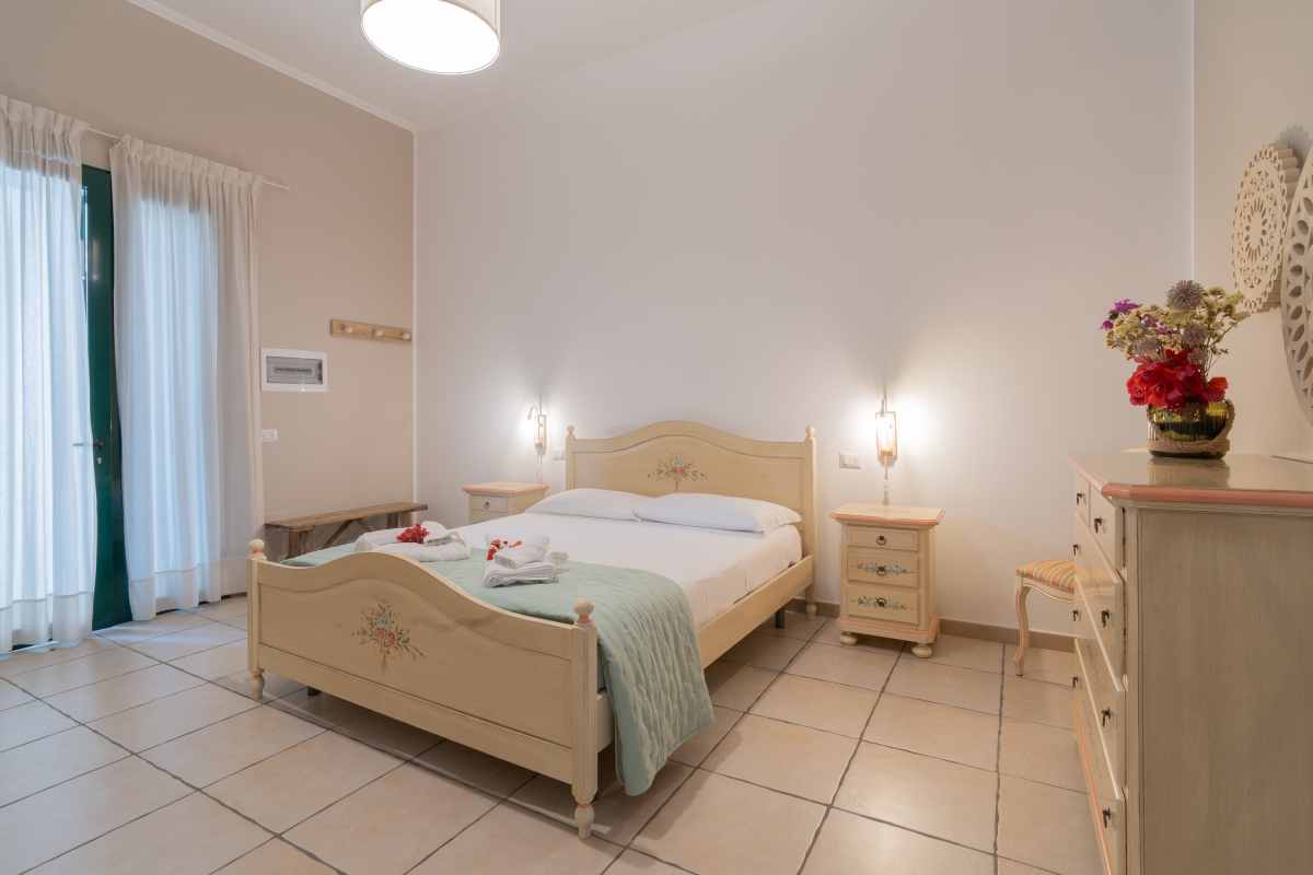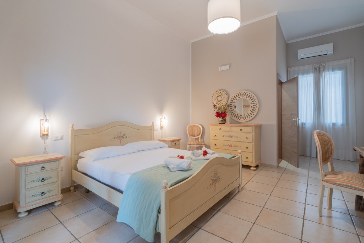 Nestled in the heart of Salento, Masseria San Biagio is a tranquil retreat, surrounded by woodland and historic sites. The villa is modern but has been sensitively built along traditional lines. Throughout the year it is an ideal base for 3 people who want to explore Puglia, with its famous food and wines. On the ground-floor, this bedroom has an independent entrance off the main courtyard. It is furnished with a double bed, drawers, a writing table, a wardrobe, a coffee maker and a flat-screen TV. It is possible to add a single bed for a third guest Masseria San Biagio’s gardens and outside spaces have been created with as much care and attention as the interiors. Guests can enjoy breakfast outside, with honey from the bees on the estate and homemade marmalade. The owners have laid out different paths around the grounds, which range from the scents path through aromatic herbs and flowers; to the historical path which leads to the chapel of San Biagio which is over 1000 years old and the fitness path for more energetic guests. The large swimming pool is surrounded by an extensive terrace, furnished with sun loungers, umbrellas and seating areas. It makes the ideal spot to relax in the sun after a refreshing dip.There is also a massage and well-being centre on site where guests can have a soothing massage or other treatments. Sleeping The room has a double bed and a single bed. Bathroom The separate bathroom is appointed with a shower, basin, bidet and WC. Additional • Free Wifi • Shared swimming pool (open 1st June to 1st September) • Shared gardens • Outside dining - breakfast is included • Air conditioning • Flatscreen TV • Smoke & CO detectors • Fire extinguisher • Hair dryer • Private parking - car essential Location If you can tear yourself away from the tranquil gardens then the historic centre of Calimera is just a 5-minute drive. The town is known for its traditional white houses as well as palaces and beautiful churches. Calimera’s weekly market takes place on Thursday and is the best place to pick up the freshest local delicacies and experience authentic Puglian life. Salento’s most beautiful beaches are all within easy reach. The beaches at Otranto (25 minutes), Porto Cesareo (45 minutes) and Gallipoli (45 minutes) are known for their pristine sea and shallow waters, ideal for younger children and snorkelling. Golfers will enjoy the two courses near the town of Acaya (20 minutes) or for more exercise and a hike through unspoilt Mediterranean countryside, there is the WWF nature reserve of Le Cesine (25 minutes). The closest airport is at Brindisi - just 55 minutes away by car.