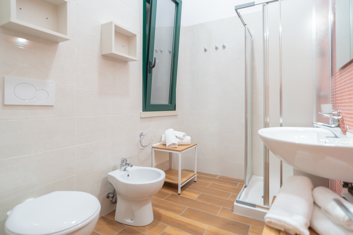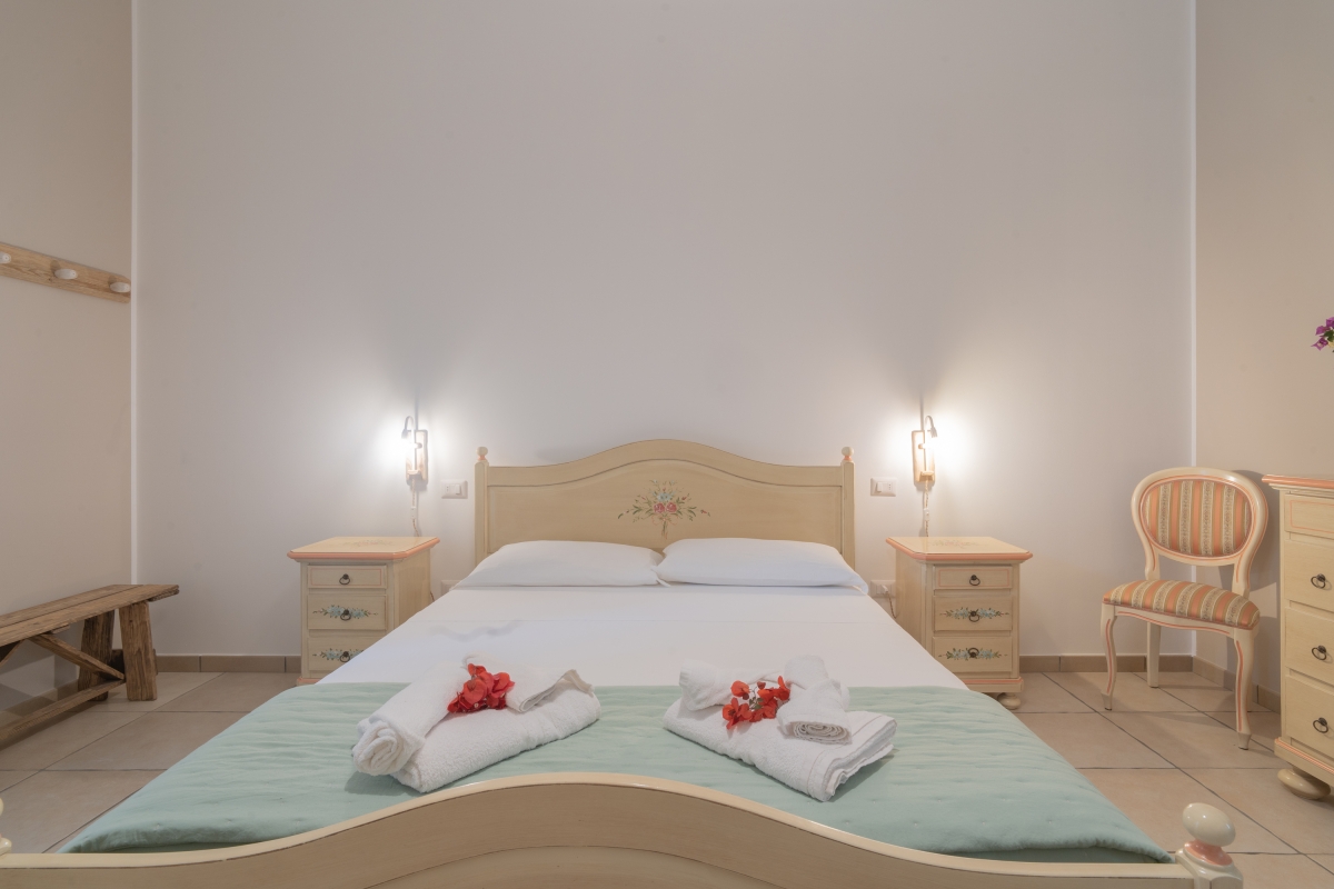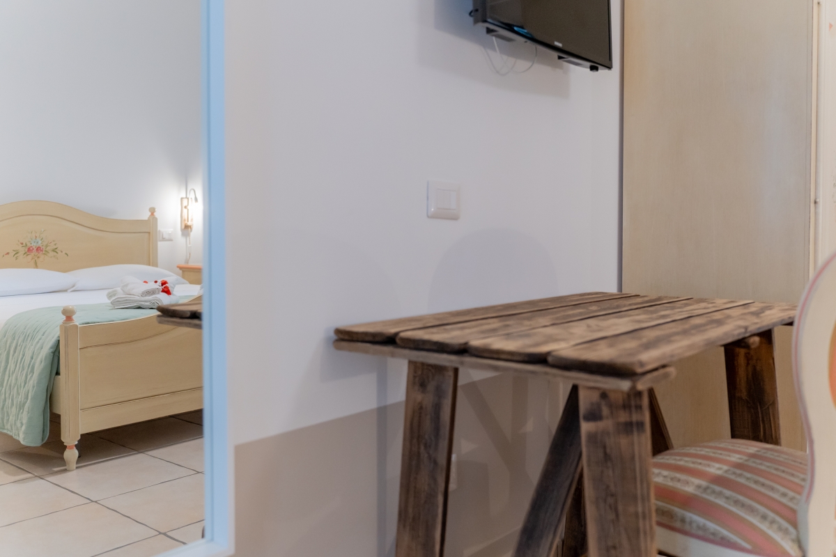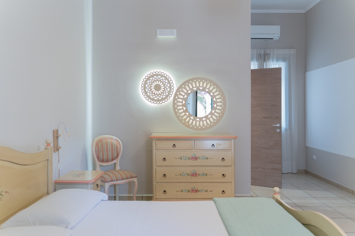 Nestled in the heart of Salento, Masseria San Biagio is a tranquil retreat, surrounded by woodland and historic sites. The villa is modern but has been sensitively built along traditional lines. Throughout the year it is an ideal base for 3 people who want to explore Puglia, with its famous food and wines. On the ground-floor, this bedroom has an independent entrance off the main courtyard. It is furnished with a double bed, drawers, a writing table, a wardrobe, a coffee maker and a flat-screen TV. It is possible to add a single bed for a third guest Masseria San Biagio’s gardens and outside spaces have been created with as much care and attention as the interiors. Guests can enjoy breakfast outside, with honey from the bees on the estate and homemade marmalade. The owners have laid out different paths around the grounds, which range from the scents path through aromatic herbs and flowers; to the historical path which leads to the chapel of San Biagio which is over 1000 years old and the fitness path for more energetic guests. The large swimming pool is surrounded by an extensive terrace, furnished with sun loungers, umbrellas and seating areas. It makes the ideal spot to relax in the sun after a refreshing dip.There is also a massage and well-being centre on site where guests can have a soothing massage or other treatments. Sleeping The room has a double bed and a single bed. Bathroom The separate bathroom is appointed with a shower, basin, bidet and WC. Additional • Free Wifi • Shared swimming pool (open 1st June to 1st September) • Shared gardens • Outside dining - breakfast is included • Air conditioning • Flatscreen TV • Smoke & CO detectors • Fire extinguisher • Hair dryer • Private parking - car essential Location If you can tear yourself away from the tranquil gardens then the historic centre of Calimera is just a 5-minute drive. The town is known for its traditional white houses as well as palaces and beautiful churches. Calimera’s weekly market takes place on Thursday and is the best place to pick up the freshest local delicacies and experience authentic Puglian life. Salento’s most beautiful beaches are all within easy reach. The beaches at Otranto (25 minutes), Porto Cesareo (45 minutes) and Gallipoli (45 minutes) are known for their pristine sea and shallow waters, ideal for younger children and snorkelling. Golfers will enjoy the two courses near the town of Acaya (20 minutes) or for more exercise and a hike through unspoilt Mediterranean countryside, there is the WWF nature reserve of Le Cesine (25 minutes). The closest airport is at Brindisi - just 55 minutes away by car.