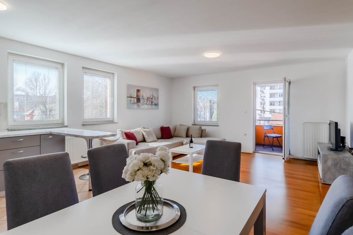 Explore Zagreb with ease from this 2-bedroom apartment in the Tešnjevka neighborhood. With two beautifully designed bedrooms, a large open-space living room, and a fully equipped kitchen, this apartment is perfect for families, couples, or business travelers. The balcony overlooking the neighborhood provides the perfect spot to enjoy your morning coffee or unwind in the evening with a glass of wine. A standout feature of this apartment is its private parking space—a rare and highly sought-after perk in Zagreb, especially near the city center. Enjoy the freedom to explore the city without the hassle of searching for parking, knowing your vehicle is securely accommodated. Situated in Tešanjska ulica, this apartment is in a vibrant area with local cafes, restaurants, and shops well connected to the city center by public transport or a short drive. Sleeping Bedroom 1: This bedroom features a comfortable double bed and a wardrobe. Bedroom 2: The second bedroom features a double bed and a wardrobe. Extra: The living room has a sofa bed. Bathroom Bathroom 1: The bathroom has a bathtub fitted with a shower and a WC. Additional • Free Wi-Fi •Balcony • Pets Allowed • Central Heating • Child Friendly • In Town • Private Parking Space • Washing Machine • Hair Dryer • Outside Table-Chairs • Laptop Friendly Workspace Location This stylish apartment is ideally situated in Zagreb, the vibrant capital of Croatia, just a 10-minute drive from the medieval Upper Town (Gornji Grad) and the elegant Lower Town (Donji Grad). Guests can easily explore Zagreb’s rich history, from the iconic St. Mark's Church with its colorful tiled roof to the Lotrščak Tower and the magnificent Zagreb Cathedral. For nature enthusiasts, Maksimir Park, Zagreb’s oldest public park, offers a serene escape with picturesque lakes, walking trails, and even a zoo—just 15 minutes away. The scenic Jarun Lake, also a 15-minute drive, is perfect for water sports, cycling, and summer relaxation at its beaches and lakeside cafés. Venture a bit further to the Medvedgrad Fortress, perched on the southern slopes of Medvednica Mountain, just 20 minutes away. This medieval fortress rewards visitors with breathtaking panoramic city views and is a fantastic spot for a short hike. For a charming day trip, the fairytale town of Samobor is only 25 minutes away, offering cobblestone streets, medieval architecture, and the tranquil Gradna River. For travelers arriving by air, Franjo Tuđman Airport (ZAG) is conveniently located just 25 minutes from the apartment, ensuring a smooth and stress-free journey. Whether you're here for history, nature, or urban adventures, this prime location makes exploring Zagreb and its surroundings effortless!