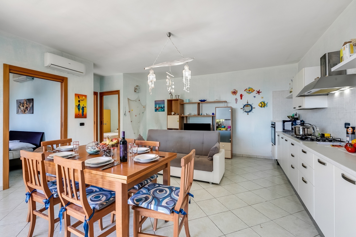 Rejuvenate in the picturesque spa resort of Santa Cesarea Terme. The perfect choice for families or groups of friends, Riva Blu Apartment comfortably sleeps 5 guests and is arranged over the ground floor of a two-story villa. This spacious property shares a sparkling new pool and garden with one other apartment and benefits from plenty of outside space to relax and unwind. There is a shady outdoor dining area with a table and chairs to enjoy meals al fresco and a sun terrace to bathe under the Italian sun. Inside, the air-conditioned, open-plan living space combines the kitchen/dining room and is furnished with a single sofa bed, a flatscreen TV and a dining table. The kitchen is fully equipped with essential appliances, including a Moka coffee machine, a cooker hob, an oven and a fridge freezer. Sleeping Bedroom 1: The first bedroom is furnished with a comfortable double bed and a wardrobe Bedroom 2: The second bedroom is furnished with twin joinable beds and a wardrobe Extra: There is also a single sofa bed in the living room Bathrooms Bathroom 1: The bathroom is fitted with a bidet, a shower, a washbasin and a WC Additional • Sea View • Shared Outdoor Pool (new) • Shared Garden • Outside Dining Area • Outdoor Table-Chairs • Air-conditioning • Free Wi-Fi • Washing Machine • Private Parking Space • Car Not Necessary • Child Friendly • Pets Possible • Smoking Prohibited Extra Charges Cot €20.00 and highchair €15.00 on request and subject to availability Location Riva Blu Apartment is located in the coastal spa resort of Santa Cesarea Terme, known for its thermal baths and fascinating caves. The property is conveniently located approximately a 15-minute walk from the town's thermal springs and Lido Caicco. Beach lovers can head to the Bay of Porto Miggiano (a 7-minute walk). This fine sandy beach is set between high cliffs, with comfortable diving platforms and areas equipped for sunbathing. Popular nearby excursions include a trip to the charming coastal town of Castro (an 8-minute drive) with its ancient historic centre and incredible granite coastline, which can be explored by boat. The ancient city of Lecce (a 40-minute drive) is also worth a visit. Known as the “Florence of the South”, here guests will find Roman ruins, wonderful Baroque architecture and a twice-weekly market which is a treasure trove for the finest regional produce. Santa Cesarea Terme has a wide range of restaurants and pizzerias, the closest is a 2-minute walk away, and there are several supermarkets less than a 10-minute drive away in Cerfignano and Castro. The closest international airport is Brindisi-Salento Airport (BDS), a one-hour 10-minute drive away.