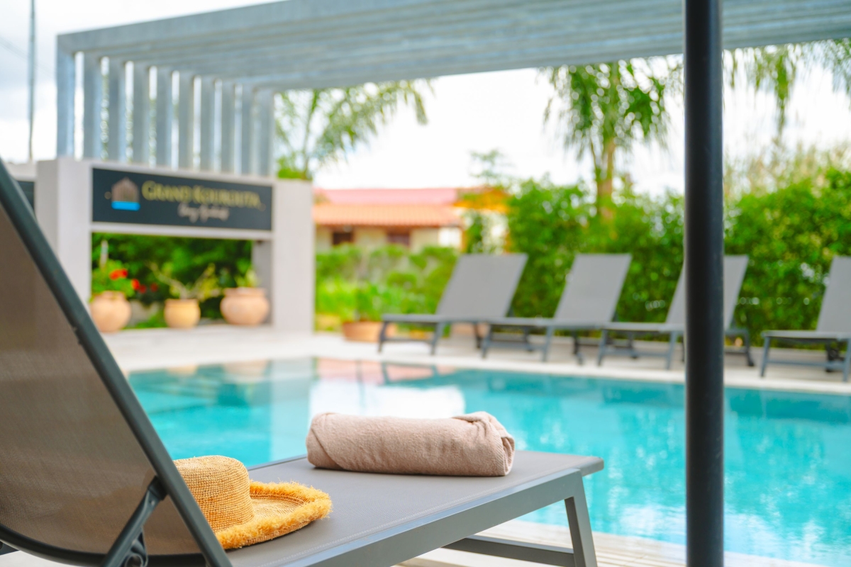 Step into a world of modern elegance and unwind at Grand Kourouta, a luxury retreat just 250 meters from the golden sands of Kourouta Beach.