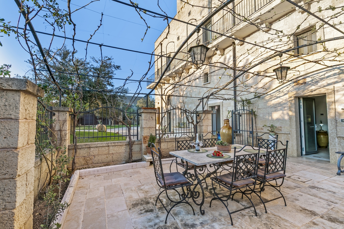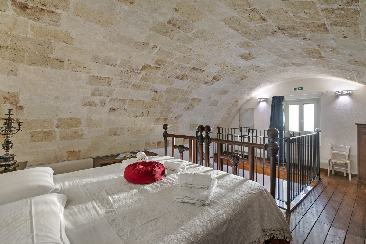 Discover centuries of history and luxury at Masseria Antoglia, a beautifully restored 14th-century fortified estate in the heart of Puglia. Junior Suite Carrubo is a ground-level accommodation for up to 3 guests, featuring a cosy living room and a luxurious bathroom. The Carrubo Suite’s living area opens onto a charming private garden, perfect for quiet, romantic evenings. Upstairs, the wooden loft hosts an antique queen-size wrought-iron bed, with an optional third bed available on request. The bathroom, finished in warm Trani stone, features a spacious shower with antique brass fittings. The kitchenette features electric kettle, oven, fridge, and induction hob. Surrounded by lush greenery, this suite offers a unique blend of historic charm and modern luxury with free Wi-Fi, a smart TV, and a shared swimming pool. Enjoy quietude and relax in the shared garden with an outdoor dining area perfect for al fresco meals while soaking in the sun or under the stars. Sleeping Arrangements The living suite features a double bed and a single sofa bed for flexible sleeping arrangements. Bathroom Bathroom 1: The suite includes a well-appointed bathroom with a bidet, shower, and WC. Additional • Shared Pool • Car Recommended • Child Friendly • Luxurious • Private Parking Space • Honeymoon • Satellite TV • Terrace • Security Safe • Hair Dryer • Outside Dining Area • Outdoor Pool • Breakfast included • Fire extinguisher Location Tucked between the charm of Apulia’s countryside and the allure of the Adriatic coast, this location offers the best of both worlds—tranquil rural beauty with easy access to Italy’s most picturesque destinations. Visit famous historic sites like Castello Ducale and Castello Episcopio within 10 minutes. Art lovers would love exploring Quartiere delle ceramiche (10 minutes), a street filled with shops featuring handcrafted artisanal goods. Within walking distance, you’ll find cosy local cafés, family-run trattorias, and essential shops. The Adriatic coast is a 30-minute drive away and is home to stunning beaches like Camerini, Pantanagianni Grande and Torre Pozzelle. Just a short drive opens up a world of adventure. The dazzling white towns of Ostuni and Cisternino are under 30 minutes away, while the baroque streets of Martina Franca offer cultural gems and boutique shopping. Nature lovers can explore local hiking trails or cycle through the Valle d'Itria’s rolling landscapes. The nearest airport is approximately 45 minutes away.