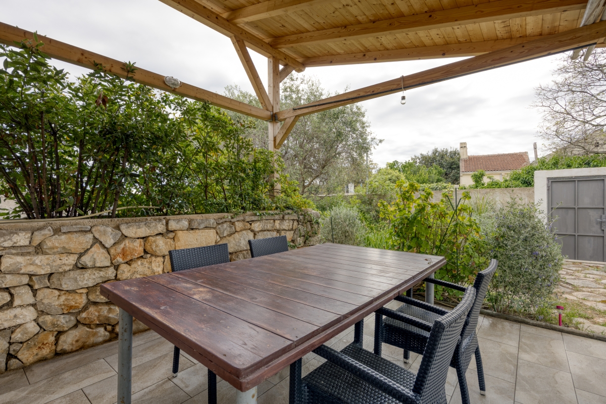 Enjoy a laid-back vacation in Veli Lošinj at this 2-bedroom apartment just a 3-minute walk from the harbour. Casa Lussingrande is a second-floor apartment accommodating up to 4 guests with 2 cozy bedrooms. A short flight of stairs leads you to the apartment, where a bright and inviting open-plan living area welcomes you. This comfortable space includes a dining area and opens directly onto a terrace with breathtaking sea views—perfect for morning coffee or sunset drinks. The fully equipped kitchen features an oven, dishwasher, and electric kettle, making meal preparation effortless. For your comfort and convenience, the apartment also includes free Wi-Fi and a Smart TV. The first bedroom offers a cosy double bed, while the master bedroom—accessible via an internal staircase—features another double bed along with comfortable armchairs, creating a peaceful retreat to unwind. Step outside to enjoy a spacious garden that's partly private, separated from the neighbouring apartment by lush greenery. The outdoor kitchen, equipped with an electric grill, along with the fully covered dining area, provides the ideal setting for relaxed al fresco dining. Sleeping Bedroom 1: Features a double bed, wardrobe, and air conditioning. Bedroom 2: Features a double bed and a wardrobe. Bathroom This bathroom has a bidet, a shower, and a WC. Additional Amenities • Private parking space • TV • Terrace • Shared garden • Hair dryer • Outside dining area • Outside table-chairs • Fenced garden Extra Charges and Information The garden is partly private, with access shared with another apartment. There are two parking spaces available: one within the garden (for small utility cars) and another private space located 300m away. Location Nestled in the heart of Veli Lošinj, this charming property offers a tranquil island retreat just steps away from the town’s scenic beauty and vibrant coastal charm. Guests can stroll to the picturesque harbour, where inviting cafés, fresh seafood restaurants, and quaint shops create the perfect atmosphere for relaxed island living. Just a short walk away, you'll find several inviting swimming spots with crystal-clear water, perfect for a refreshing dip on warm days. Rovenska Beach is a 5–10-minute walk, offering peaceful seaside escapes. A nearby grocery store and local shops make self-catering easy and convenient. The main bus stop is also within walking distance, providing easy connections to the rest of the island. For those with a car, the lively town of Mali Lošinj is just a 5–10-minute drive away. Here, you’ll find a wider selection of restaurants, boutiques, and cultural attractions like the Lošinj Marine Education Centre and the aromatic Lošinj Garden. Nature lovers will appreciate a trip to Cikat Forest Park, about 5-10 minutes away, where walking and cycling trails wind through fragrant pine woods. A 5-10-minute drive brings you to Sunčana Uvala Bay—a peaceful haven with a sandy beach and calm, inviting waters. History and culture enthusiasts can visit nearby sites such as Saint Martin Church and the Lošinj Museum in Mali Lošinj to delve deeper into the island’s fascinating heritage. Mali Lošinj Airport is just a 15-minute drive from the property.