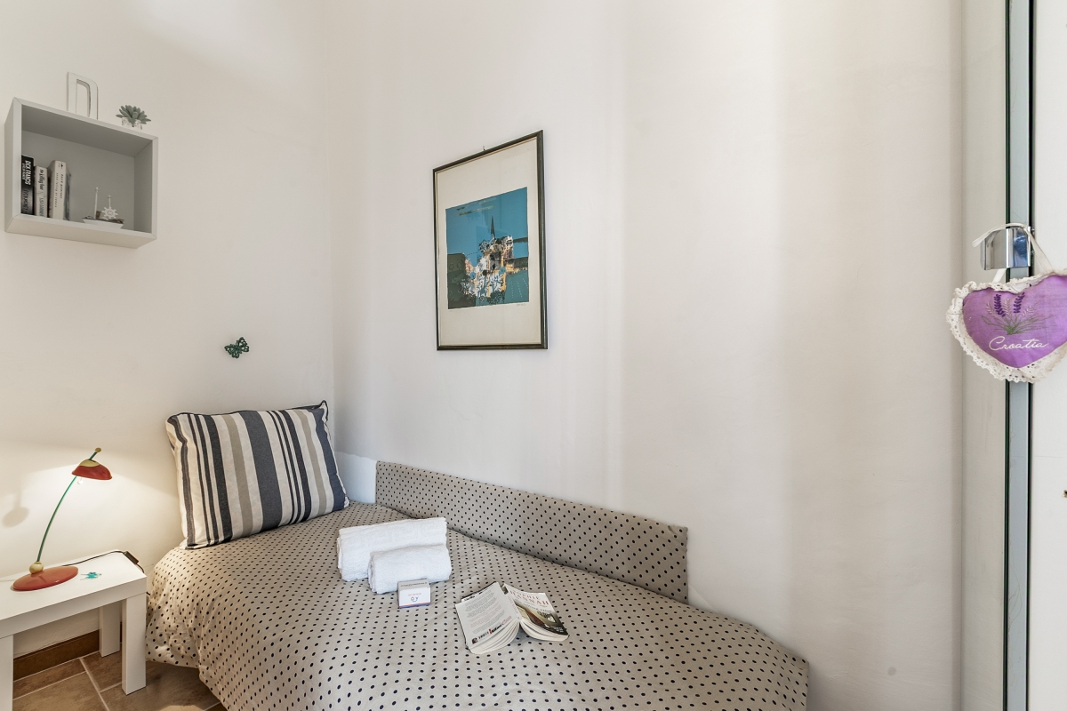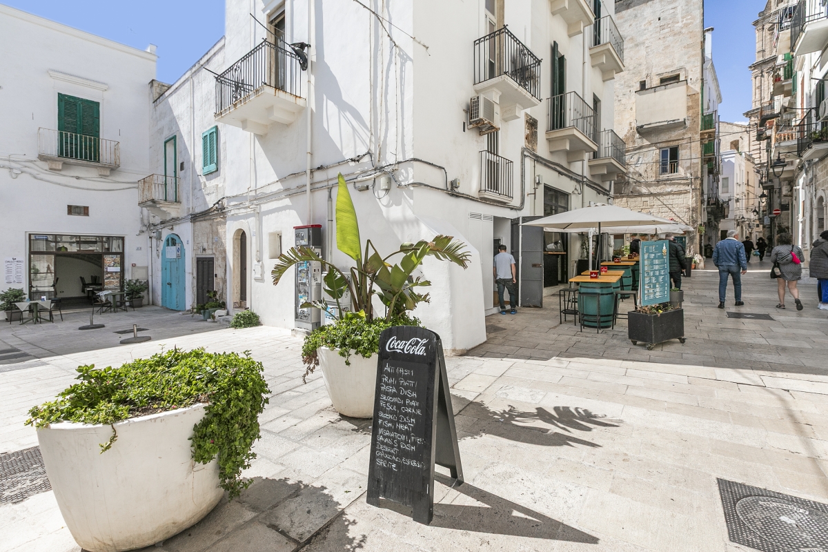 Explore Monopoli's top attractions easily from this apartment, just a stroll away from the beach. Dimora di Grecale is a first-floor apartment located in the heart of Monopoli, ideal for a serene getaway in southern Italy. Accommodating up to 3 guests, this first-floor apartment blends comfort and convenience with a cosy atmosphere. Inside, you'll find a bright living room equipped with air conditioning to keep you cool on warm days. The fully equipped kitchen-diner includes a coffee machine, electric kettle, microwave, fridge, and induction hob — perfect for preparing your favourite meals. Modern amenities like free Wi-Fi and a Smart TV ensure you feel right at home during your stay. Step outside and explore Monopoli's stunning spots like the Cattedrale Maria Santissima della Madia, Cala Porta Vecchia and Castello Carlo V, on foot within 5-minutes. Sleeping Bedroom 1: The bedroom features a double and a single bed, along with a wardrobe. Bathroom The bathroom is equipped with a bidet, shower, and WC, offering all the essentials for your convenience. Additional Amenities • Car Recommended • Child Friendly • In Town • Modern • On Main Road • TV • Washing Machine • Free Public Parking • Paid Public Parking • Fire Extinguisher Location Monopoli is known for its beautiful beaches, dramatic coastline, and vibrant old town full of character and history. Just a 5-minute walk from the Cathedral of Maria Santissima della Madia and 4 minutes from the Cala Porta Vecchia, this apartment is perfectly located for exploring the best of Monopoli. The town offers plenty to see and do — don’t miss the impressive cathedral and the historic Castello di Carlo, just a 9-minute walk away. Monopoli is also known for its lively bars, vibrant nightlife, and mouthwatering cuisine. Several beaches are within walking distance, and some of Italy’s most stunning stretches of coastline — like Lama Monachile and Polignano a Mare — are less than a 20-minute drive. The local beach may be small, but its crystal-clear waters are perfect for a refreshing swim or snorkelling adventure. Shops, cafés, and other amenities are all close by, and Monopoli’s bustling weekly market (held on Tuesday and Saturday mornings from 7:30 am) is the ideal spot to stock up on fresh local produce. The nearest airport is in Bari, just a 50-minute drive from the apartment.