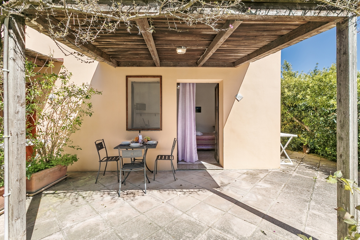A charming retreat in the heart of Salento, Alloro is in the village of Frassanito, just 700m from the beach. This delightful studio for 3, is one of 3 apartments that share a garden and an attractive communal dining area with a BBQ. Guests of all ages will enjoy the combination of modern comforts with the peaceful surroundings. The apartment has a rustic private terrace, where guests can enjoy meals al fresco or just relax in the peaceful surroundings. The front door opens directly into the airy living space. The interior is furnished with a double bed, a single bed, a flat-screen TV, storage and a dining table with chairs. The separate kitchenette is equipped with a cooker hob, Moka coffee maker and a fridge. Sleeping There is a comfortable double bed and a single bed in the living area. Bathroom The tiled bathroom is equipped with a shower, basin, bidet and WC. Additional • Free Wifi • Shared garden & BBQ • Outside dining • Outside seating • Air conditioning • Child-friendly • Private parking space, a car is recommended • Check-in from 4.00pm, check out 10.00am Note For larger groups please ask our bookings team about the 2 other apartments on the property ID12297 and ID12300 Location Whether guests want to explore Puglia’s ancient past or relax in the sun, the property is extremely well-located, in between Torre dell’Orso and Otranto. The apartment is close to some of Salento’s most beautiful beaches, including Baia dei Turchi (12 minutes) and the Faraglioni di Sant’Andrea bathing rocks (5 minutes). For more active holiday-makers there is a surfing point just 2 minutes from the property and kitesurfing only 3 minutes away. Away from the coast visitors can enjoy the Alimini Lakes which are a haven for bird watchers. Alimini Grande is just a 5-minute drive. Here visitors can enjoy hiking, picnicking and swimming or they can hire canoes. The peaceful port town of Otranto (15 minutes) makes a lovely day out. Here visitors can enjoy the castle, a lively port and excellent restaurants. The weekly market (Wednesday morning) is a source of the best local ingredients to cook at home. If you miss the market there are several supermarkets in the town. The closest airport is at Brindisi - 1 hour and 5 minutes away by car.