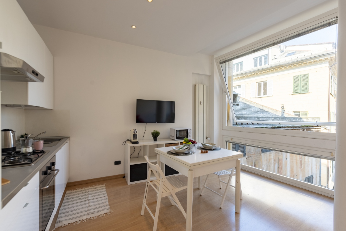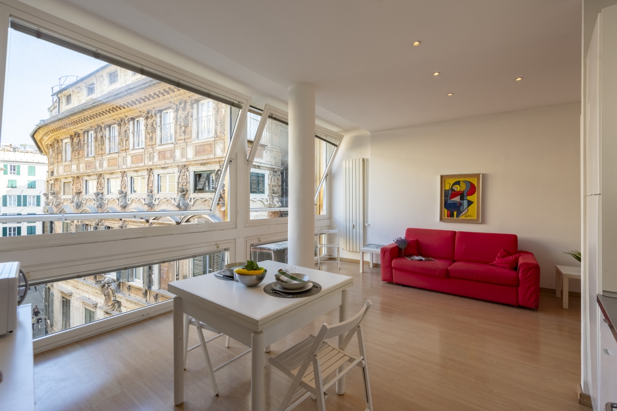 Discover the historic heart of Genova! This 4th-floor apartment (with lift) in a stylish modern building, is the ideal base for friends or family looking for an exciting city break. Guests can easily explore this fascinating city on foot, moving between the old palaces and squares and the vibrant newly developed Old Port. The apartment, House Historic Center, sleeps up to 4 people and is tastefully decorated with everything guests might need for a comfortable stay. The open-plan living space is furnished with a sofa, flat-screen TV with a dining table and chairs next to the sleek kitchen. The kitchen is equipped with an induction hob, oven, microwave, dishwasher, Nespresso coffee machine and fridge/freezer. Sleeping Bedroom: The master bedroom is furnished with a double bed, extensive wardrobes and has an en suite bathroom. Extra: The sofa in the living area converts into a comfortable double bed. Bathroom The en-suite mosaic-tiled bathroom has a bathtub with a showerhead, basin, bidet, washing machine and WC. Additional • Free wifi • Central heating • Air conditioning • Flat-screen TV • Washing machine • Hair dryer • Public parking (paid) - car not necessary • Check-in from 4.00pm, check out by 10.00am Location The apartment is in an ideal location, close to Genova’s main attractions, with many restaurants and cafés on the doorstep. The glorious Romanesque San Lorenzo cathedral is 2 minutes away and Piazza de Ferrari is only a 3-minute walk. San Giorgio metro station is just a 5-minute walk from the apartment so getting around the city is a breeze. Other museums and galleries are within easy walking distance. Genova is famous for its fine food and has many excellent restaurants to suit all budgets. To fully appreciate the city and its food, the best market is the Mercato Orientale in Via XX Settembre (13-minute walk). Otherwise, there are street markets every day across most of the city. The lively port area, the Porto Antico di Genova is a 10-minute walk from the apartment. This is a large cultural space with events, restaurants, shops and an outdoor swimming pool. The modern Aquarium of Genova is also worth a visit (8-minute walk). Genova’s International Airport is just a 20-minute drive from the apartment.