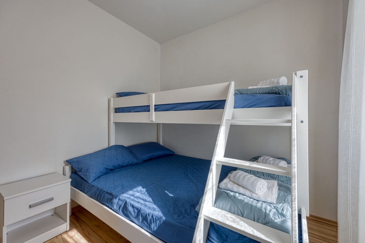 Experience a Vineyard stay at this 2-bedroom apartment in Krasno in Goriška Brda region in Slovenia. Neda Apartment is a serene 1st-floor retreat, accommodating up to 5 guests with 2 cosy bedrooms. Inside, the inviting living room has a sofa and opens to a terrace with vineyard views, perfect for enjoying the slow evenings. The fully equipped kitchen-diner with an oven, fridge, induction hob, and coffee machine makes cooking a breeze. Modern amenities such as free Wi-Fi and a Smart TV enhance your stay. Outside, a small balcony with outdoor dining space and a BBQ area makes it ideal for enjoying the night. Sleeping Bedroom 1: The bedroom has a comfortable double bed and a wardrobe Bedroom 2: This bedroom features a bunk bed, a single bed, and a wardrobe Bathroom Bathroom 1: The bathroom includes a shower and WC Additional Amenities Pets Allowed • Private Parking Space • Washing Machine • Hair Dryer • Clothes Horse • Outside Table-Chairs • TV • Terrace Location Enjoy the stunning scenery of the nearby vineyards. Popular attractions include Devil's Bridge, Piazza della Libertà, Piazza Giacomo Matteotti and Castello di Udine, all reachable within a 25-minute drive. Enjoy the picturesque hiking trails in Goriška Brdain and the surrounding hills. Within walking distance, you’ll find local wine cellars and tasting rooms where you can sample the famous Brda wines, as well as scenic walking trails that wind through the countryside. Dobrovo, only 5 minutes away by car, offers restaurants, a supermarket, and cultural attractions like Dobrovo Castle and its museum. The stunning Soča Valley, known for outdoor activities like rafting, hiking, and cycling, is just a short drive away. You can also easily explore nearby Gorizia and Nova Gorica across the Italian border, both within 30 minutes by car. The nearest airport is in Trieste, Italy, about a 1-hour drive away. Public transport options are available within walking distance for intercity travel.