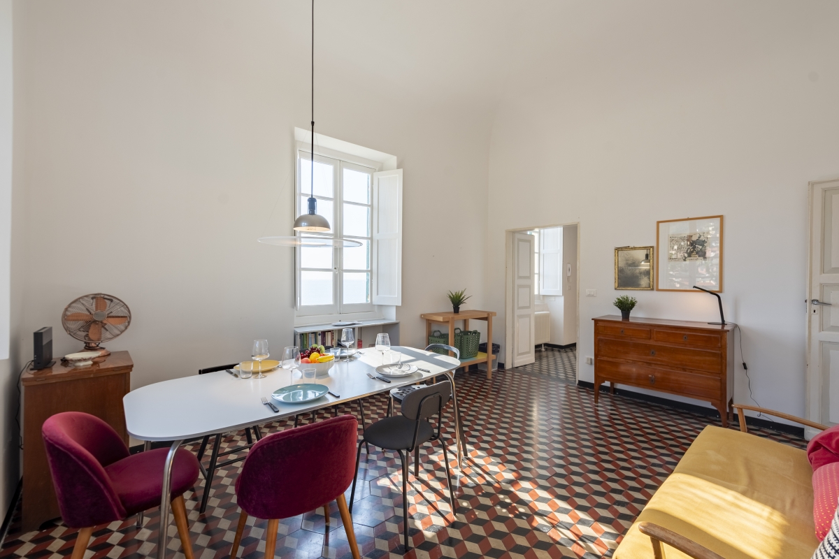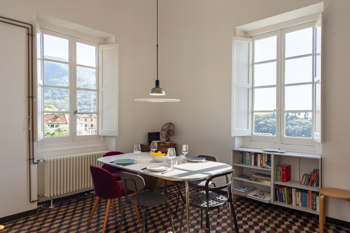 Relax and take in the glorious views of the Golfo Paradiso from the terrace of this charming apartment. Sea View Apartment is set on the hillside above the resort town of Camogli. The property sleeps up to 4 people and is the ideal base for a family or friends who want to explore both the beaches of Liguria and the unspoiled countryside. The airy apartment catches the sea breezes and is full of light thanks to its dual aspect setting and high ceilings. The spacious living/dining room is elegantly furnished with a sofa and dining table. The separate kitchen is equally stylish with sleek modern units. It is equipped with a cooker hob, oven, microwave, dishwasher, Nespresso coffee machine, washing machine and a fridge/freezer. There is also a small kitchen table with chairs for quick snacks. From the kitchen, guests can pass through the hallway to the front door and the terraced garden. The partly shaded terrace has a table for meals al fresco and deck chairs where guests can relax with a cup of coffee or sundowners. Sleeping Bedroom 1: The cosy master bedroom has a double bed and a wardrobe. Bedroom 2: The second bedroom is furnished with a double bed and a hanging rail. Bathroom The tiled bathroom has a large glass shower, basin and WC. Additional • Free wifi • Terrace • Outside seating & dining • Flat-screen TV • Washing machine • Hair dryer • Smoke & CO detectors • Paid public parking - car recommended • Check-in from 4.00pm, check out by 10.00am • €1,500 security deposit for groups under 21 Please be aware that there are around 35 steps up to the entrance of the property from the streetlevel. Location Camogli is a quieter resort than its more famous neighbours, Portofino or the towns of Cinque Terre, but there is plenty to enjoy here. The apartment is a 10-minute walk from the beach and the colourful seafront, which is home to many good restaurants and bars. For self-catering, Camogli’s weekly market (Wednesday morning) is an excellent place to buy the freshest local produce and just a 5-minute walk from the apartment. The town’s beach is free and popular with families. Away from the coast, there are some spectacular hiking routes nearby on the promontory between Camogli and Portofino. Portofino is a 3-hour, 15-minute walk. Alternatively, the Abbey of San Fruttoso (3 hour and 15-minute walk) makes a lovely day trip. The abbey can only be reached by boat or on foot. Visitors can soak up the atmosphere of this peaceful spot. Genova’s International Airport is just a 40-minute drive from the apartment.