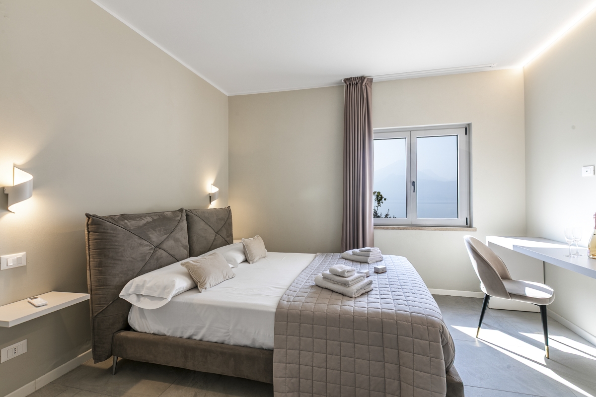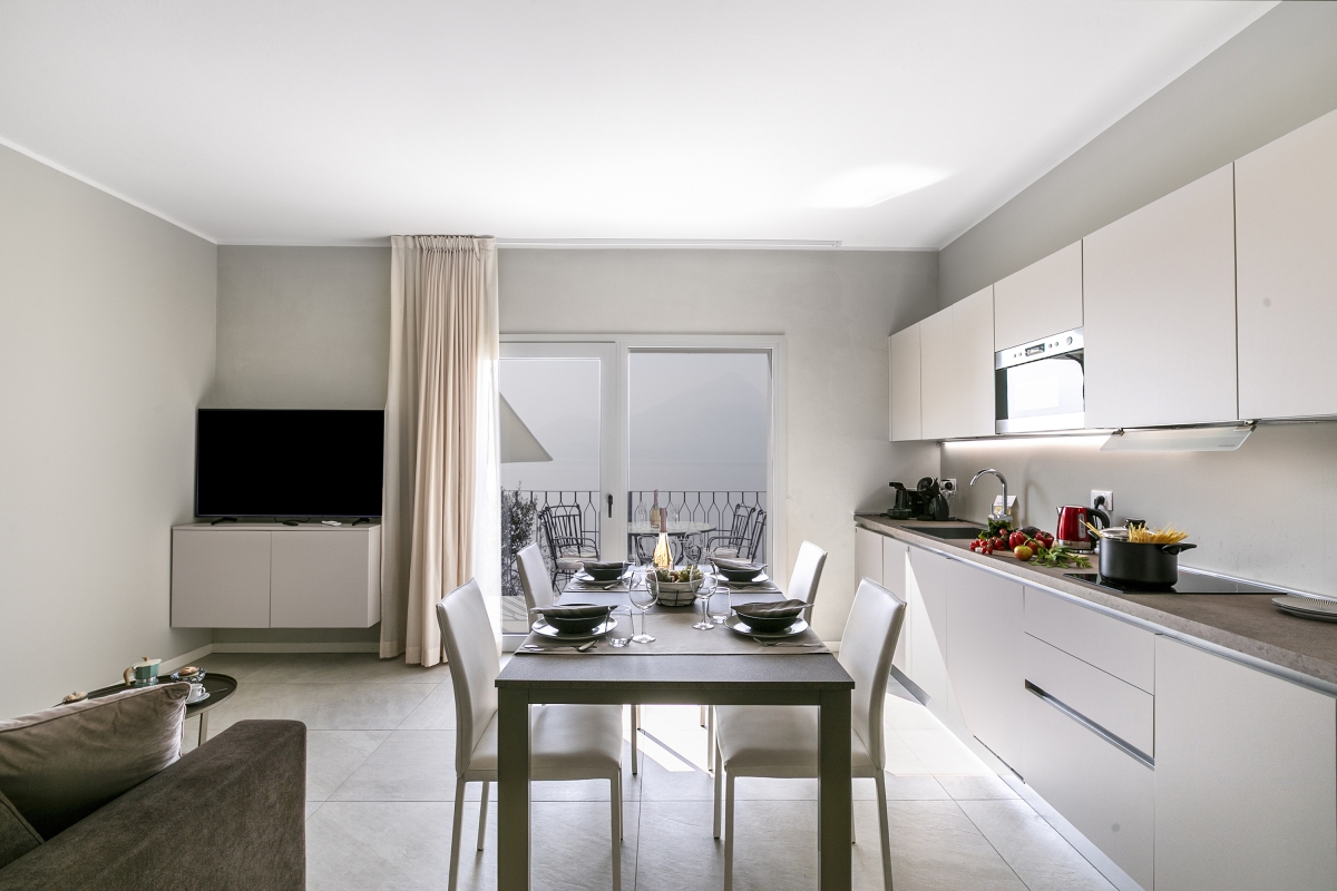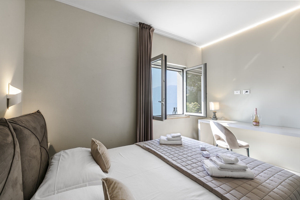 Enjoy aperitifs on the balcony, lazy afternoons by the pool and days out discovering the magic of Lake Garda. This charming retreat for 4 is the ideal choice for a tranquil holiday with friends or family. The property benefits from plenty of outside living space and enjoys incredible views of the lake and mountains. Quietly nestled on a hillside, the apartment enjoys a private balcony, shared use of a pretty garden and a shared pool, a terrace for outside dining and a large stone BBQ. The newly renovated apartment is arranged over the lower ground floor of a three-story building and benefits from a cosy open plan living space that’s furnished with a comfortable sofa bed, a large flatscreen satellite TV and a dining table. This area opens out to the balcony and incorporates a modern kitchen fitted with a Dolcegusto coffee machine, an oven, an induction hob, a microwave, a dishwasher and a fridge freezer Sleeping Bedroom 1: The ensuite bedroom is furnished with a double bed, a wardrobe and a desk. Bathrooms Bathroom 1: The modern bathroom is fitted with a shower, a bidet, a washbasin and a WC. Additional • Lake & Mountain View • Outdoor Pool • Shared Garden • Balcony • Terrace • Outside Table-Chairs • BBQ • Outdoor Dining Area • Airconditioning • Free Wi-Fi • Washing Machine • Central Heating • Car Recommended • Private Parking & Free Public Parking • Child Friendly • Wheelchair Access • Pets Allowed • Ski Storage • Smoking Prohibited Location Boutique apartment Giove is quietly located in the charming hamlet of Cassone di Malcesine on the eastern shore of Lake Garda. This picturesque fishing village is home to the Aril River, the smallest river in Italy, which flows through the village into Lake Garda. The property is a 1-minute walk from the marina and lakeside promenade where guests will find a bar, various eateries, a small supermarket, a museum and a beautiful bronze sculpture titled La Bagnante ("The Bather"), by Spanish artist Luisa Granero. The lovely town of Malcesine, which is dominated by Castello Scagligero, built in the 14th Century, is a 10-minute drive from the property. The town has several excellent restaurants and cafés, many with lake views. The town also hosts a Saturday market (8 am to 1 pm) offering the freshest local produce as well as fashion and accessories. From the Porticciolo di Malcesine (a 15-minute drive), you can take a ferry to the towns of Limone and Riva and enjoy a day out on the lake. The closest international airport is Valerio Catullo (VRN) in Verona, approximately a 1-hour drive away.
