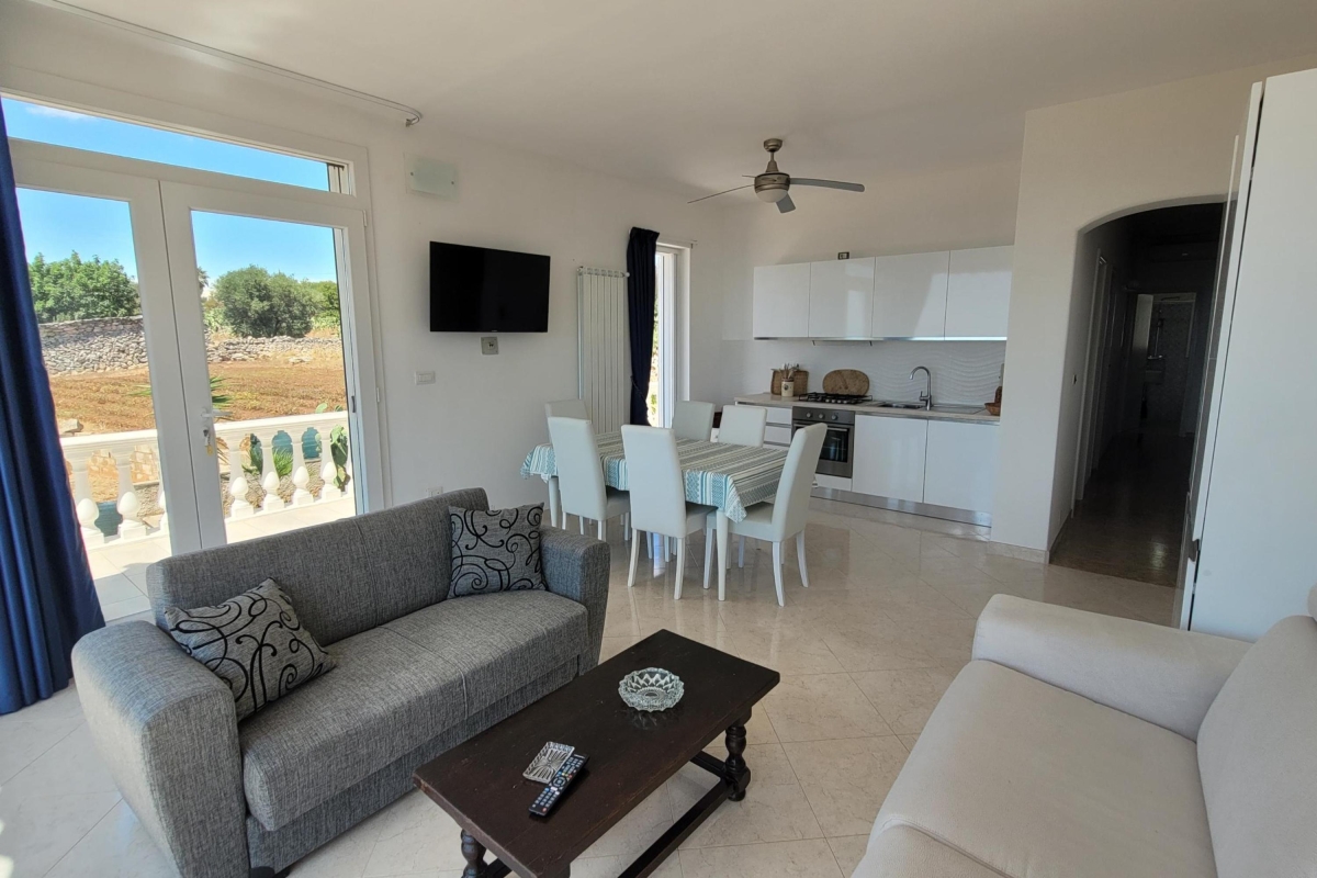 Turquoise waters, dramatic cliffs, and pristine white sands. Discover the natural beauty of the southernmost tip of Puglia at this elegant sea view escape for 5. The ideal choice for groups of family or friends. Felloniche Apartment Sea View is ideally situated less than a 5-minute walk from the crystal-clear waters of the Bay of Felloniche and the Baia di Ciardo beach. Arranged on the 1st floor of a 2-story villa, this spacious retreat benefits from incredible sea views, a balcony, a terrace for alfresco dining and use of a shared garden. The interior features a light-filled, open plan living space that is furnished with a double sofa bed, a sofa, a flat screen Smart TV and a dining table. This area also incorporates a well-equipped modern kitchen fitted with a Moka coffee machine, an oven, a cooker hob, and a fridge freezer. Sleeping Bedroom 1: The first bedroom is furnished with a double bed and a single bed Bedroom 2: The second bedroom is furnished with a double bed Bathrooms Bathroom 1: The first bathroom is fitted with a shower, a bidet, a washbasin and a WC Bathroom 2: The second bathroom is fitted with a shower, a washbasin and a WC Additional • Sea View • On Sea Shore • Balcony • Terrace • Shared Garden • Outside Dining Area • Outside Table-Chairs • Free Wi-Fi • Car Recommended • Private Parking Space • Child Friendly • Pets Possible • Smoking Prohibited Extra Charges Cot: €20.00, Highchair: €15.00 (on request and upon availability). Location Felloniche Apartment Sea View is located a 12-minute walk from Marina di Felloniche and an 8-minute drive from Santa Maria di Leuca at the southern-most tip of the Salento Peninsula. The villa is ideally situated a 5-minute walk from the closest beach, Baia di Ciardo, which offers breathtaking views of the coastline. Other beaches nearby include Felloniche Spiaggia, a 3-minute drive/15-minute walk, whilst the white sandy shores and crystal-clear waters of Spiaggia di Pescoluse (Maldive del Salento) are just a 10-minute drive away. There is also a marina in Santa Maria di Leuca where visitors can find boat tours, rentals and a diving centre (an 8-minute drive). The closest restaurant is a 10-minute walk, and there is a grocery store in Marina San Gregorio, a 4-minute drive away. Popular excursions nearby include the beautiful Baroque city of Lecce, known as the "Florence of the South", and the picturesque city of Otranto, known for its beaches, charming old town, medieval castle and Byzantine-era cathedral, both are less than a one-hour drive away. The closest international airport is Brindisi-Salento Airport (BDS), approximately a 1-hour 20-minute drive from the accommodation.