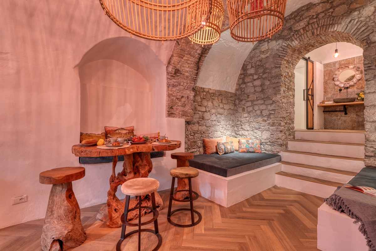 Relax and recharge in this delightful boutique apartment tucked close to the beach in the lively center of Ventimiglia. Boutique Apartment I Cavalieri is a lovely ground-floor retreat nestled in the picturesque alleys of Ventimiglia, Italy. Designed with a unique blend of antique character and modern, tasteful furnishings, this cosy 1-bedroom apartment is perfect for 6 or anyone seeking a romantic and peaceful escape. Located in a quiet area, it offers a serene atmosphere ideal for relaxation. The apartment features a warm and inviting open-plan living room that flows seamlessly into a compact kitchenette with some utensils and a coffee machine. A beautifully crafted wooden table with chairs adds to the charm, serving as both a dining area and a perfect spot to enjoy a quiet breakfast or evening meal. Sleeping Bedroom 1: This bedroom is on the ground-floor and is furnished with a double bed and a wardrobe. Extra: There is a double sofa bed and 2 single sofa beds in the living room to accommodate up to 4 guests. Crib available on request (to avoid choking risks we do not provide sheets or pillows for the crib). Bathroom Bathroom 1: This bathroom has a shower, a wash basin and a WC. Additional • Free Public Parking (Car not Necessary) • Pets not Allowed • Smoking not Allowed • flat-Screen TV • Hair Dryer • Wifi Not Available Important Note This apartment is in historic, centuries-old buildings located in the heart of Ventimiglia Alta. Despite careful renovations, a persistent damp or cellar-like smell may be noticeable. This is typical of ancient stone buildings and is a natural part of the historic charm. Please be aware of this to ensure an experience consistent with the unique and authentic stay at this residence. Location Located in the center of Ventimiglia, Boutique Apartment I Cavalieri offers immediate access to the town’s rich cultural and historical charm. Just steps away, guests can explore a variety of fascinating museums and ancient landmarks that invite you on a captivating heritage walk through time. A scenic hiking area is also just a stone's throw away, ideal for a peaceful stroll surrounded by nature. For a romantic evening, a pleasant 11-minute walk leads to the marina and a vibrant stretch of beachside restaurants and bars, perfect for dining with your loved one as the sun sets. Grocery markets and the nearest beach are a 15-minute walk from the apartment, providing both convenience and the opportunity to enjoy the coastal beauty of this historic Italian town. Nice Côte d'Azur Airport (NCE) in France is approximately 1 hour away from here.