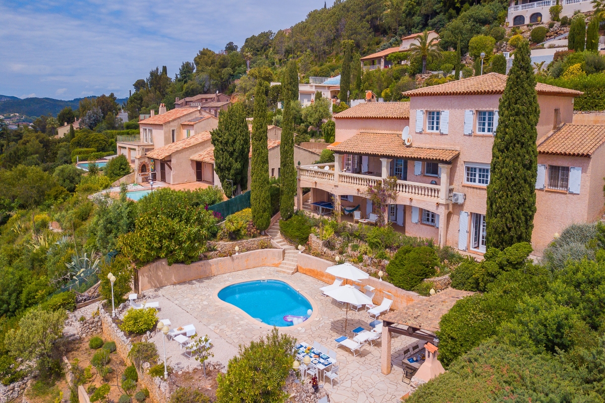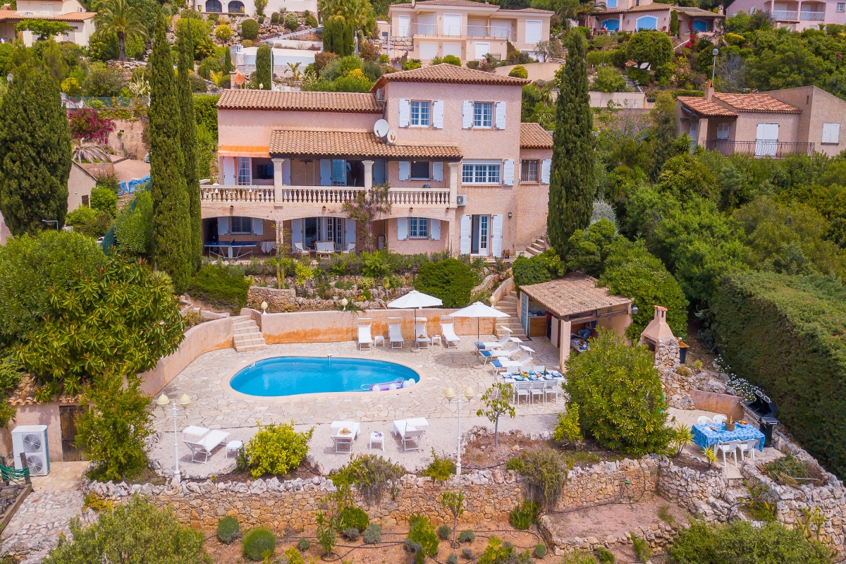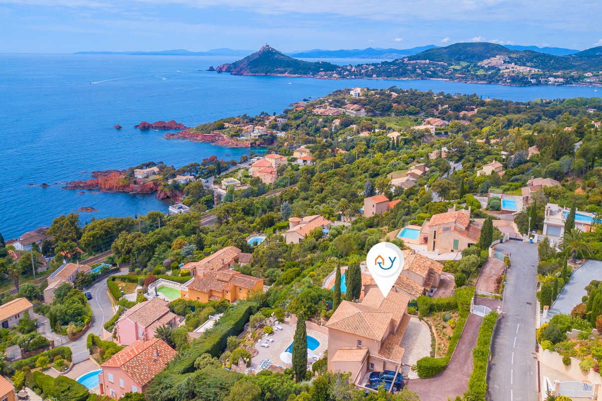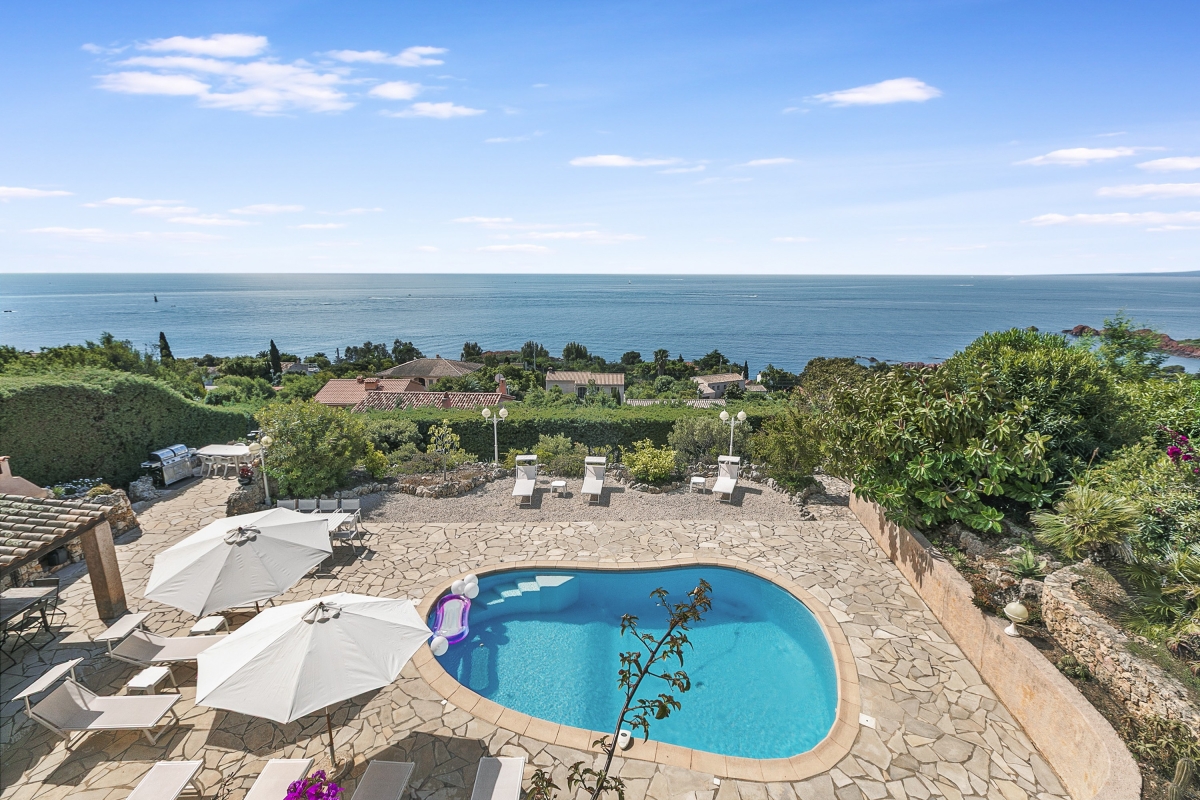 Escape to the Côte d’Azur and stay in a beautiful 2-storey villa for 10, with panoramic sea views. The villa has extensive outdoor space and a private pool where guests can relax in the sun. It is an ideal base for friends or family who want a peaceful summer holiday or to explore this corner of Provence. The house is well-located on the hillside above the rocky coastline just a 13-minute walk from the beach. This stylish residence has been beautifully decorated throughout. The spacious living room is full of light thanks to French windows which open onto a shaded terrace. The seating area is furnished with sofas, a grand piano, a TV and an open fireplace. There is an elegant dining table at the end of room for indoor dining. For guests who need to stay in touch with work, there is an office on a mezzanine level above the living room, furnished with a desk, computer and a sofa. The separate kitchen is well-equipped with an induction and cooker hob, oven, dishwasher, Nespresso coffee maker and an American fridge/freezer. The owners have lavished as much attention on the outside space as they have with the interiors. The terraced garden is on two levels. Directly outside the living room is the veranda which acts as an outdoor sitting room. It is furnished with cane armchairs, ideal for sundowners overlooking the Mediterranean. There is also a dining area for meals al fresco. On another part of the veranda, there is a hammock and a table tennis table. Stone steps lead down to the private swimming pool. Here guests can relax on one of several sunloungers after a refreshing dip. There are two additional dining areas on this level as well as an outdoor kitchen. This is appointed with cooking hobs, a sink, an oven and a breakfast bar. There is also a large BBQ. Sleeping Bedroom 1: This first-floor bedroom has a double bed, a single bed, a wardrobe and an en suite bathroom Bedroom 2: The second elegant bedroom on the ground floor is furnished with a double bed and a wardrobe. It has an en suite WC. Bedroom 3: Opening onto the veranda, this pretty bedroom has a double bed, a desk, wardrobe and an en suite bathroom. Bedroom 4: Furnished with traditional wooden pieces this bedroom has a double bed, a bureau and a wardrobe. Bedroom 5: Decorated in a more contemporary style this bedroom has a double bed and a wardrobe. Crib available on request (to avoid choking risks we do not provide sheets or pillows for the crib). Bathroom Bathroom 1: En suite to bedroom 1, this tiled bathroom has a bathtub with a shower, a basin, bidet and WC. Bathroom 2: This independent bathroom is appointed with a shower, basin, bidet and WC. Bathroom 3: En suite to bedroom 3, this attractive bathroom has a full bathtub, a separate shower, basin and WC. Extra: There is an en suite WC in bedroom 2. Additional • Free wifi • Private swimming pool • Outside seating • Outdoor dining • BBQ • Air conditioning • Laptop friendly workspace • Flatscreen TV • Hair dryer • Smoke detector • Washing machine • Table tennis • Washing machine and laundry room • Private parking - car recommended • Check-in from 6.00pm to 10.00pm, check out by 10.00am • Security deposit of €2,000 for groups under 21 Location Close to several lovely beaches, the house is ideal for families and friends who want to relax in the sun. The resort town of Agay (10 minutes) is known for its sandy beaches and beautiful setting. Closer is Anthéor, with its famous railway viaduct and red rocks. There is a small cove here for swimming and you can also hire kayaks and canoes to explore the coast out to the Ile des Vieilles. For full Riviera glamour, Cannes is 1 hour away. It makes a great day trip. Visitors can people watch on the Croisette and enjoy delicious seafood at one of the many excellent restaurants in the town. For self-catering, there are two supermarkets 5 minutes from the apartment. Boulouris’s weekly market on Esplande Saint-Jean (20 minute drive) is the largest in the area. It takes place every Monday morning from 7am to 1pm and also on Thursday in July and August. Here you can find the freshest local produce to cook at home. Nice Côte d’Azur airport is 1 hour and 5 minutes to the east. Anthéor-Cap-Roux train station is only a 4-minute drive so guests can easily explore the Riviera.