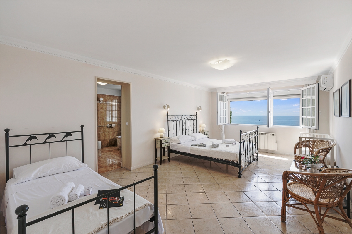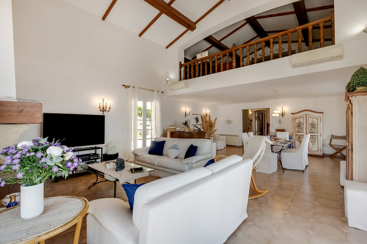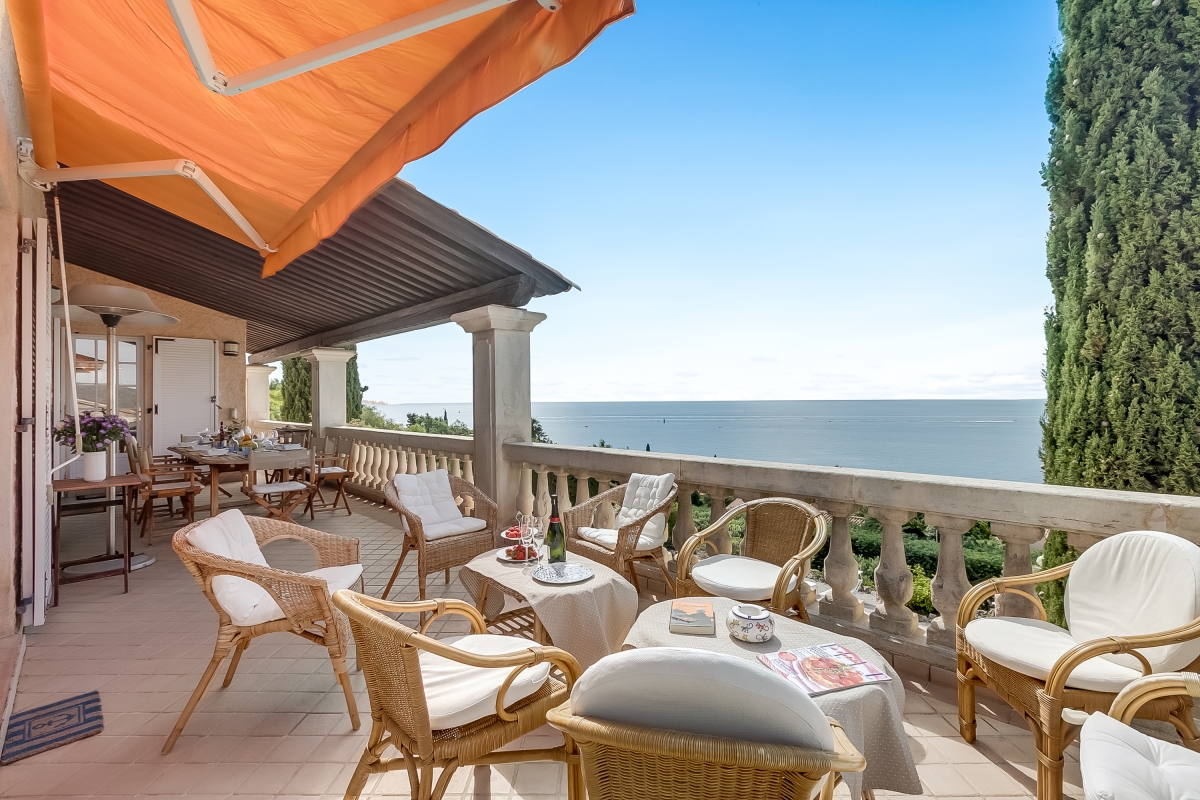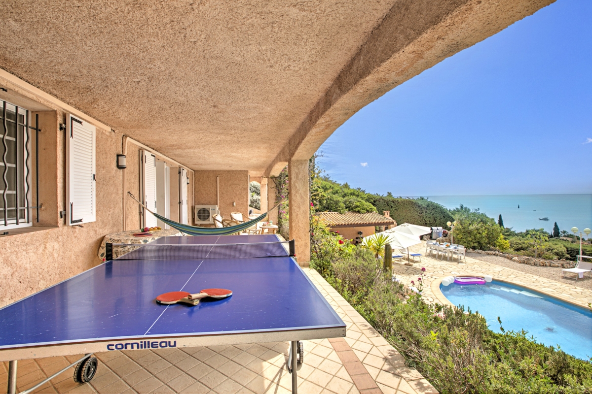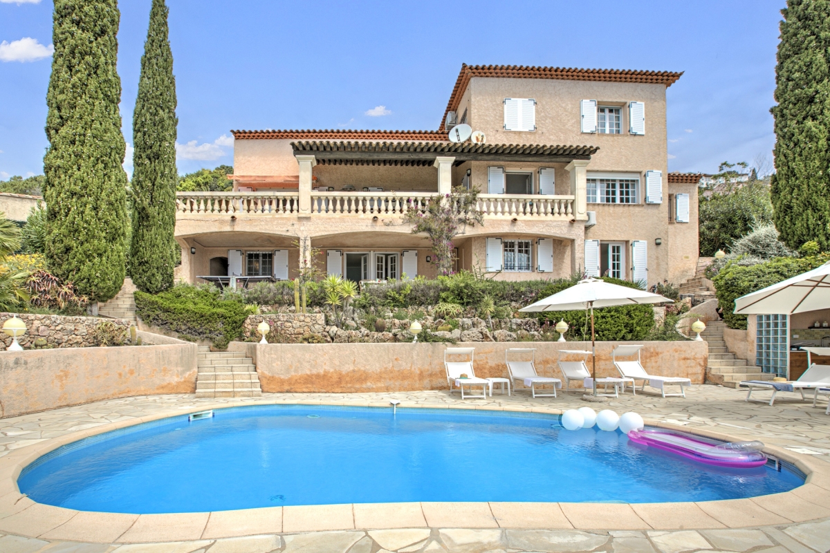 Escape to the Côte d’Azur and stay in a beautiful 2-storey villa for 10, with panoramic sea views. The villa has extensive outdoor space and a private pool where guests can relax in the sun. It is an ideal base for friends or family who want a peaceful summer holiday or to explore this corner of Provence. The house is well-located on the hillside above the rocky coastline just a 13-minute walk from the beach. This stylish residence has been beautifully decorated throughout. The spacious living room is full of light thanks to French windows which open onto a shaded terrace. The seating area is furnished with sofas, a grand piano, a TV and an open fireplace. There is an elegant dining table at the end of room for indoor dining. For guests who need to stay in touch with work, there is an office on a mezzanine level above the living room, furnished with a desk, computer and a sofa. The separate kitchen is well-equipped with an induction and cooker hob, oven, dishwasher, Nespresso coffee maker and an American fridge/freezer. The owners have lavished as much attention on the outside space as they have with the interiors. The terraced garden is on two levels. Directly outside the living room is the veranda which acts as an outdoor sitting room. It is furnished with cane armchairs, ideal for sundowners overlooking the Mediterranean. There is also a dining area for meals al fresco. On another part of the veranda, there is a hammock and a table tennis table. Stone steps lead down to the private swimming pool. Here guests can relax on one of several sunloungers after a refreshing dip. There are two additional dining areas on this level as well as an outdoor kitchen. This is appointed with cooking hobs, a sink, an oven and a breakfast bar. There is also a large BBQ. Sleeping Bedroom 1: This first-floor bedroom has a double bed, a single bed, a wardrobe and an en suite bathroom Bedroom 2: The second elegant bedroom on the ground floor is furnished with a double bed and a wardrobe. It has an en suite WC. Bedroom 3: Opening onto the veranda, this pretty bedroom has a double bed, a desk, wardrobe and an en suite bathroom. Bedroom 4: Furnished with traditional wooden pieces this bedroom has a double bed, a bureau and a wardrobe. Bedroom 5: Decorated in a more contemporary style this bedroom has a double bed and a wardrobe. Crib available on request (to avoid choking risks we do not provide sheets or pillows for the crib). Bathroom Bathroom 1: En suite to bedroom 1, this tiled bathroom has a bathtub with a shower, a basin, bidet and WC. Bathroom 2: This independent bathroom is appointed with a shower, basin, bidet and WC. Bathroom 3: En suite to bedroom 3, this attractive bathroom has a full bathtub, a separate shower, basin and WC. Extra: There is an en suite WC in bedroom 2. Additional • Free wifi • Private swimming pool • Outside seating • Outdoor dining • BBQ • Air conditioning • Laptop friendly workspace • Flatscreen TV • Hair dryer • Smoke detector • Washing machine • Table tennis • Washing machine and laundry room • Private parking - car recommended • Check-in from 6.00pm to 10.00pm, check out by 10.00am • Security deposit of €2,000 for groups under 21 Location Close to several lovely beaches, the house is ideal for families and friends who want to relax in the sun. The resort town of Agay (10 minutes) is known for its sandy beaches and beautiful setting. Closer is Anthéor, with its famous railway viaduct and red rocks. There is a small cove here for swimming and you can also hire kayaks and canoes to explore the coast out to the Ile des Vieilles. For full Riviera glamour, Cannes is 1 hour away. It makes a great day trip. Visitors can people watch on the Croisette and enjoy delicious seafood at one of the many excellent restaurants in the town. For self-catering, there are two supermarkets 5 minutes from the apartment. Boulouris’s weekly market on Esplande Saint-Jean (20 minute drive) is the largest in the area. It takes place every Monday morning from 7am to 1pm and also on Thursday in July and August. Here you can find the freshest local produce to cook at home. Nice Côte d’Azur airport is 1 hour and 5 minutes to the east. Anthéor-Cap-Roux train station is only a 4-minute drive so guests can easily explore the Riviera.