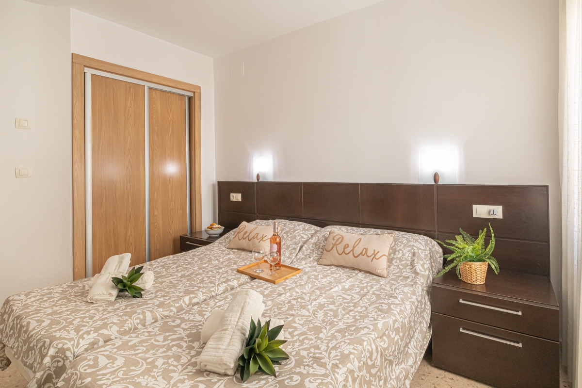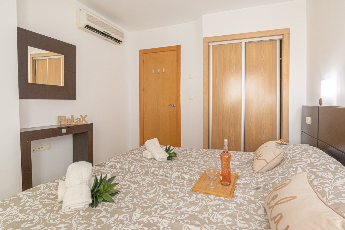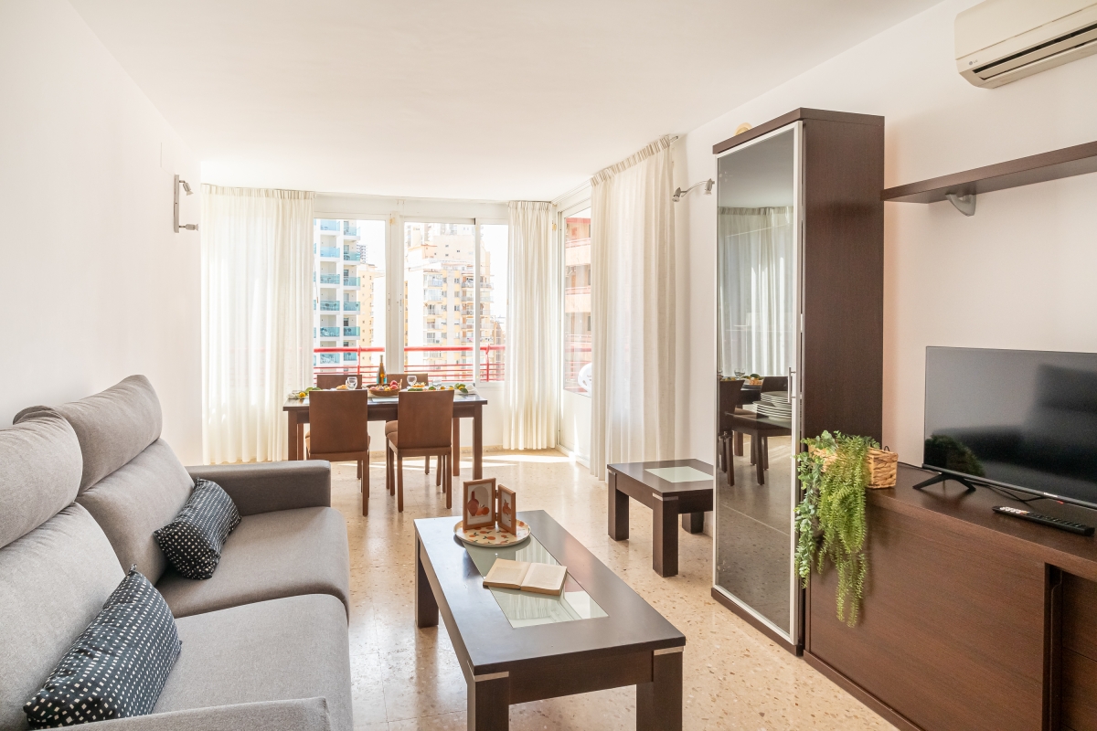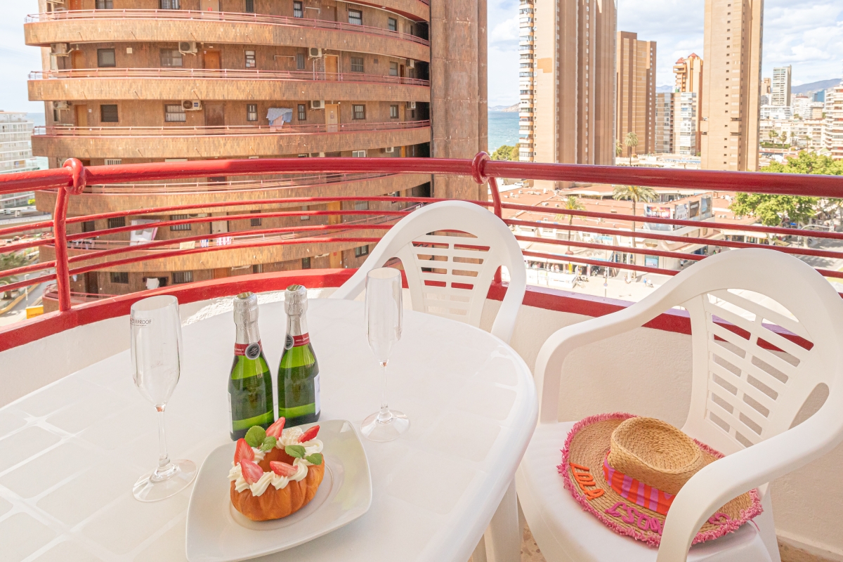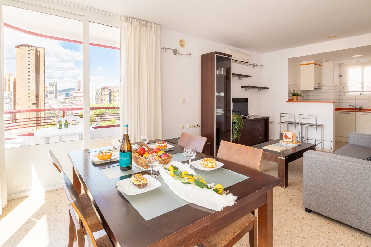 Bask in the beauty of Levante Beach just steps away, and savour sea views from the balcony with a charming outdoor dining setup. Benidorm Levante Beach is a modern and stylish 7th-floor apartment with a lift-elevator located just meters from the golden sands of Benidorm’s famous Levante Beach. Featuring 1 bedroom and a bright living room, the apartment comfortably accommodates up to 4 guests, making it an ideal choice for families or friends, and is suitable for guests of all age groups. The welcoming living area is tastefully furnished with comfortable sofas and a flat-screen TV, and it opens onto a private balcony offering city and sea views. There’s also a dedicated laptop-friendly workspace for those needing to stay connected. The open-plan kitchen is fully equipped with an induction hob, a coffee machine, an electric kettle, a microwave, an oven, a toaster, and a fridge with a freezer, perfect for home-cooked meals. The balcony is set up with an elegant outdoor dining arrangement, ideal for enjoying a glass of wine, dining al fresco, or sipping morning coffee with breathtaking views of the Mediterranean. Guests also have access to a shared pool within the apartment building, offering a refreshing retreat just steps from the comfort of home. Sleeping Bedroom 1: This bedroom has a twin joinable bed and a wardrobe. Extra: The living room has a double sofa bed for 2 guests. Bathroom Bathroom 1: This bathroom has a shower, a wash basin and a WC. Additional • Free Wi-Fi Device • Paid Public Parking (Car not Necessary) • Pets not Allowed • Smoking not Allowed • Hair Dryer • Laundary Facilities • Shared Pool (26 Apartments) Please note: The pool is open from the 1st of July 2025 to the 30th of September A deposit of EUR 200 has to be paid to the concierge on arrival. Location Located at a prime spot in the heart of Benidorm, this apartment offers unparalleled convenience and access to everything you need. Just a stone's throw away, you’ll find a variety of restaurants and bars serving local and international cuisine, while supermarkets are just a 5-minute walk for your daily essentials. The famous Levante Beach is also a mere 5-minute stroll, inviting you to swim in its sparkling waters or relax on the golden sand. For some evening fun, a nearby casino provides lively entertainment options. Families and thrill-seekers will appreciate that an amusement park is just a 20-minute walk or a 5-minute drive away, while the scenic marina lies within the same proximity for leisurely waterfront walks. A short 18-minute drive will take you to a golf club, a peaceful park for nature lovers, and an art gallery, perfect for a cultured afternoon. This location truly combines beachside leisure with urban excitement. Alicante Airport is approximately a 1-hour drive.