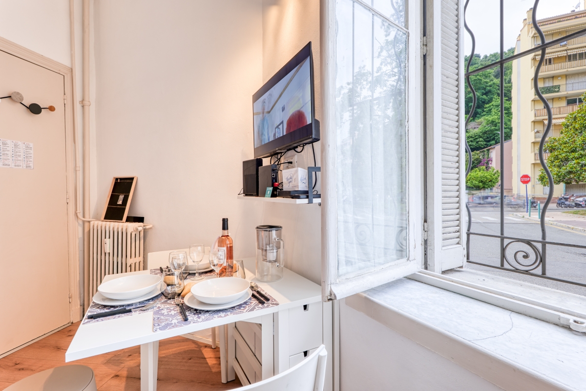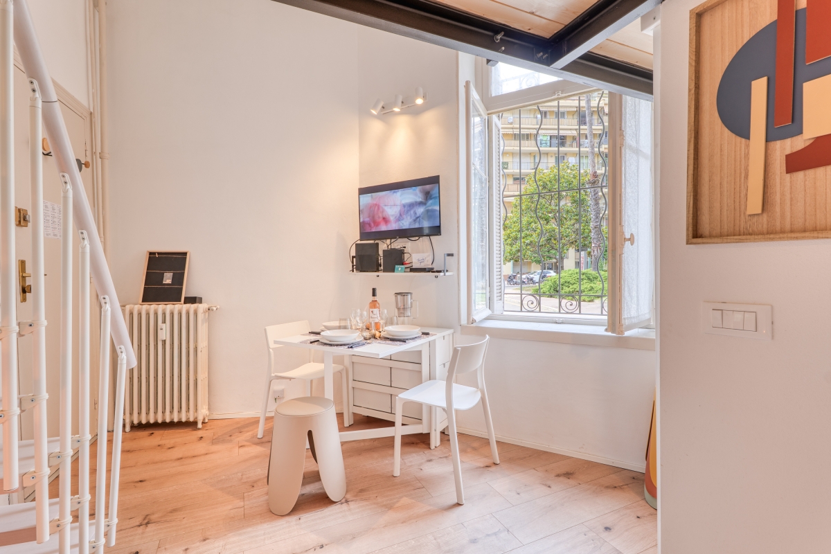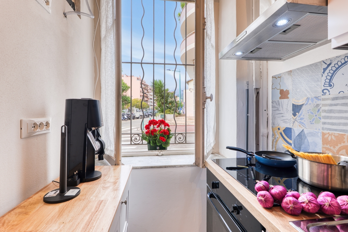 Discover a new rhythm and unwind close to lemon gardens and dreamy beaches at this practical escape for 3 in the pretty resort of Menton on the Côte d'Azur. The perfect choice for an escape with family or friends, this holiday home is conveniently located in a residential neighbourhood, just a 15-minute walk from the Old Town, and a 10-minute stroll from the beautiful Jardins Biovès, Plage du Casino and Plage de Fossan. This cleverly designed studio retreat is arranged on the first floor of a historic 4-story building and features an open-plan living space with a separate sleeping area positioned on a small mezzanine (ceiling height 140 cm). The air-conditioned living room incorporates a small kitchen and is furnished with a single sofa, a Smart flatscreen TV and a dining table. The kitchen features a coffee machine, an induction hob, an oven, a microwave and a fridge freezer. Sleeping There is a comfortable single sofa in the open-plan living space and a double bed positioned on a small mezzanine with a ceiling height of 140 cm Bathrooms Bathroom 1: The bathroom is fitted with a shower, a washbasin and a WC Additional • In Town • Airconditioning • Free Wi-Fi • Washing Machine • Car not Necessary • Pets Possible (small dogs) • Smoking Prohibited Location This property is situated on the Côte d'Azur in the charming town of Menton, renowned for its temperate climate, exotic gardens, and beautiful beaches. The Plage du Casino beach, Plage de Fossan beach and beautiful Jardins Biovès are all a 10-minute walk from the front door. There are also 5 other beaches and 4 gardens, all between a 5 and 10-minute drive from the accommodation. The narrow, cobbled streets of Menton’s Medieval Old Town are a 7-minute drive / 15-minute walk where visitors will find the Baroque Basilica of St Michel, the Jean Cocteau Museum and the Old Port. The closest restaurant is a 5-minute walk away, and there is a supermarket within a 2-minute walk. For the best local produce, head to the covered market, Le Marché des Halles, on Quai de Monleon (a 15-minute walk). Every day of the week, you can find the finest regional food, including cheese, fish and charcuterie. In February, the unique Fête du Citron celebrates Menton’s renowned citrus fruits. The closest international airport, Nice Airport (NCE), is a 35-minute drive from the accommodation. Alternatively, Menton’s railway station is a 5/10-minute walk.