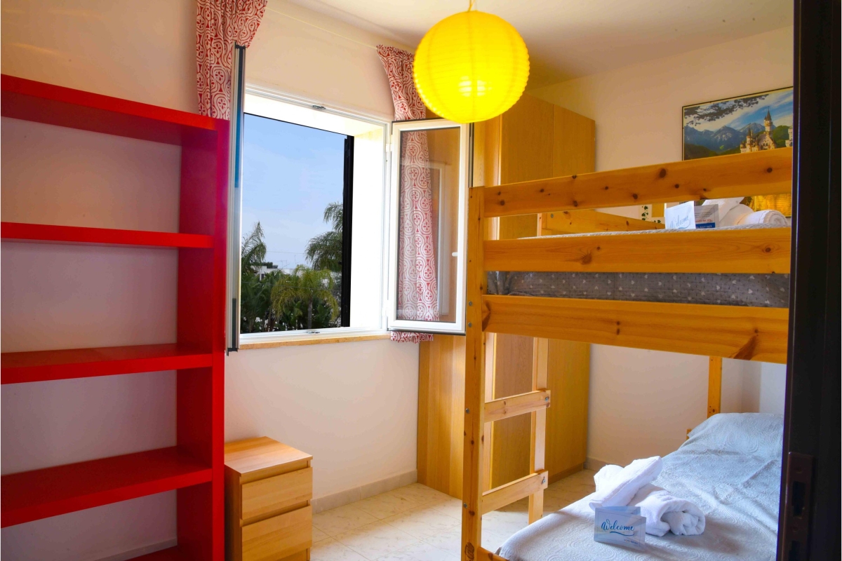 Enjoy a relaxing family getaway at this 2-bedroom apartment offering easy access to Porto Cesareo’s top beaches and attractions Located inside the Eurovillage resort, this ground-floor apartment accommodates up to 4 guests. Inside, the open-plan living room has a seating area, a dining table, a kitchen and opens onto a shaded terrace with outdoor seating. The fully equipped kitchen includes a coffee machine, cooker hob, fridge, and a dining area. Outside, guests can enjoy a shared pool, perfect for a refreshing dip on warm Italian days. The outdoor dining area is an ideal setting for al fresco meals. Sleeping Bedroom 1: This air-conditioned bedroom features a double bed. Bedroom 2: This bedroom features a bunk bed. Bathroom Bathroom 1: This bathroom features a bidet, a shower, and a WC. Additional • Balcony • Shared Pool • Child Friendly • Modern • Private Parking Space • Terrace • Washing Machine • Outside Dining Area • Outside Table-Chairs Extra Charges and Information Air conditioning is available only in the bedroom with the double bed. A cot is available on request for an additional fee of €20.00, subject to availability. A highchair is available on request for €15.00, subject to availability. The optional Village Card costs €7.00 per person per day; children under 4 years are exempt from this charge. Location Porto Cesareo is a coastal town in southern Italy, known for its clear waters, sandy beaches, and marine life.This apartment is located in Eurovillage, a family-oriented resort with a swimming pool, restaurant, bar, sports courts, and children’s play areas. Nearby beaches include Samanà Beach, Punta Prosciutto Beach, and Torre Lapillo Beach, all within a short drive. Attractions in the area include the Museo di Biologia Marina (10 minutes away) and boat tours from Porto Cesareo that explore the marine reserve or offer dolphin-spotting. Porto Selvaggio Natural Park, around 30 minutes by car, offers hiking trails through pine forests with sea views. Local vineyards nearby offer wine tasting experiences. Lecce, about 40 minutes away, is known for its baroque architecture, Roman amphitheatre, and historic town centre. There are several restaurants in the area, a supermarket 2 minutes away by car, and a weekly market in Porto Cesareo every Thursday. The nearest airport is Brindisi Airport, approximately 50 minutes away by car.