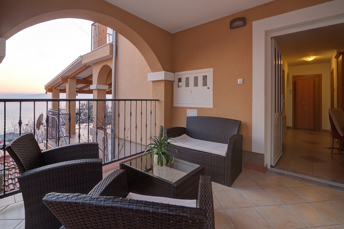 Unwind and relax at this serene apartment in Senj, with access to a shared outdoor jacuzzi and stunning views, perfect for the ultimate in seaside relaxation. This 1st-floor apartment accommodates up to 4 guests with 1 cosy bedroom and a separate living room. The fully equipped kitchen-diner features modern appliances, including a coffee machine, dishwasher, electric kettle, microwave, oven, and toaster. Both living room and the bedroom have direct access to a private terrace with an outdoor dining area, perfect for al fresco meals and watching beautiful sea views. Additionally, enjoy modern amenities like Free Wi-Fi and a Smart TV. Step outside and unwind in a shared jacuzzi for five, ideal for a soothing soak after a day of exploring. Sleeping Bedroom 1: The bedroom features a double bed, a wardrobe, and direct access to a terrace. Extra: The living room features a double sofa. Bathroom Bathroom 1: The bathroom is equipped with a shower and WC. Additional • Shared Garden • Hair Dryer • Jacuzzi • Outside Dining Area • Table Tennis • Car Recommended • Child Friendly • Modern • Satellite TV • TV • Terrace • Washing Machine. Extra Charges and Information: Shared washing machine available for guest use. Outdoor jacuzzi is for adults aged 16 and above only, and is open daily from 10:00 to 22:00 from 15 May to 1 October. Location Senj is a historic coastal town in Croatia, nestled between the Velebit mountains and the Adriatic Sea. This holiday home enjoys a prime location, being a few minutes away from the sea. Guests can enjoy beaches like Draga Beach and Senj Beach, just a few minutes away. Visit Nehaj Fortress ( a 7-minute drive), a hilltop fortress with a rich past dating back to Roman times, which was once a stronghold of the Uskoks, medieval pirates and defenders of the region. One of the unique attractions nearby is the sundial on the 45th parallel north (a 15-minute walk). This is a viewpoint with stunning sea views and a geographic marker that places the town exactly halfway between the Equator and the North Pole. Guests can enjoy delicious meals and drinks at restaurants and eateries nearby (a 5-minute drive) or shop for essentials and groceries at the nearby supermarket, Plodine. The nearest airport is Rijeka Airport, approximately a 1.5-hour drive from the property.