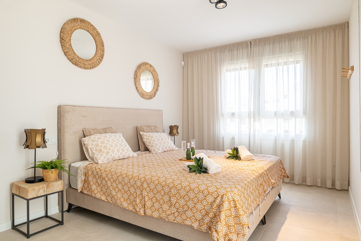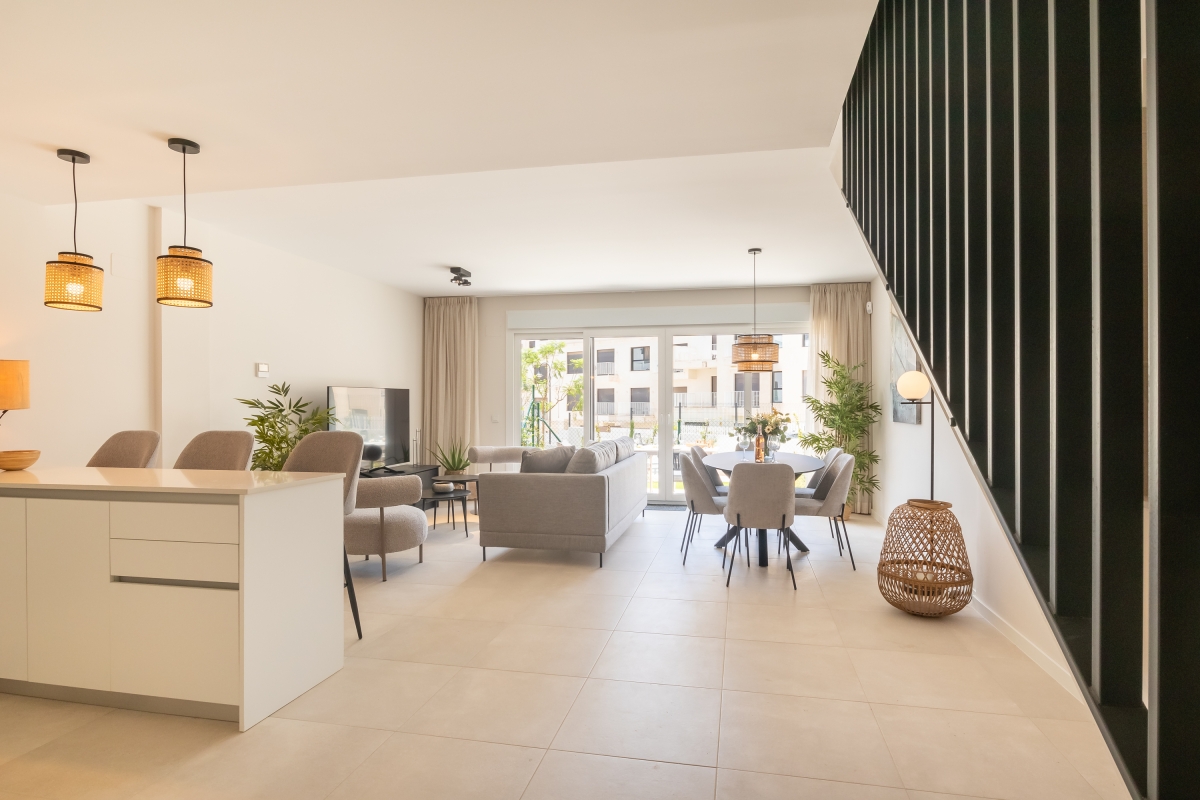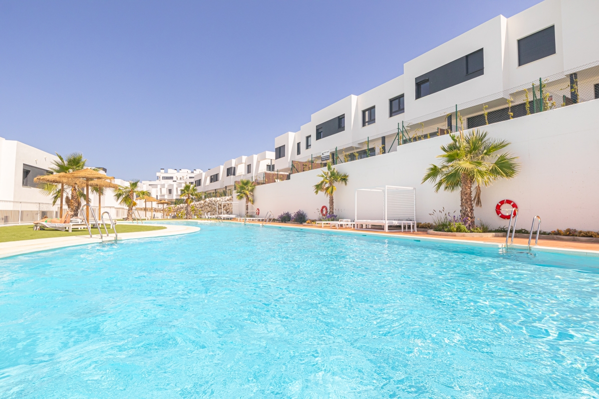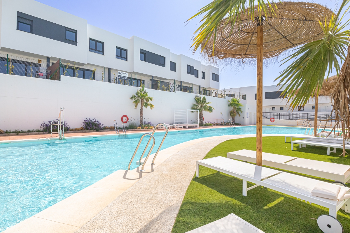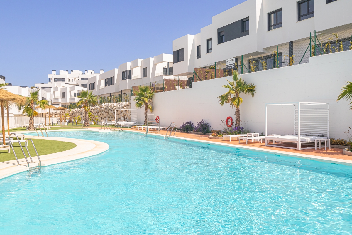 Enjoy a relaxing and luxurious getaway at this holiday home, located in the peaceful and sun-soaked town of La Cala de Mijas. This modern two-storey townhouse is perfect for families or groups of up to six guests, offering a private garden, shared outdoor pool, and access to on-site wellness and leisure facilities. The open-plan kitchen is fully equipped with everything you need, including a coffee machine, dishwasher, electric kettle, microwave, oven, toaster, fridge, and induction hob—ideal for cooking and dining at home. Spread over two floors, the home features a bright and comfortable living area with a terrace, air conditioning, and a seamless flow between indoor and outdoor spaces. Guests can unwind in the garden, enjoy meals outside, or take advantage of amenities like the sauna, gym, working space, a meeting room, kitchen facilities, and many relaxing areas. Sleeping Arrangements Bedroom 1: This bedroom features a king-size double bed, a terrace, a wardrobe, an air conditioner, and an ensuite bathroom. Bedroom 2: This bedroom features two single beds, a wardrobe, and an air Conditioner Bedroom 3: This bedroom features two Single beds, a wardrobe, and an air Conditioner. Bathroom Bathroom 1: This ensuite bathroom features a shower and WC Bathroom 2: This bathroom features a shower and WC Extra: This is WC. Additional • Shared Pool • Private Garden • Private Parking Space • Sauna • Terrace • Washing Machine • Pool Table • Security Safe • Hair Dryer • Free Wi-Fi • Outdoor Dining Area • Gym • Smart TV • Laptop Friendly Workspace • Games Library • Indoor & Outdoor Activities • Unheated Pool • Shared Garden Location Located in a quiet and sunny residential area, this holiday home places you within walking distance of the beach, local shops, restaurants, and the picturesque coastal boardwalk of La Cala de Mijas. The area is ideal for beach lovers, golfers, and families, with several golf courses, parks, and water activities nearby. Marbella and Fuengirola are a short drive away for shopping, nightlife, and cultural attractions. Málaga-Costa del Sol Airport is approximately a 30-minute drive, offering easy access for travelers.