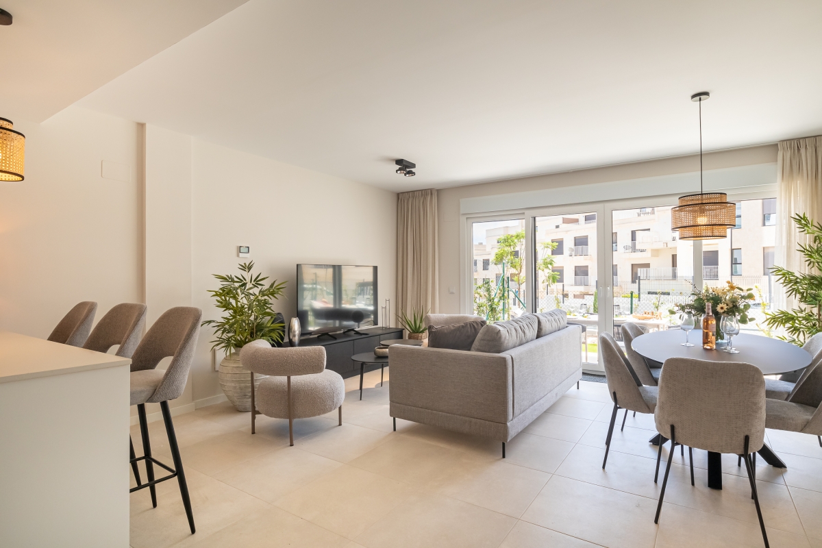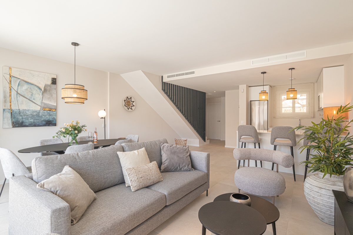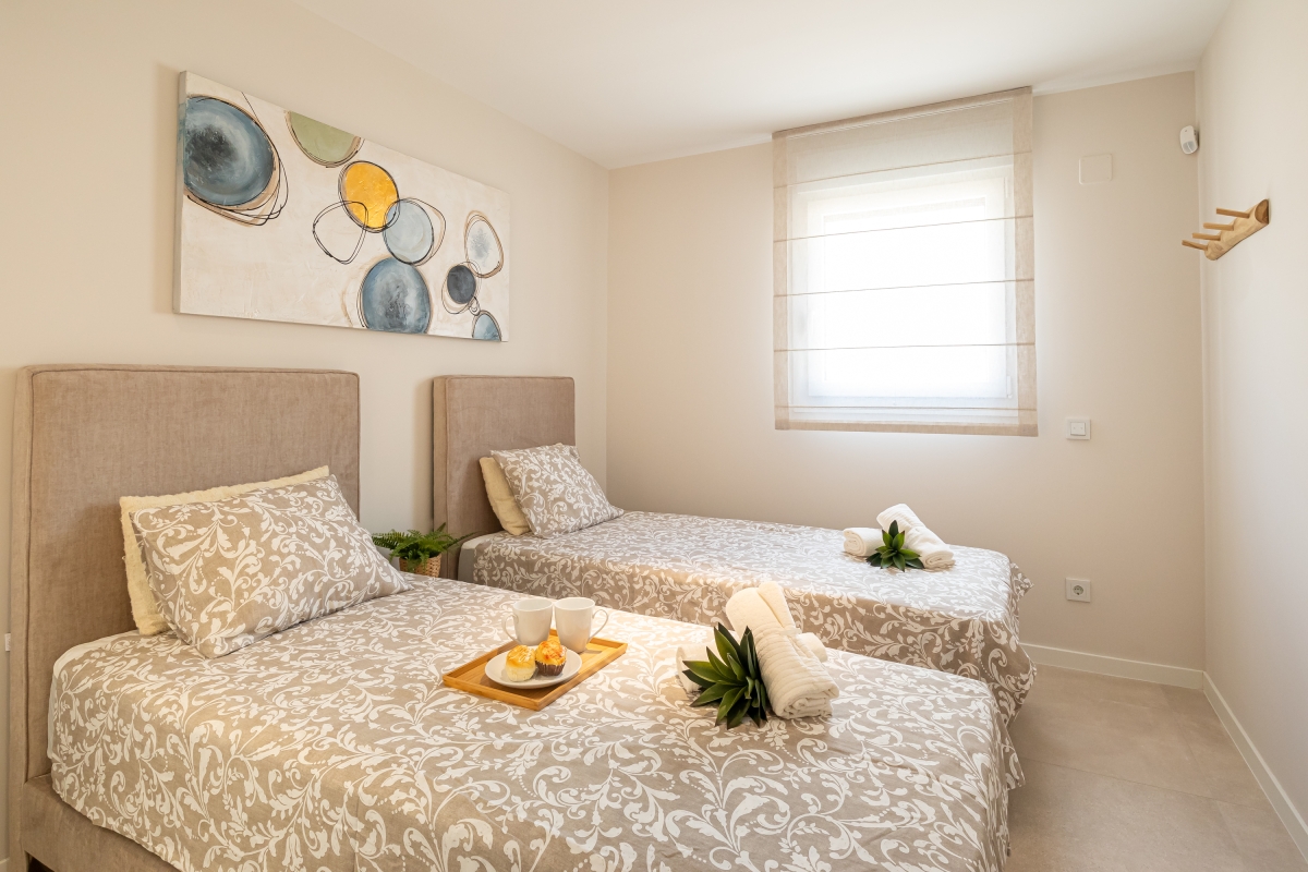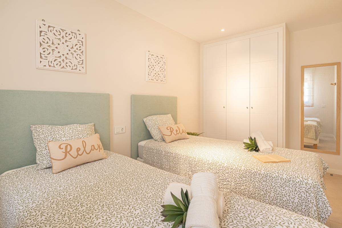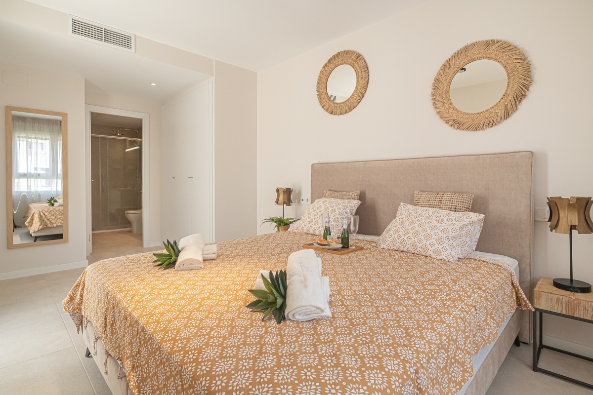 Enjoy a relaxing and luxurious getaway at this holiday home, located in the peaceful and sun-soaked town of La Cala de Mijas. This modern two-storey townhouse is perfect for families or groups of up to six guests, offering a private garden, shared outdoor pool, and access to on-site wellness and leisure facilities. The open-plan kitchen is fully equipped with everything you need, including a coffee machine, dishwasher, electric kettle, microwave, oven, toaster, fridge, and induction hob—ideal for cooking and dining at home. Spread over two floors, the home features a bright and comfortable living area with a terrace, air conditioning, and a seamless flow between indoor and outdoor spaces. Guests can unwind in the garden, enjoy meals outside, or take advantage of amenities like the sauna, gym, working space, a meeting room, kitchen facilities, and many relaxing areas. Sleeping Arrangements Bedroom 1: This bedroom features a king-size double bed, a terrace, a wardrobe, an air conditioner, and an ensuite bathroom. Bedroom 2: This bedroom features two single beds, a wardrobe, and an air Conditioner Bedroom 3: This bedroom features two Single beds, a wardrobe, and an air Conditioner. Bathroom Bathroom 1: This ensuite bathroom features a shower and WC Bathroom 2: This bathroom features a shower and WC Extra: This is WC. Additional • Shared Pool • Private Garden • Private Parking Space • Sauna • Terrace • Washing Machine • Pool Table • Security Safe • Hair Dryer • Free Wi-Fi • Outdoor Dining Area • Gym • Smart TV • Laptop Friendly Workspace • Games Library • Indoor & Outdoor Activities • Unheated Pool • Shared Garden Location Located in a quiet and sunny residential area, this holiday home places you within walking distance of the beach, local shops, restaurants, and the picturesque coastal boardwalk of La Cala de Mijas. The area is ideal for beach lovers, golfers, and families, with several golf courses, parks, and water activities nearby. Marbella and Fuengirola are a short drive away for shopping, nightlife, and cultural attractions. Málaga-Costa del Sol Airport is approximately a 30-minute drive, offering easy access for travelers.
