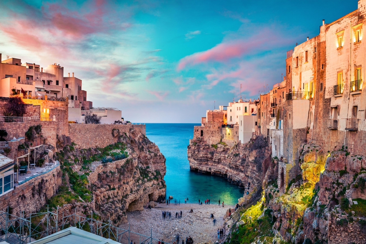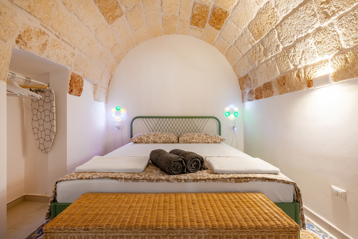 Experience life like a local in the charming port of Polignano A Mare. Pescamare Apartment Polignano is an authentic, ground-floor apartment in the centre of the town. The entrance is through a shaded veranda which opens onto the street. There is a café-style table and chairs where guests can enjoy a cup of coffee and soak up the atmosphere of this ancient town. The main living area includes an armchair, a flat-screen TV, a neat dining table and an open-plan kitchen. The modern kitchen is well-equipped, with an induction hob, microwave, a coffee machine and fridge/freezer. Sleeping Bedroom: The stone-vaulted bedroom has a double bed and an open wardrobe. Extra: The armchair in the living room converts into a single bed. Bathroom The bathroom, which is beautifully tiled, is appointed with a glass shower, basin, bidet and WC. Additional • Free Wifi • Terrace • Air conditioning • CO detector & Fire extinguisher • Smart TV • Hair dryer • Child friendly • Public parking (free and paid), car recommended • Check-in from 4.00pm, check out before 10.00am Location The apartment is in a great location, just a 12-minute walk from Polignano a Mare’s most famous beach, Lama Monachile. The town dates back to the 4th-Century BC and is packed with history. This stretch of coast is known for its pristine beaches and sparkling sea. It is an ideal combination of history, culture and beach life. Down the coast, visitors will find the town of Monopoli (15 minutes), one of Italy’s hidden gems. Known for its lively bars and nightlife, the town’s cathedral and the Castello di Carlo are also worth visiting. For self-catering, Polignano a Mare’s vibrant, weekly market (Thursday morning from 8.00am) is the best place to pick up delicious local produce to cook at home. Away from the coast, Alberobello, (30 minutes) is a UNESCO World Heritage Site, as well as one of the centres of Italy’s Slow Food Movement. The town is a must-see. It is famous for its traditional Trulli houses and excellent restaurants. The closest airport is at Bari, a 45-minute drive from the apartment.
