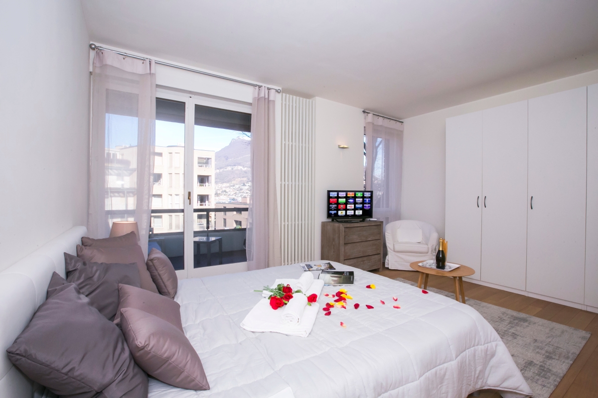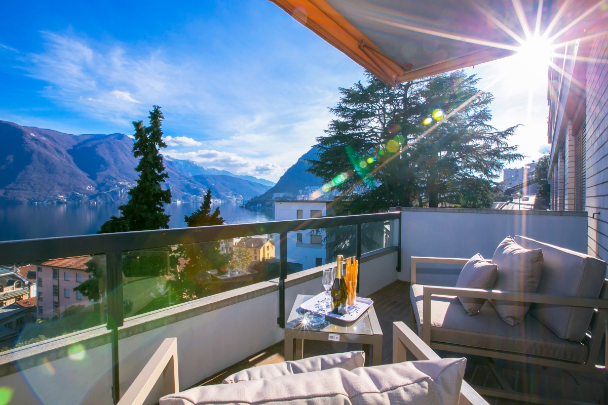 Make the most of Lugano, with this chic lake view retreat with balcony and garage! Boasting a wide range of benefits, this fully-equipped contemporary apartment for 4 offers a carefree base from which to explore. Easily accessible by lift, the modern city apartment is great for families of all ages. The interior is one of modern sophistication and serenity, with a strong neutral décor complementing the smart furnishings and 21st century home comforts. Guests will find free in-house WIFI, Smart TVs, a DVD player and cosy underfloor heating all at their finger-tips (and toes!). A spacious living space and chic dining area for 4 is accompanied by a sunny private balcony terrace, with awning. The stylish alfresco sitting area here provides an added ‘room’ to the spacious abode; providing an effortless flow for summertime relaxation and fun with family and friends. An adjoining Kitchen with breakfast bar sets the scene for stress-free morning coffees and evening meals. All the must-have appliances are provided, including an induction hob, Nespresso coffee machine, electric kettle, eye-level microwave, toaster, fridge freezer and dishwasher. The chic dining area to the Living room can easily host dinner parties for up to 4. Couples and flexible family groups will enjoy a good night’s rest too. The Master bedroom boasts a lovely modern Double bed with large wardrobe, a compact Smart flat screen TV, En-suite shower room and a lake view balcony. The second bedroom all boasts a balcony and features a Single size bed with pull out Single option for 2. The spacious apartment also benefits from a contemporary fitted family shower room, a hairdryer, central heating, wooden flooring and private laundry and ironing facilities. The private lake view balcony and the resident’s quiet back water appeal invites groups of 4 to relax and entertain away, in style. Key Features: • Flexible family retreat close to the city sights • Lift access • Free in-house WIFI • 2 Smart TVs and 1 DVD player • Fully-equipped Kitchen Diner • Underfloor heating • Private laundry facilities • Garage Sleeping: Master Bedroom: Double bedroom with wardrobe, Smart TV, balcony access and En-suite shower room Bedroom 2: Features balcony access and a Single size bed with pull out single option, for 2 Additional - Extra adult single camp beds and infant baby cots can also be hired (for an additional charge). Bathrooms: The Master En-suite features a modern shower room with wash basin and WC. The 2nd bathroom suite is fitted with a power shower, wash basin and WC. Additional: • Situated on the 2nd floor • Suitable for families and the elderly • Quiet and convenient city street location * 7 nights minimum required Location: The modern 5-storey residence is located along Via Motta, just south west of central Lugano. Guests are a 6 minutes’ stroll away from the ‘LAC Lugano Arte e Culture’ centre and the picturesque lakeside promenade. The beautiful Parco Civico and Parco del Tassino are also within a 13-15 minutes’ stroll away. The central city location also offers convenient access to the magnificent selection of high street and designer shops, the world restaurants, stylish bars, nightclubs, modern casinos and cultural visitor attractions. The main ‘Lugano Centro’ bus terminal and train station are 11 minutes’ walk away from the apartment too, whilst Lugano Airport is reachable by taxi/hire car in just 16 minutes. Nearby Como (50 minutes’ drive away) offers a wealth of shopping and dining opportunities too, alongside easy road and train links to Milan and bus-ferry-road links to the touristic Central Lake.