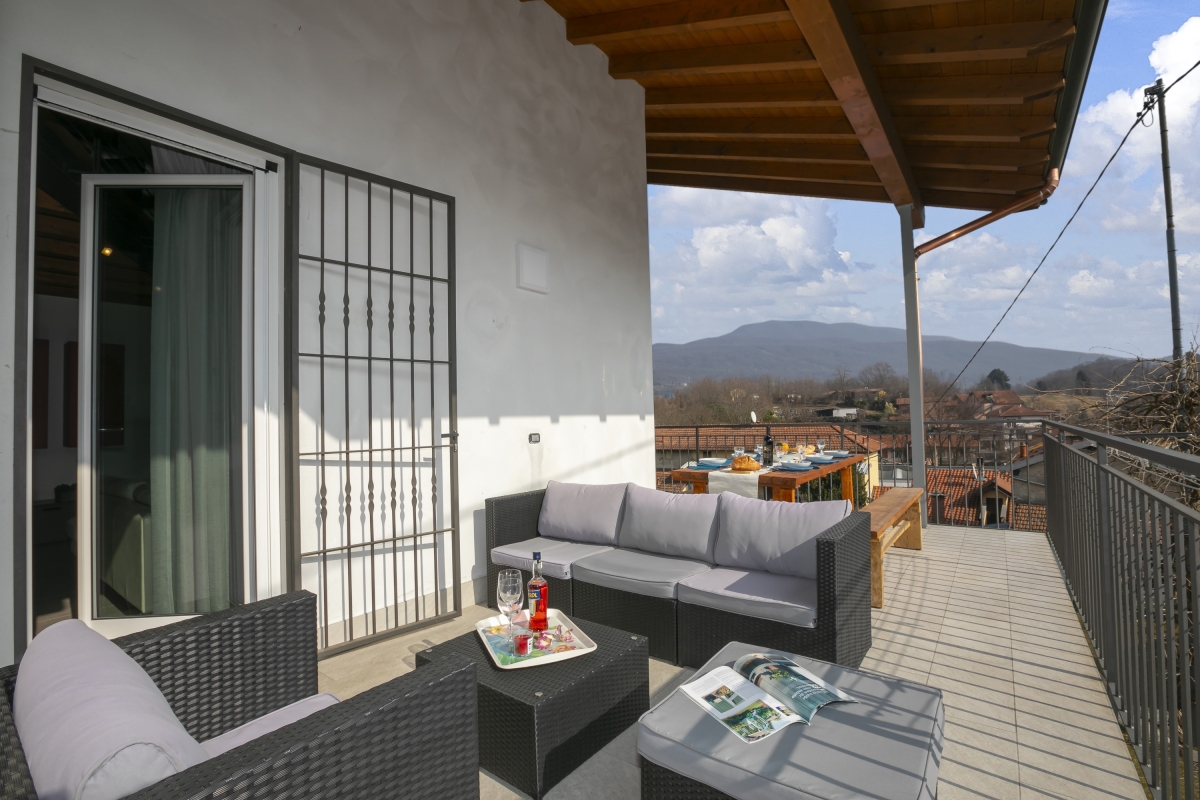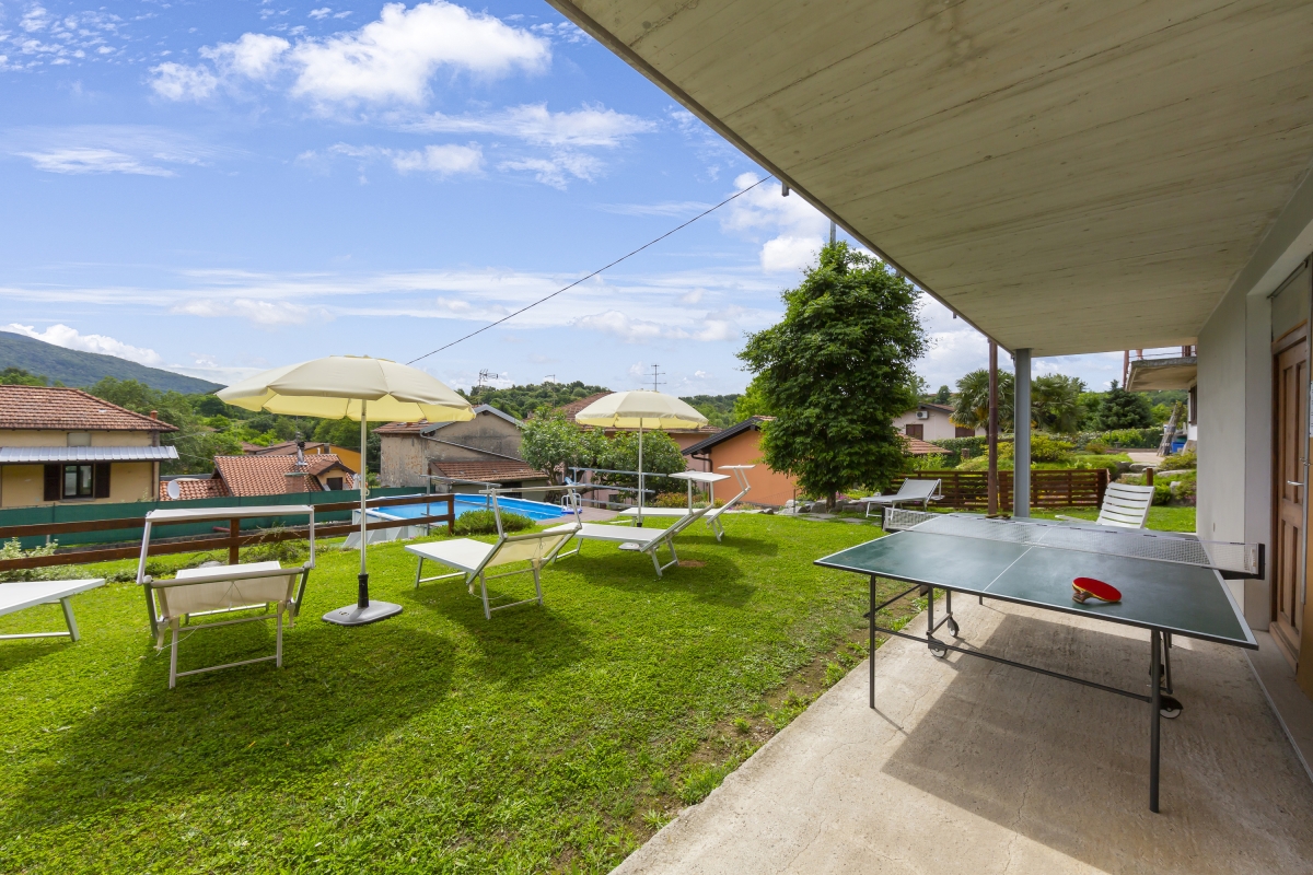 Make it a magical Lake Maggiore stay, with this modern family villa with private garden & pool! Boasting a sunny quiet setting in Besozzo, this modern 2-storey holiday retreat offers a picturesque holiday base between Lake Maggiore and Lake Varese. Inside, the WiFi-enabled home offers a family-friendly interior to suite groups of 9. Perfect for year-round getaways, the home is equipped with cosy underfloor heating for wintertime stays. To the light and airy ground floor, a modern open plan living features a stylish l-shaped sofa and an HD TV, alongside a dining area for 9. Accompanying the living room is a separate fitted kitchen diner with drip coffee machine. Upstairs, a spacious en-suite family room with double king-size bed and extra single bed features alongside a double bedroom with terrace access and 2 further bedrooms, both of which are furnished with 2 sets of single beds. A contemporary family shower room and private laundry facilities promises added convenience whilst away. The family and group-friendly home also offers plenty to amuse and entertain; with a tennis table and gym featuring alongside a private outdoor pool and a large private garden with BBQ and alfresco dining space. A private parking space is also provided. Guests are placed 7-14 minutes’ walk away from the amenities of Besozzo. The popular Lake Maggiore resort towns of Ispra and Laveno-Mombello are 15-17 minutes’ drive away, whilst Lake Varese is just 10 minutes’ drive away. Sleeping- Bedroom 1: Double-king size bedroom with wardrobe & terrace access Bedroom 2: Inviting guest room furnished with 2 separate single beds & wardrobe Bedroom 3: Double king-size bed with extra single bed, wardrobe & en-suite bathroom Bedroom 4: Spacious guest room furnished with 2 separate single beds & wardrobe Bathrooms- Bathroom 1: Family bathroom fitted with a shower, wash basin, WC & bidet Bathroom 2: En-suite to Bedroom 3 with bath tub, overhead shower, wash basin & WC Additional- • Outdoor private pool (unheated) • HD TV • Free WiFi • Drip coffee machine • Underfloor heating • Central heating • Washing Machine • Ironing facilities • Hairdryer • Gym • Mobile badminton net • 9 internal steps • 12 external steps • Private garden • BBQ • Alfresco dining set • 8 Sun loungers • Private parking space Extra Charges and Information The pool will be open from April 01-October 15th. Location: The picturesque private villa is situated along ‘Via G.Pascoli’ in Besozzo, 7-14 minutes’ walk away from a local range of eateries and restaurants. Nearby Ispra (15 minutes’ drive away) offers a wide selection of bars, restaurants, supermarkets, the DK Summer Club, Active Sport Day excursions and lake swimming spots, whilst the famous UNESCO World Heritage site of ‘Hermitage di S.Caterina del Sasso’ in Reno di Leggiuno is just 17 minutes’ drive away. Guests are also 17 minutes’ drive away from Loveno-Mombello, where a selection of authentic Italian Trattorias and Pizzerias, resort shops, the Laveno-Mombello Nord Train station and the Lake Maggiore car and passenger ferry stop await. Other local Lake Maggiore highlights include Rocca di Angera castle, the Borromean Islands and the resort towns of Intra, Stresa, Arona and Pallanza. Lake Maggiore is a very family-friendly destination; with Safari and Wildlife Parks, the Lake Maggiore Adventure Park and the Ondaland high-tech water park to enjoy, alongside wind surfing, wakeboarding, sailing, diving, tennis table, horse riding, golf and Italian Alp Skiing. Lago di Varese, Lago di Comabbio and Lake Lugano are also within easy driving distance. The closest airports are Lugano and Milan Malpensa (44 minutes’ drive away).