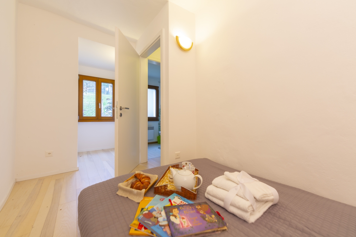 Dip into the top highlights of Lake Lugano and neighbouring Lake Como, from this 3-storey townhouse in Pugerna! Enjoying a sunny hillside setting, this 2-bedroom home for 5 is perfectly placed for sightseeing on the Swiss-Italian Lakes, as well as for exploring the local lakeside villages. The 3-storey townhouse offers plenty of space in which to kick back and relax. A flat screen SAT TV with DVD player and book-games library provides timeless year-round amusement within the living room, which is complemented by a sofabed, a small modern kitchenette and a double bed. A separate fully-equipped kitchen diner for 6 also sets the scene for effortless entertaining. From the ambient living room, a flight of open tread stairs leads to an open mezzanine floor with double bed. A 2nd bedroom and 2 contemporary-fitted shower rooms complete the internal layout of this updated, flexible home. Private laundry facilities are also provided. From the holiday home, paid public parking can be found 500 metres away. From its authentic hillside setting in Pugerna, a local café is 3 minutes’ walk away from the holiday home, whilst S. Rocco Lago ferry stop is 4 minutes’ drive away. The nearest lido can be found in Bissone (10km away). The strategic holiday location is ideal for exploring the delightful local lake villages, as well as for sightseeing around Campione d’Italia, Lugano city and neighbouring Lake Como (all under 39 minutes’ drive away). Sleeping- Bedroom 1: A spacious single bedroom Bedroom 2: Open mezzanine floor with double bed & wardrobe (reached by a flight of open tread stairs) Extra: A double sofa bed features within the living room Bathroom- Bathroom 1: Modern fitted shower room with wash basin & WC Bathroom 2: Modern fitted shower room with wash basin & WC Additional- • Located along a secondary hillside road • Flat screen TV + DVD player (equipped with Italian SAT channels and some English and German channels) • Book-games library • No WiFi (due to the weak signal) • Central heating • Ceiling fan • Hairdryer • Washing machine • Ironing facilities • Pets considered • 1 external step • 40 internal steps • Paid Public parking can be found 500 metres away • Car recommended - Moka Coffee Maker Location: The 3-storey townhouse is situated along ‘Via al Lago’, in the hillside town of Pugerna. The secondary road location places guests within a 3 minutes’ walk of a local café and 20 minutes’ walk/ 3 minutes’ drive from the start of a scenic Lake Lugano walk, from Caprino to Cantine di Gandria. The S. Rocco Lago ferry stop is 4 minutes’ drive away. For those looking to soak up a classic day by the lake, the Lido in Bissone is 10km away. Guests are also well placed for exploring Lake Lugano and neighbouring Lake Como. The buzzing lake city of Lugano is just 35 minutes’ drive away, whilst the Italian city of Campione d’Italia is 23 minutes’ drive away. Just 39 minutes’ drive away, Argegno on Lake Como provides a strategic base from which to reach the touristic Central Lake and the southern city of Como for the day, or for a scenic evening out. The closest airports are Lugano airport (35 minutes’ drive) and Milan Malpensa airport (67 minutes’ drive).