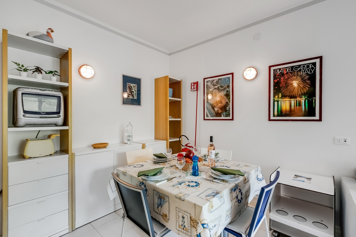 Make the most Riva del Garda, from this gorgeous balcony retreat in a lakeside residence with beach! Ideally located for soaking up the nearby lake beach and resort amenities of town, this 1st floor apartment sets the scene for an effortless escape on Lake Garda. The open plan living room offers balcony access, for a carefree summertime flow. Equipped with a double sofa bed, flat screen TV and modern kitchen diner for 4, the living space is ideal for all-weather enjoyment. Outside, the private balcony is also equipped with an alfresco dining set. A spacious master double bedroom features, alongside a contemporary fitted shower room and private laundry facilities, for added convenience whilst away. Larger groups looking to stay can rent additional apartments in the same residence, ‘Riva Lago e Spiaggia 2’ (ID 3820) and ‘Riva Lago e Spiaggia’ (ID 3423). The 1st floor apartment features in a 5-storey lake view residence, with lift access. Outside, a communal lakeside garden with beach, bike and pedestrian paths can be enjoyed, alongside a private parking space. Due to the convenient setting of the holiday apartment, a car is not necessary. Sleeping Bedroom 1: A restful and uplifting double bedroom with wardrobe Extra: A double sofa bed for 2 features within the living room. Bathroom Bathroom 1: A contemporary fitted shower room with wash basin, WC & bidet Additional • Air Conditioning • Flat screen TV • Free Wi-Fi • Central heating • Hairdryer • Washing machine • Mokka Coffee Machine • Clothes horse • Private balcony • Alfresco dining set • 1 sun lounger • Lift access • Reached by 18 external steps (if not using lift) • Shared lakeside garden • Private parking space • Car not necessary • Pets allowed Location The residence is situated within communal lakeside gardens, along ‘Via Franz Kafka’, placing guests within 2-4 minutes’ walk away from the local lake lido beaches, a bike rental shop, sailing club, watersport facilities, a host of restaurants and bus links. The tourist attractions, Old Town and scenic lakeshore of Riva del Garda are reachable on foot within 15-20 minutes. Guests are 8-10 minutes’ drive away from the waterfalls of Cascate del Varone and the Riva del Garda Fiere exhibition centre. The nearest airport is Verona Villafranca (80 minutes’ drive away).