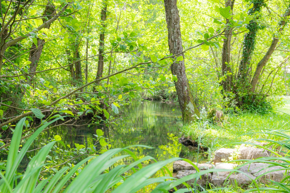 On the edge of an intermittent lake and in the middle of a protected regional park lies an estate with a beautifully landscaped house by its own stream and carefully tended surroundings.