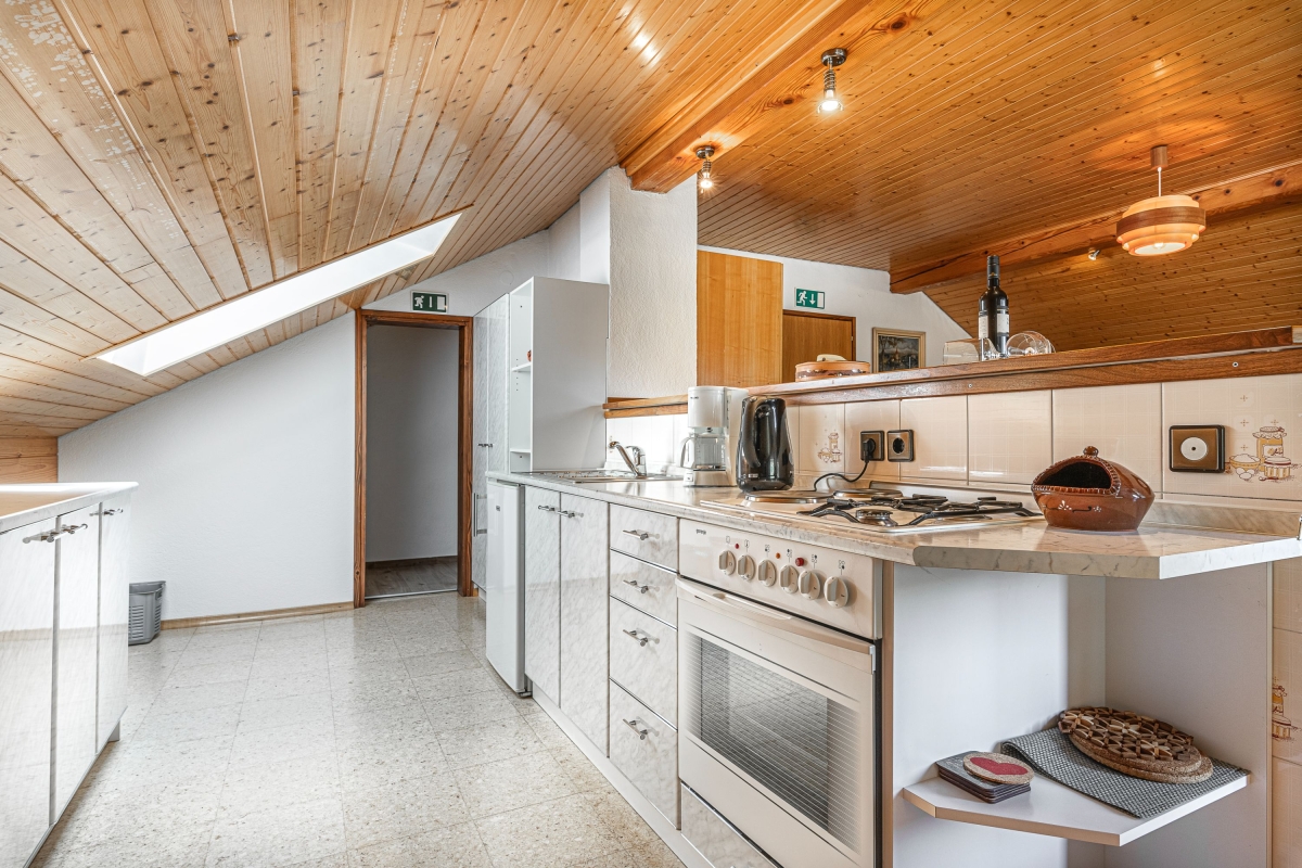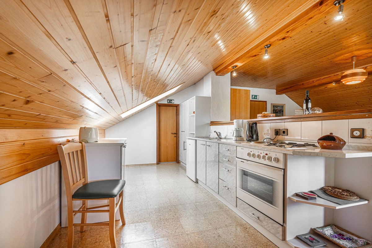 The open-plan living room is generous in size and has an L-shaped double sofa bed, cable TV and a kitchen with a dining area, an american style coffee machine, an oven, a toaster, a cooker hob, an electric kettle and a fridge with a freezer. On this floor, there is also a special room with a wood-burning stove for socializing on colder days.