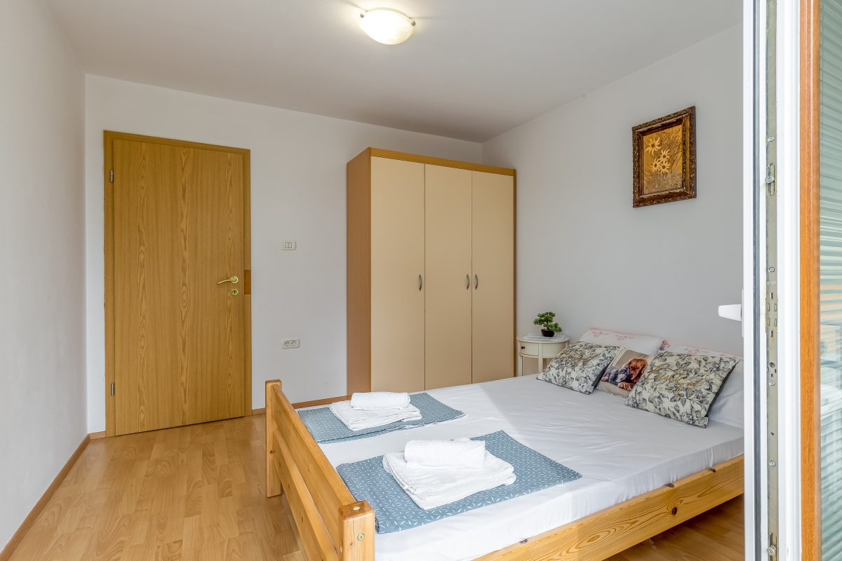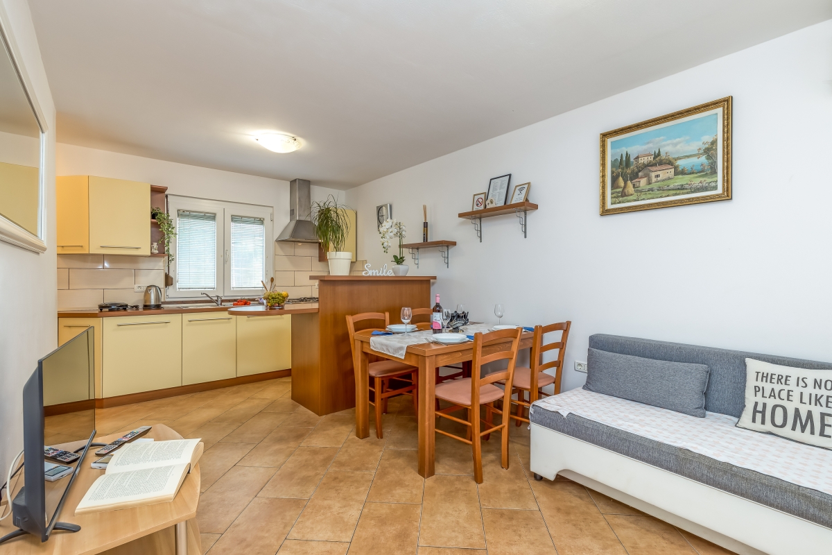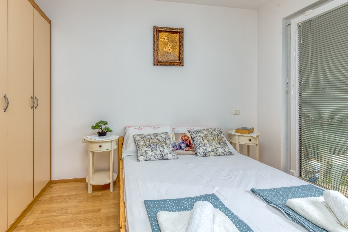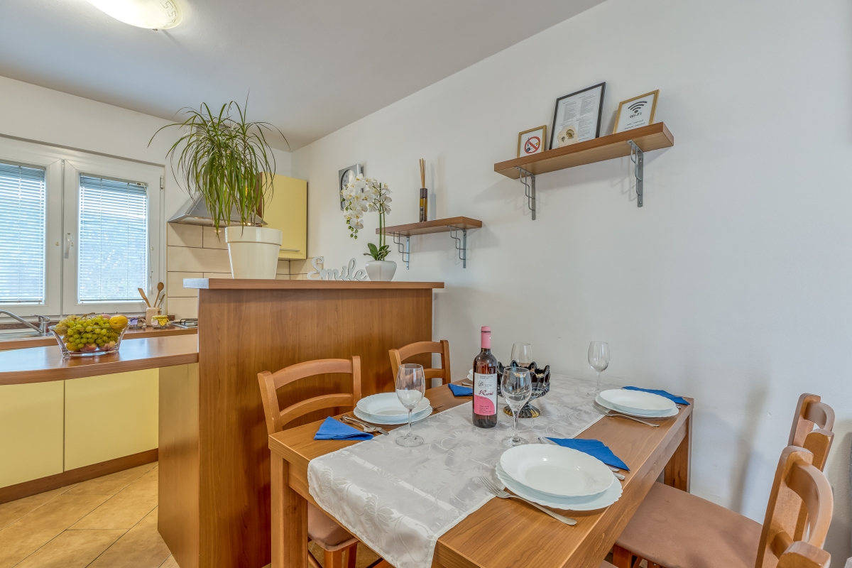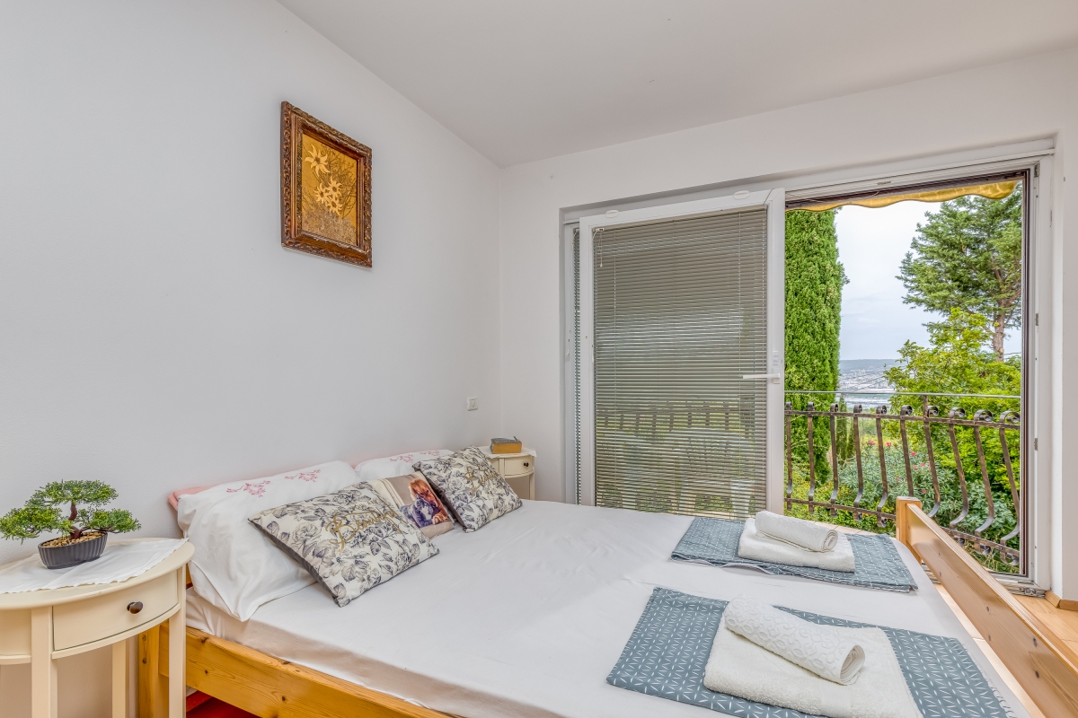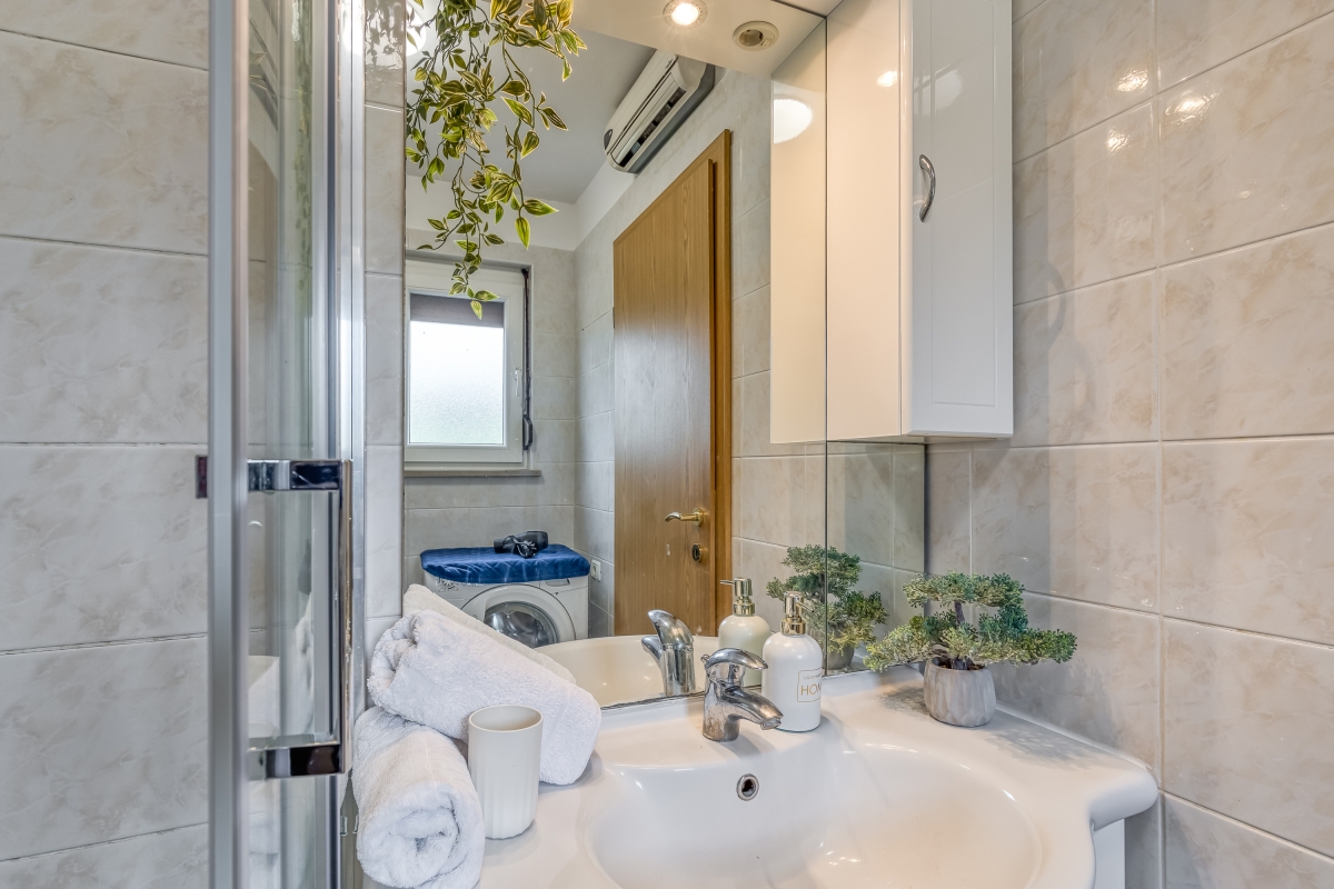 Enjoy perfect natural bliss at this one-bedroom house located in the middle of vineyards and overlooking the serene Adriatic Sea. The beautiful holiday retreat is an ideal accommodation choice for 4 guests and has much to offer. There is a courtyard with garden furniture set in the shade of an olive tree. There is also a slide for young ones to play and have fun. The atmosphere is really quiet and guests can take a stroll in the vineyards without being disturbed for hours. On the ground floor of the house, there is a lively open-plan living room with a double sofa bed, a dining table, a TV and a kitchen. With a microwave, an oven, a toaster, a cooker hob and a fridge, guests will surely enjoy cooking in this kitchen. The bedroom is on the first floor. Sleeping Bedroom 1: The wonderful room with a balcony with sea views is furnished with a double bed and a wardrobe. The double sofa bed is comfortable for sleeping for two guests. Bathroom Bathroom 1: The nice bathroom has a shower cubicle and a WC. Additional • BBQ • Suitable for all age groups • Private Parking • Free Internet • Air conditioned • Fenced Garden • Tourists need to pay 2.50 Euros/day/person as tax. Location The house offers a tranquil atmosphere with lots of sun to bask in. It is the perfect recipe for a relaxed holiday with friends and family. Guests can get homemade wines and olive oil here from the owner. There is also a restaurant and a shop, a winery and a shop within a kilometer of the house. The nearest beach is at a convenient walking distance. Beyond fun at the coast, there is also international cycling and hiking trail near Parenzana and plenty of mountain trails. Guests can also enjoy swimming and natural baths under the magnificent cliffs. Italian Trieste is around the corner, a few minutes to the nearby Istrian city of Koper. The surrounding area is extremely rich in good inns and restaurants. The Karst region with its world-famous caves is about half an hour’s drive from the house. The nearest airport is only 40 kilometers away.