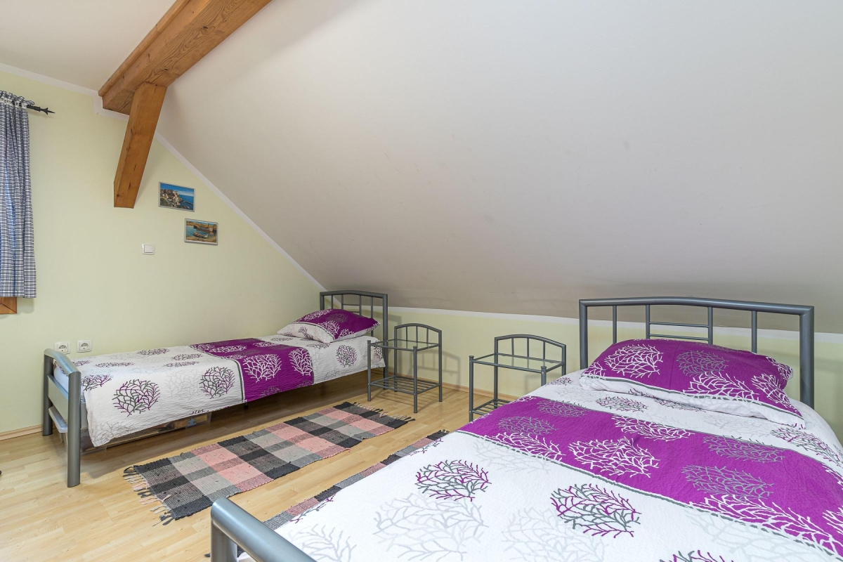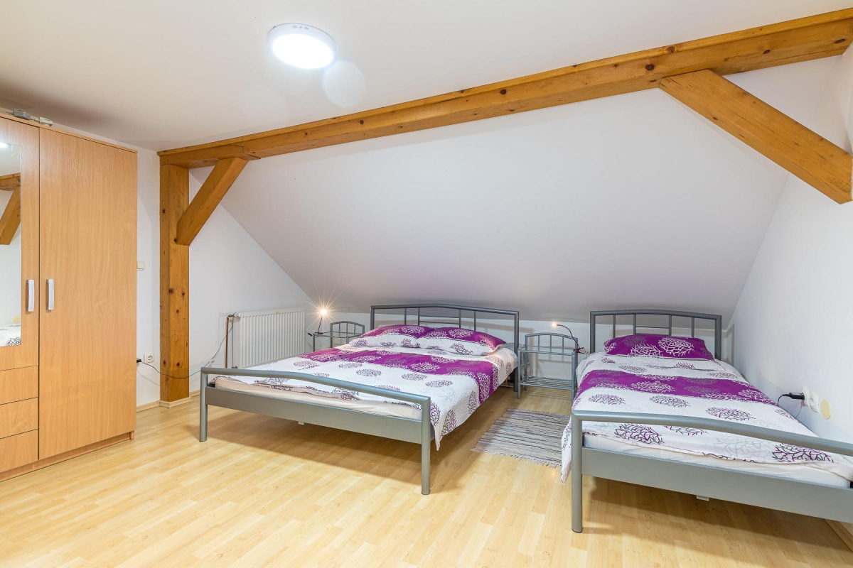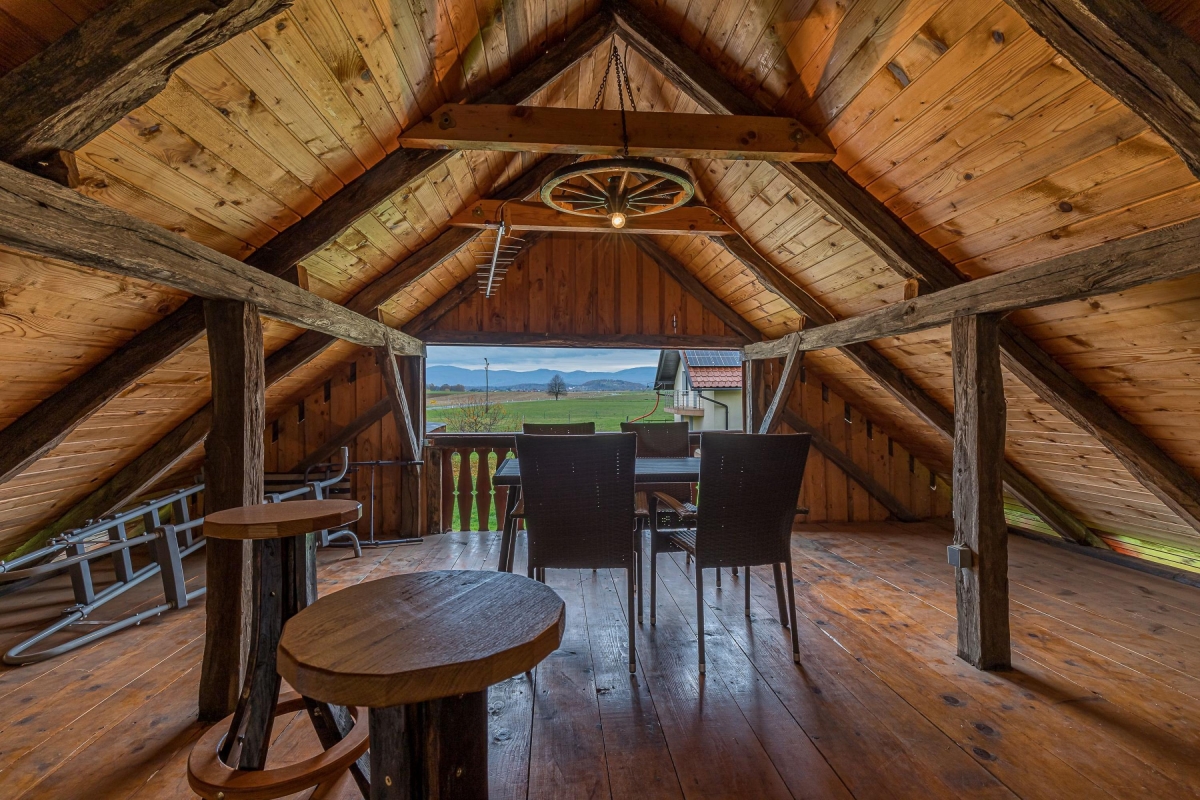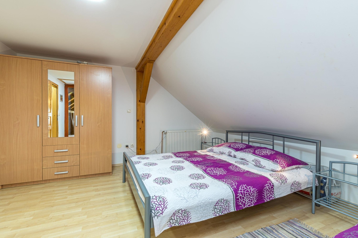 Unwind within walking distance of Kolpa river at this countryside haven for up to 7 guests! Nestled amidst refreshing greenery and sunshine, Kovačnica Sreče is a two-storey rustic-style holiday home suitable for a large group of family and friends. The holiday home is tucked away in a peaceful setting and offers the perfect summer experience. There is a lovely backyard full of lush trees, an exposed-beam terrace with an open grill-dining as well as a private paddle pool for guests to enjoy to their heart’s content. Inside, the holiday home welcomes guests into cosy interiors and provides an effortless self-serviced stay, complemented by modern amenities like air-conditioning, flat-screen HDTV and free Wi-Fi. An ambient and spacious kitchen-diner is also at guests' disposal for them to get together and enjoy meals over long conversations and fun reunions. Essential utilities like a microwave, fridge and toaster are available for use. Sleeping Bedroom 1: A nice bedroom with a double bed and wardrobe. Bedroom 2: A comfy bedroom with 2 single beds and a wardrobe. Bedroom 3: A single suite with a wardrobe. Extra: There is a double sofa bed in the living room of the holiday rental. Bathroom Bathroom 1: The luminous bathroom comes with a shower box, washbasin and WC. Additional • Private outdoor pool (unheated) • Hotbird • Child-Friendly • Private Parking • Laundry Facilities • Music Stereo • Fireplace Please note that the paddle pool is available only in summer months. A tourist tax of 2 Eur/Person/Day is to be paid on the spot. Location This serene holiday retreat is located in the biggest village, Gradac, of the Bela Krajina region, where a perfect day consists of honey and wine-tasting along with indulging in traditional delicacies like Bela Kranija cake, roast lamb, buckwheat struklji or cake potica. The closest restaurant and bar is just 3-6 minutes walking distance, and facilitates a worry-free self-serviced stay. Meanwhile, the clear waters of River Kolpa, great for swimming and canoeing, are also within an easy walking distance (15 minutes) from here. The most famous tourist attraction of the region, the well-preserved Gradac Castle, is a convenient 15-minutes car ride away. And for those looking to completely relax and rejuvenate, will find this holiday home a great base as natural massages at the dams connecting Slovenian and Croatian Coasts as well as fishing ponds are close at hand. The closest international airport is Rijeka Airport, approximately a 1 hour 30 minutes car ride away.