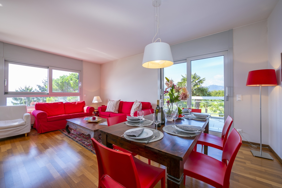 Grosszügige und gut konzipierte Wohnung, mit schöner Terrasse und tollem Blick auf den Luganer See. Schöne Poolanlage. Als Willkommensgruss war eine Flasche Champagner auf dem Tisch, eine positive Überraschung!