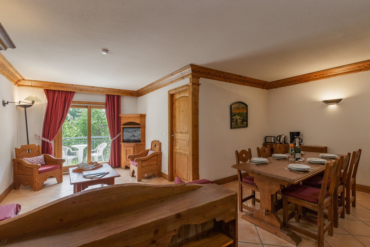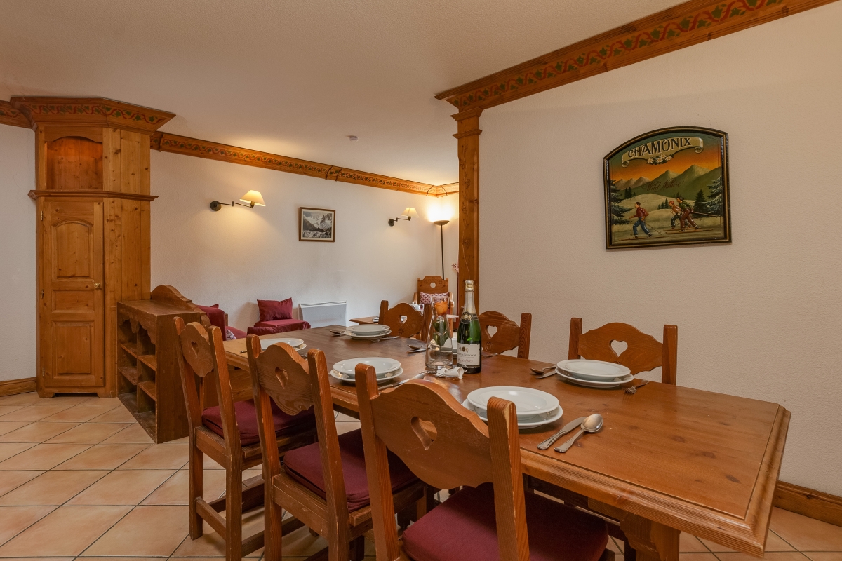 A large apartment with stunning mountain views, this is the perfect alpine base for family or friends. This first floor and traditionally decorated apartment comfortably sleeps 6 people. The spacious living area, with its wooden sofa and comfortable armchairs, and open-plan kitchen, make the ideal space for relaxing and hanging out with friends after a day skiing or hiking. The sliding glass doors lead out onto the private balcony with a table and two chairs, where you can sit in the summer months. For indoor dining, there is a large wooden table that seats 6, next to the well-equipped kitchen. The kitchen has an induction hob, oven, fridge, dishwasher and drip coffee machine, for stress-free self-catering. All three bedrooms have everything you might need for a comfortable stay. On the ground floor of the building, there is also a communal sitting area with a pool table. For larger groups, other apartments are available in Résidence Le Cristal. These are in the same part of the Residence Le Cristal Ref: 2272, 5330, 5331, 5332 and 5333. These apartments are in the same residence but not in the same corridor. Ref: 2275, 2276, 2277, 2300, 3157, 3298, 3435, 3769, 3914, 5698. Sleeping Bedroom 1: The bright master bedroom with a double bed, en suite bathroom and a French window which leads onto a private balcony. Bedroom 2: A lovely double bedroom, decorated in a mountain style with two wardrobes and great mountain views. Bedroom 3: 2 single beds in a cosy room which is perfect for children. 1 bed is reached via a small ladder. Bathroom Bathroom 1: En suite to bedroom 1, this alpine-style bathroom, with classic white tiling, has a separate shower, basin and W.C. Bathroom 2: Similar décor to bathroom 1, the second bathroom is separate from the other bedrooms and has a shower, basin and W.C. Additional • Wifi installed • Smart TV • Outside dining area • Shared pool table • Smoke detector • Ski storage • Private underground parking, but car not necessary - Pets allowed Location The apartment is in the centre of the village of Argentière, a short walk from the lifts for Les Grands Montets skiing area, ski slopes and shuttle buses. The slopes around Argentière are suitable for intermediate and experienced skiers. Some higher slopes offer skiing later in the season, sometimes right up to early May. For younger skiers, the Panda Club offers ski lessons and other activities. The village is home to some excellent restaurants and bars to suit all budgets. All the facilities of the Chamonix region are on your doorstep. During the summer months, there are stunning mountain trails for hiking or mountain biking, white water rafting, golf, rock climbing, paragliding and horse riding. For something more relaxing there is the renowned QC Termes spa in Chamonix (10 mins drive). Geneva airport is a 1.5 hours drive from the apartment. There are free shuttle services between Argentière and Chamonix, either by bus (22 mins) or by train (18 mins), on the Mont Blanc Express.