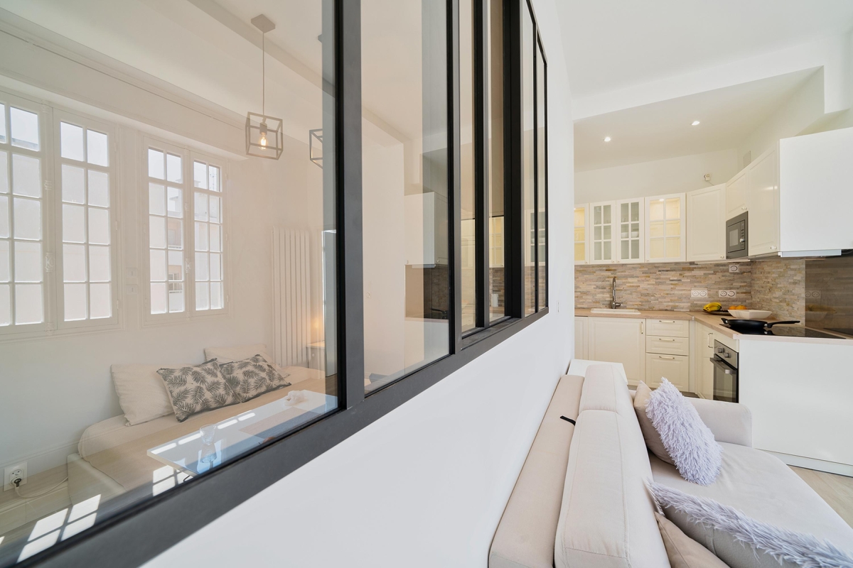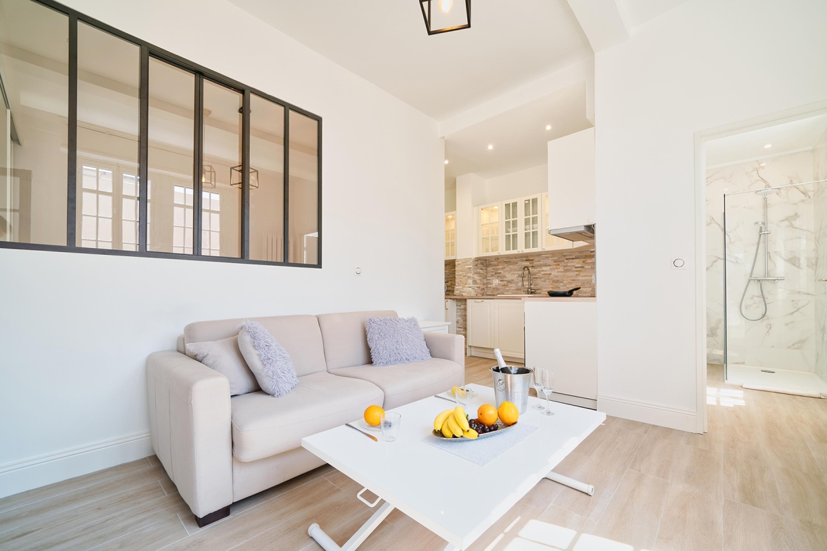 This chic and modern apartment in Juan-Les-Pins is perfect to enjoy the town’s various amenities and lively nightlife.
