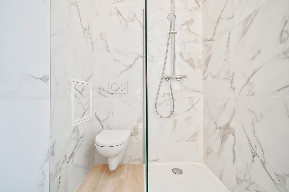 Bathroom 1: A modern bathroom fitted with a shower and WC.