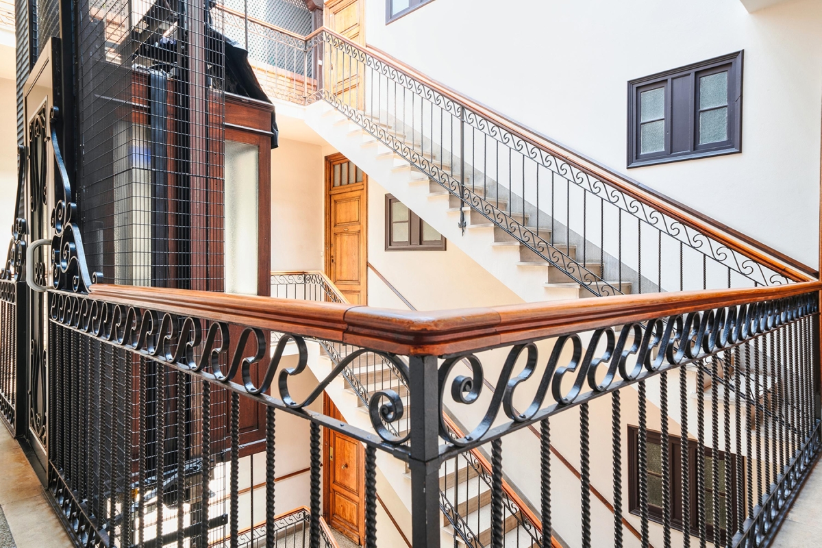 Suitable for up to 4 guests, this third-floor apartment is located in an artistic and historical building. To reach this completely refurbished retreat, guests can either take the elevator available for them or appreciate the beautiful staircase while making their way to the apartment.