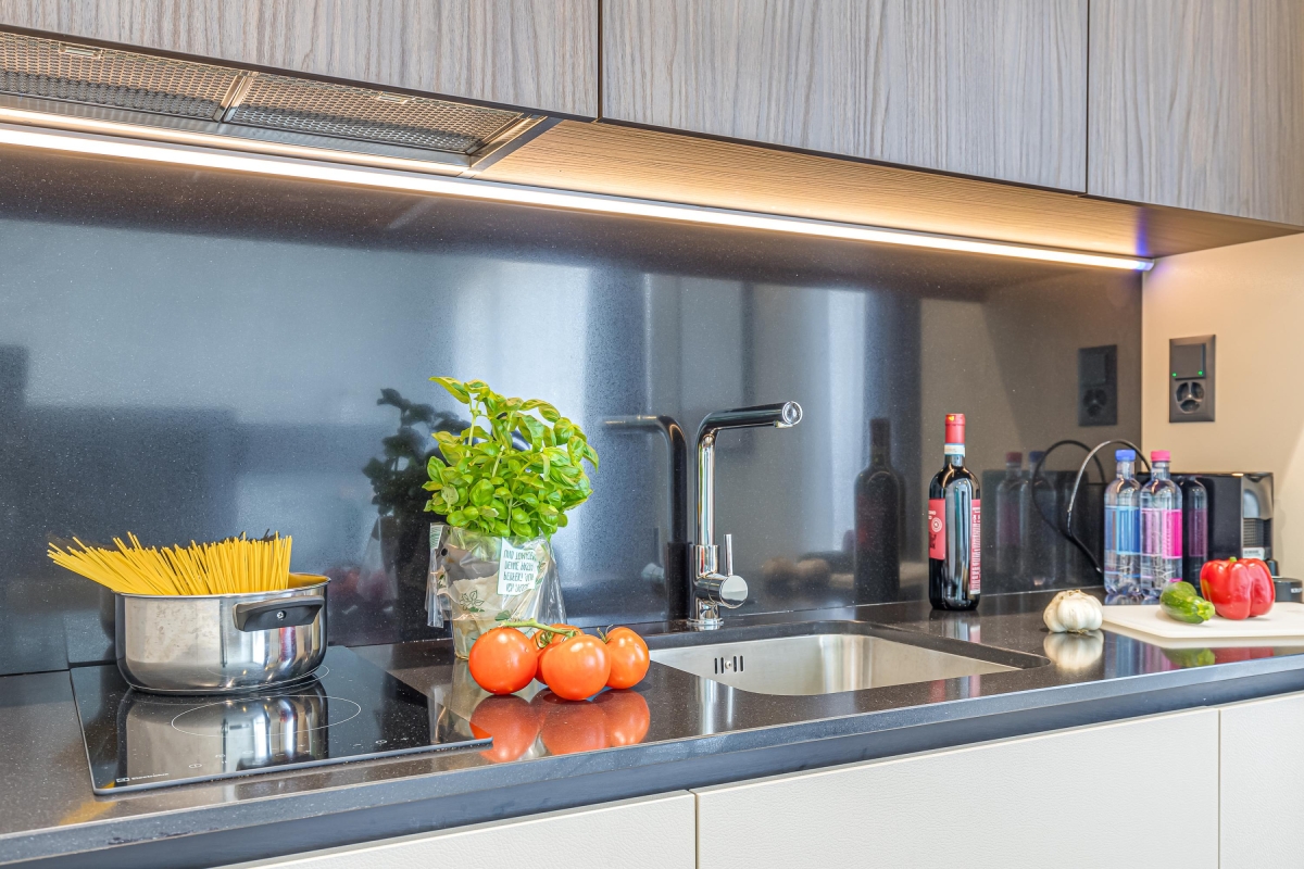 The ideal base to explore the picture-perfect city of Lugano. This luxurious flat sleeps 4 people in comfort. It is on the fourth floor of a striking new development which caters to business travellers and people who are looking for a relaxing city break. The communal facilities include a co-working space, a ground-floor restaurant and bar with extensive outdoor seating, a gym and secure storage space. The bright, open plan living room has a contemporary-style sofa, Smart TV and a dining table with 4 seats. In the sleek, open plan kitchen you will find everything you might need during your stay: a cooker hob, microwave, fridge, freezer and Nespresso machine. A large glass door leads out onto a private balcony with a wooden table and two chairs, so you can dine al fresco and enjoy the gorgeous views of the city and mountains. Sleeping Bedroom 1: The master bedroom has a double bed and extensive wardrobes. Bathroom The separate stone-tiled bathroom has a glass shower, large basin and WC. Additional • Free Wifi • Lift • Outside dining area • Laundry facilities • Laptop friendly workspace plus shared co-working space • Air conditioning • Central heating • Hairdryer • Garage parking available (chargeable) and free public parking, but car not necessary • Child-friendly • Suitable elderly • Pets possible on request • EV Garage parking available (chargeable) Location On the border of Switzerland and Italy, the city of Lugano is famous for its stunning location, rich cultural heritage and excellent restaurants and cafés. The city hosts many festivals throughout the year, including the “Luganomusica” festival every summer. MASI (the Museum of Art of Italian Switzerland) (a 20-minute walk) hosts regular contemporary art exhibitions. A day trip on the Lago Lugano is a must, but if you do not have time take a walk along Lugano’s famous waterfront, and enjoy the breathtaking views over the lake. Then head to Piazza della Riforma, the heart of Lugano, and take a break at one of the many cafés that line the square. If you prefer to cook at the apartment then try the local farmers’ market (Tuesdays and Fridays) in Via Carducci (20 mins walk). The perfect place to pick up the best ingredients. For business travellers, the apartment is just an 11-minute walk from the Centro Esposizioni Lugano exhibition centre and an 18-minute walk from the Palazzo Dei Congressi Lugano. The closest international airports are in Italy - Milan Malpensa 1 hour and 5 minutes away by car, or Milan Linate, a 1 hour and 20-minute journey. Arriving by train? Lugano’s railway station is a 25-minute walk from the apartment.