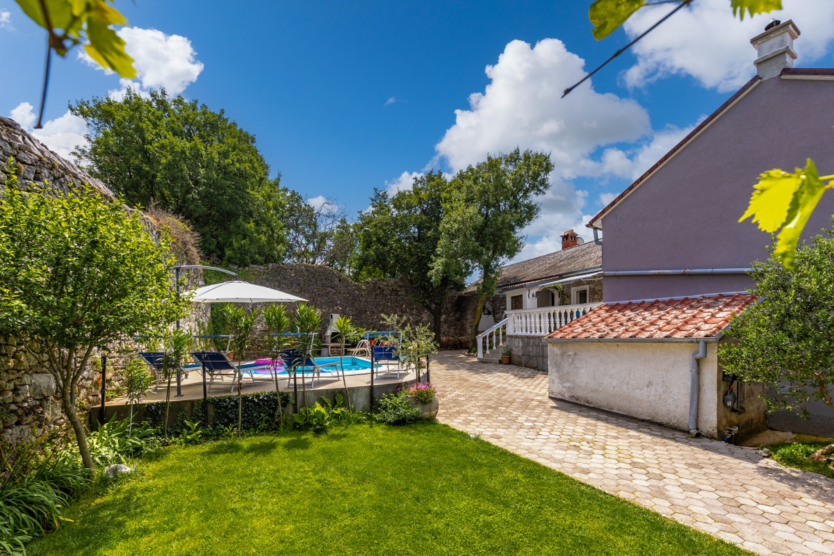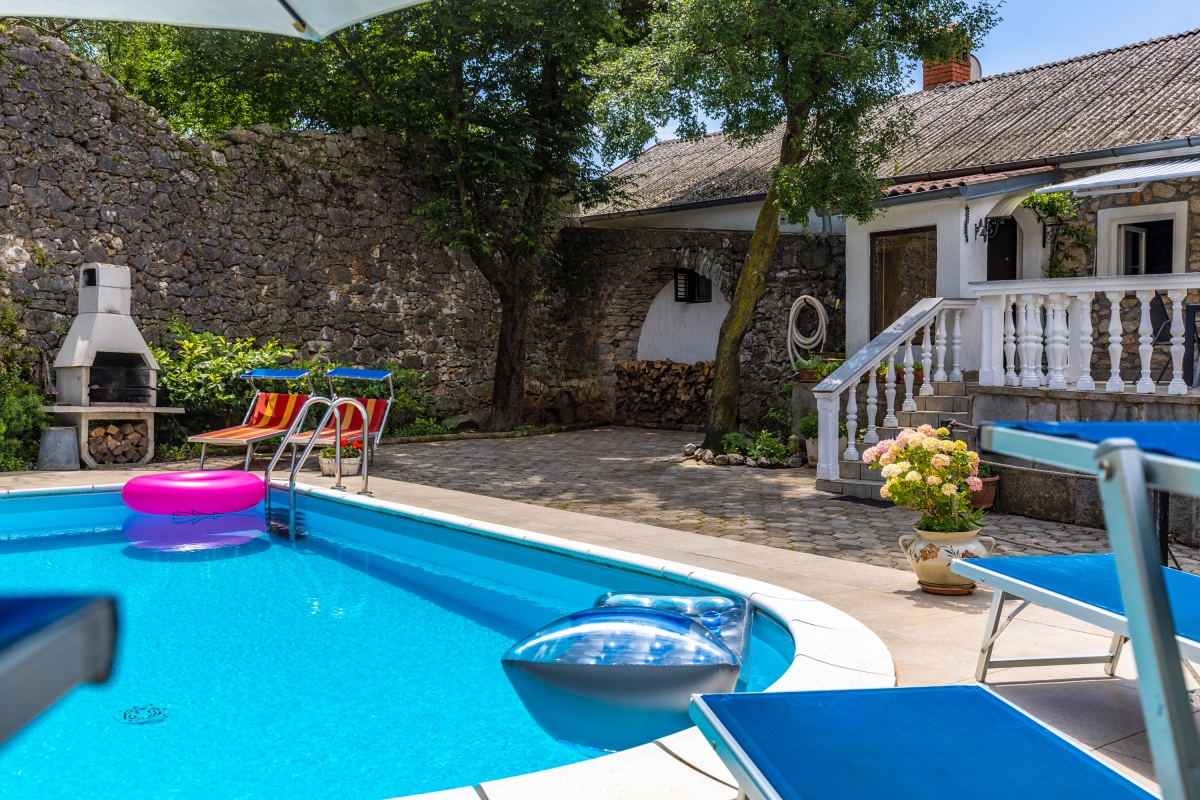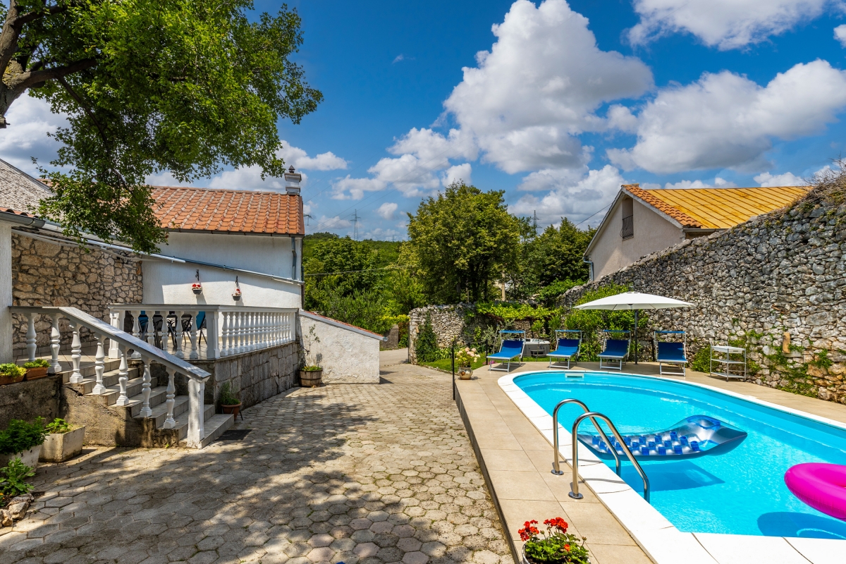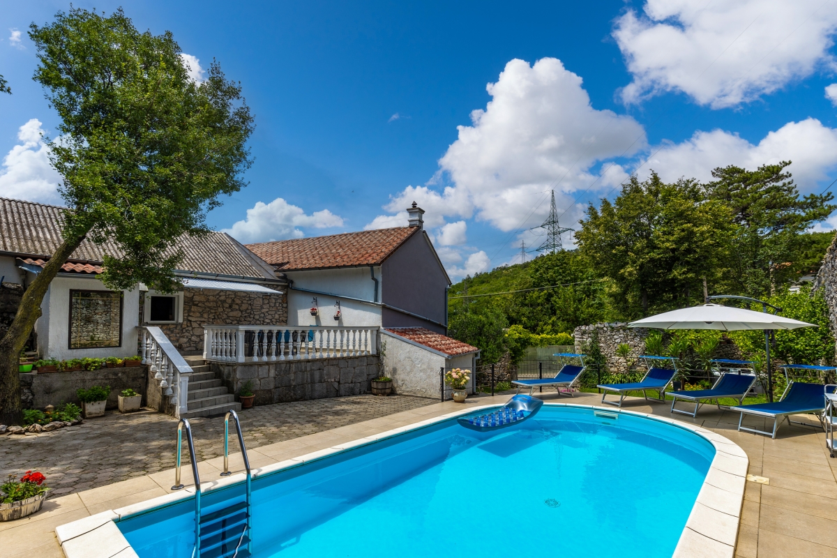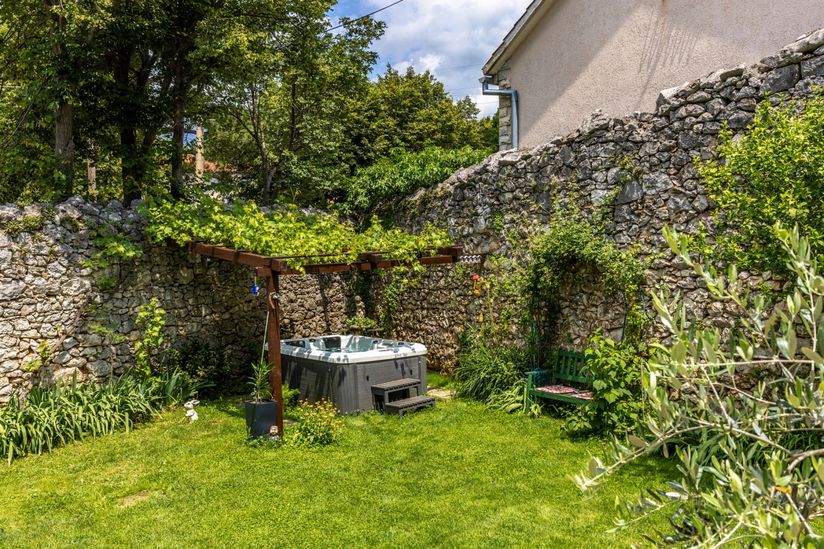 Indulge in a unique holiday experience and enjoy a hot barbecue with our three-bedroom getaway for 8! Enveloped in lush greenery, this holiday house offers access to a pool, a lovely private garden and a BBQ area with comfy sunbeds by the pool. The outdoor jacuzzi adds to the experience allowing guests to unwind after a day of exploration. This contemporary two-level retreat welcomes you to enjoy alfresco meals in the sun while you relax on the private balcony. Inside, the ground-floor unfolds into stylish interiors and a well-appointed living room, featuring plush sofas, a smart TV and a games console, allowing families to have a fun getaway. It seamlessly connects to an open kitchen and dining space, equipped with all the essentials like a cooker hob, a dishwasher, a microwave, and a Nespresso coffee machine in order to facilitate a comfortable stay. The air-conditioned holiday rental has three bedrooms, two with a double and a single bed, and one with a double bed, accommodating up to 8 guests. Located on the secondary road, the quiet ambience and complimentary WiFi make it a suitable option for remote work. For convenient travel plans, the property also provides a private parking space to all its guests. Sleeping Bedroom 1: A lovely bedroom with a double bed, a single bed and a wardrobe. Bedroom 2: A spacious bedroom with a double bed, a single bed and a wardrobe. Bedroom 3: A well-furnished bedroom with a double bed and a wardrobe. Bathroom Bathroom 1: A well-lit bathroom with a shower and WC. Bathroom 2: A fine-tiled bathroom with a shower and WC. Additional • Free Wi-Fi • Private Outdoor Pool • Smart TV • BBQ • Air Conditioning • Dishwasher • Washing Machine • Private Garden • Private Parking Space • Pets Allowed • Child-Friendly • Smoking Not Permitted Please Note It is possible to add up to two extra beds in each bedroom on request. Location This holiday house enjoys a fantastic location where, within a 15-minute drive, guests can reach Kraljevica Beach, Kostrena Beach and Svežanj Beach, ideal for sunbathing and relaxation. Hreljin Castle, a historical landmark, is also a 5-minute drive from the house. If you’re eager to dip into pristine water, public beaches like Plaža Perovići and Bakarac Beach are within a 15-minute drive away. For nature lovers, there are many national parks within approximately a 40-minute drive that offer beautiful hiking trails and walking paths like Risnjak National Park and Medvjeđa Vrata. Meanwhile, guests can also visit the nearby town of Kraljevica within a 10-minute drive and explore the medieval fortress, Frankopan Castle. Under a short 10-minute drive away, you will find a supermarket, restaurants and local bakeries for your convenience. The nearest international airport, Rijeka International Airport, is only a 12-minute drive from the house.