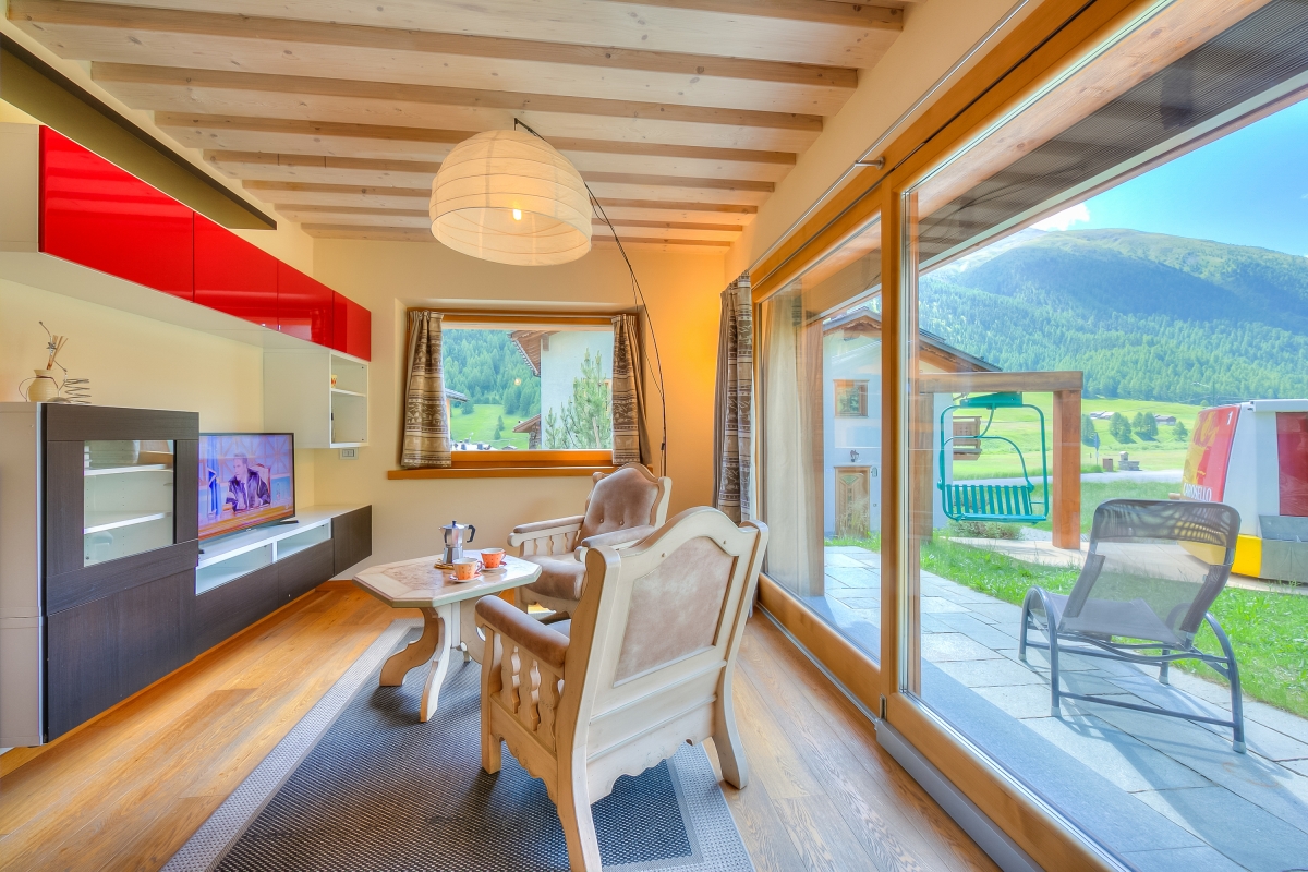 Enjoy an effortless and fun ski break with your family! With the largest ski area within walking distance, this modern, 2-bedroom holiday apartment for up to 4 guests in a chalet promises a memorable vacation in Livigno. The holiday apartment has a lovely, open private garden where the sun, greenery and mountains create the perfect alpine atmosphere to relax and unwind with loved ones. Inside, the ground-floor apartment, through multiple doors, provides easy access and maximum connection to the peaceful mountain view outdoors. The living room is furnished with a massive flatscreen TV, a coffee table, sofa chairs and a dining table. It also enjoys direct access to the garden, and thanks to large picture windows, the room is naturally lit with delightful sunshine. To make your stay absolutely carefree, the apartment has a modern-style kitchen with every utility; from a dishwasher to microwave, coffee machine and fridge at your disposal. The final touch of convenience at this child and elderly-friendly retreat is the availability of amenities like ski storage and a ski boot heater. Sleeping Bedroom 1: A cosy and inviting bedroom with a double bed and a large mirror wardrobe. Bedroom 2: A comfy twin bedroom with 2 single beds and a closet. Bathroom Bathroom 1: The contemporary family bathroom has a shower, sink, WC and bidet. Extra: A smaller washroom with a WC and bidet is available for added convenience. Additional • Private Parking Space • Ski boot heater • Car not necessary • Central Heating • Child-Friendly • Elderly-Friendly • Ski Storage • Pets Allowed on request • Installed Wi-Fi (chargeable) • Near skilift • Central location in ski resort Location The holiday apartment is ideal for a hassle-free self-catering stay in Livigno as it has a fully serviced supermarket just next door. The amazing and largest ski area, Coresello 3000 is within a 10-minute walk of the apartment, and it is also great for those coming in summer to enjoy the resort as it offers restaurants, summer sports and other activities. The Mottolino Bike park is within convenient driving distance, just 10-minutes from the holiday apartment. Plus, guests can easily enjoy another ski resort–Fontane-Vetta, within a 12-minute drive from here. Those looking for tranquil excursions into nature will find the bike and pedestrian trails of the Stelvio National Park (under 1 hour) perfect for them. Meanwhile, shopping lovers can make the most of the duty-free shopping at Livigno. Coming with kids? The tree-top adventures of Larix Park are just a 3-minute drive from here. Other than holidaying in winter, Livigno also makes for an excellent summer paradise with water sports like windsurfing, kayaking, and SUP; as well as land sports like golfing. The nearest international airport is Milan Bergamo, about a 3.5-hour drive from this holiday apartment in Livigno.