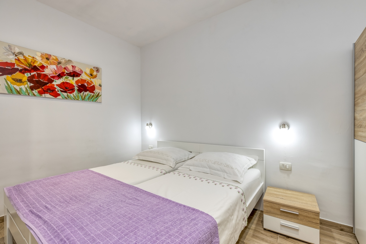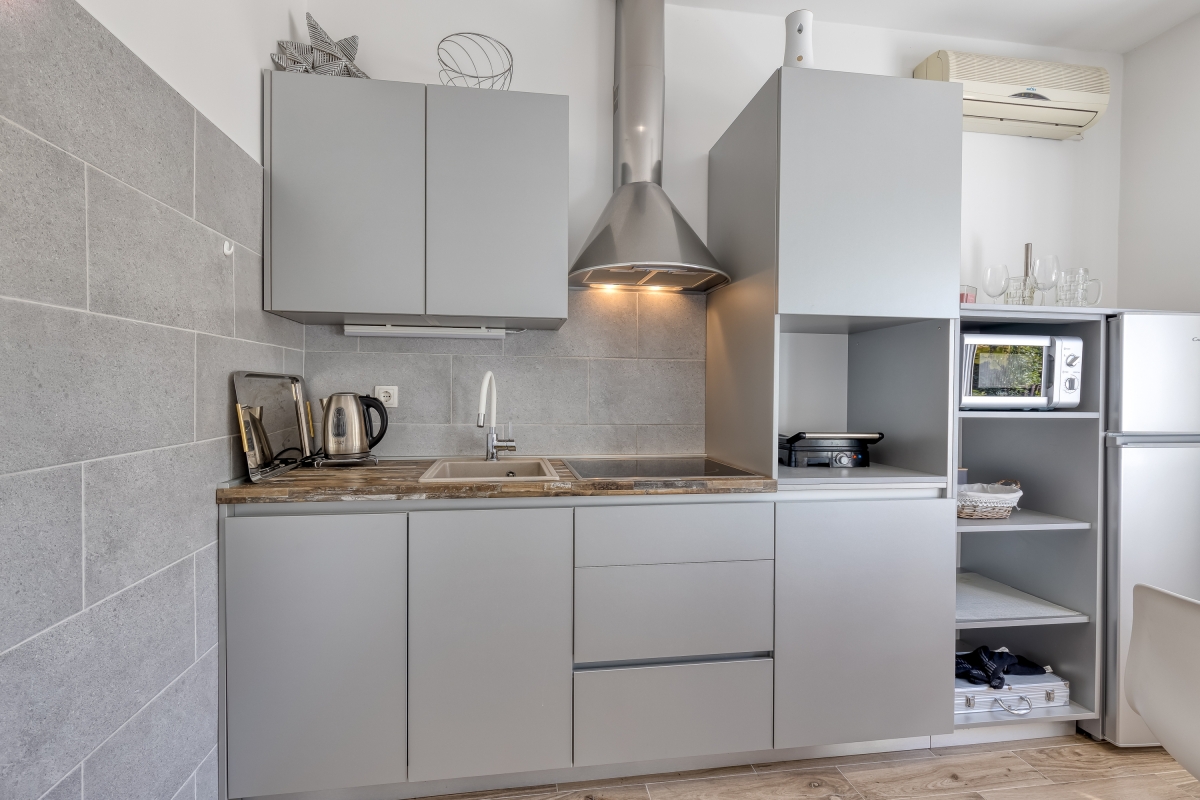 Enjoy relaxation like no other with this pool and garden retreat with a perfect view of Kvarner bay and Učka! Set in a sun-soaked hilltop location with enviably big outdoors, this one-bedroom modern apartment for 4 is ideal to have an intimate, peaceful and blissfully relaxing vacation in Rijeka. The pool area is equipped with sun loungers and there is also an open-air pergola dining with a BBQ for a perfect summer evening. The garden of the apartment has exclusive access for its guests and it features a high-quality sound system, creating an ambient atmosphere to relax with a long view over the bay. Inside, the child-friendly apartment has been newly furnished and features air conditioning and a fully equipped sophisticated open kitchen for a totally carefree holiday. The sea-view living area has a double sofa bed, window-side dining and the apartment kitchen. You will find a dishwasher, microwave, oven, and fridge with a freezer. Sleeping Bedroom 1: The comfy and modern bedroom has a double bed, large wall-mounted flat-screen digital HD TV and a wardrobe. Extra: There is a double sofa bed in the living room Bathroom Bathroom: The bathroom has a shower, sink and WC. Additional • Free Wi-Fi • 4 Sun Loungers • Private Parking • BBQ • Child-Friendly • Suitable for Elderly • Private Pool (3 x 6 m) and Garden • Air-conditioning • Wheelchair Access Location Located just a 10-minute drive from the Rijeka centre and beaches, this holiday apartment is a comfortable base to enjoy the best of Kvarner Bay. In Rijeka itself, there is a lot of history and culture to be explored: the Natural History Museum, the Maritime Museum of Rijeka and the Modern Art Museum are all within a 10-minute drive from here. If you are interested in WW2 relics, then the underground fortification Katarina B is only a 15-minute walk away. Other sites worth visiting are the Rijeka Cathedral, Trsat Castle, Matesic’s Mill and the Turkish House located in the market. The list really goes on, with several hidden historical and natural gems to explore. With Rijeka, you are near nature and also the summer paradise, Krk Island– the Krk Bridge is a convenient 25-minute drive from here. You can take trips to Opatija, which is great for hiking through nature trails. And although the winters are mild in Rijeka, the ski resort Platak offers the opportunity to enjoy skiing in Croatia; it is located less than an hour’s drive from the holiday apartment. The closest airport is the Rijeka International Airport.
