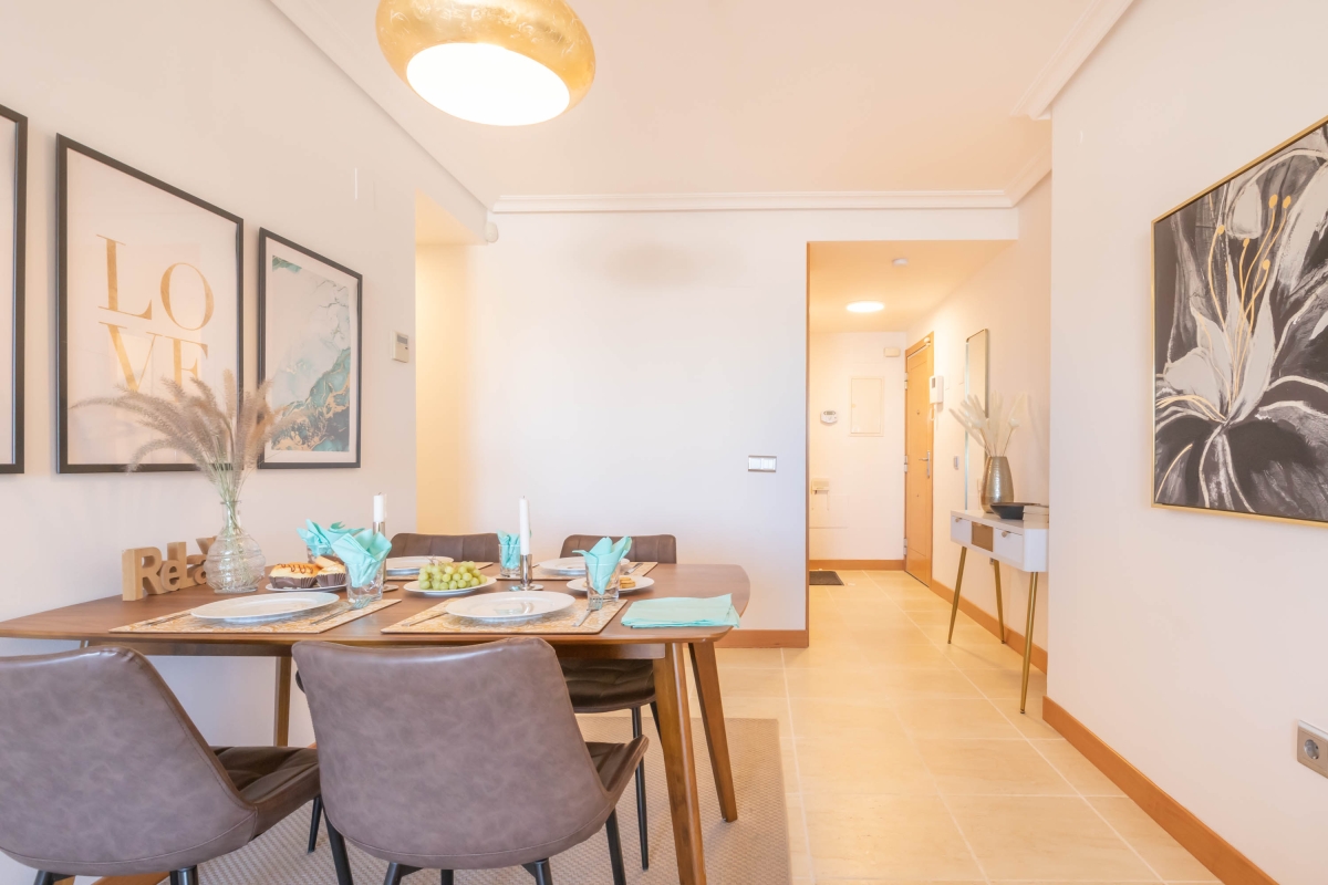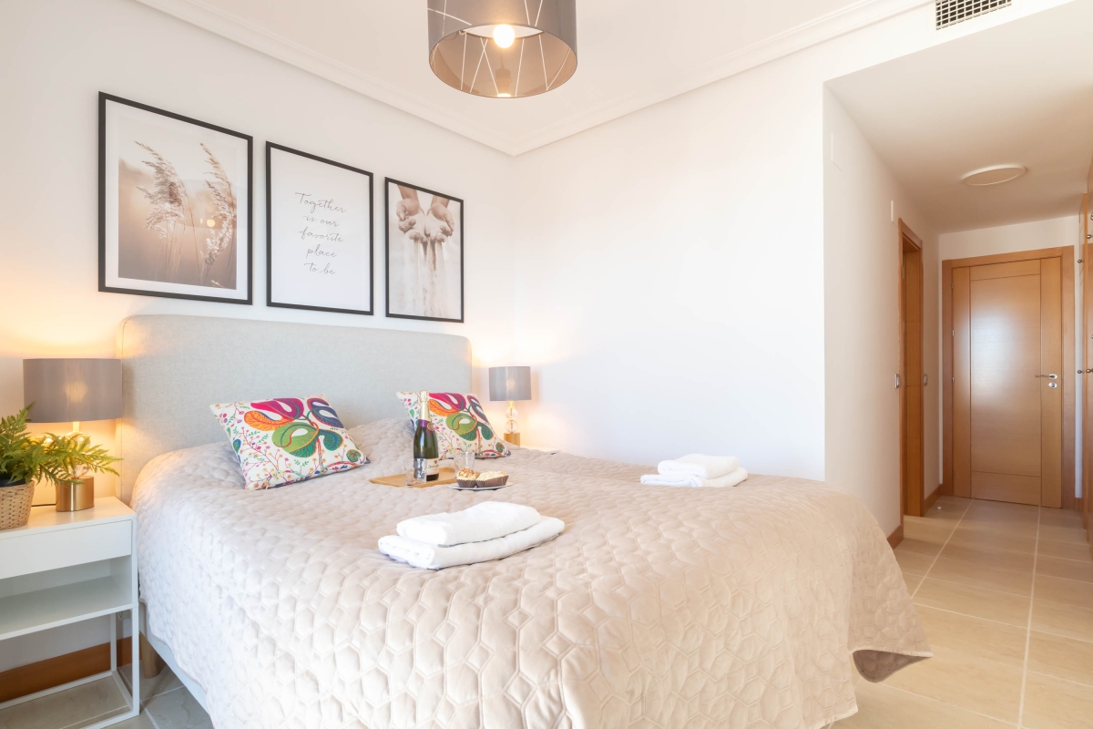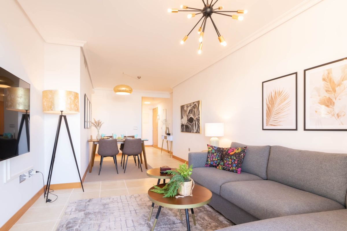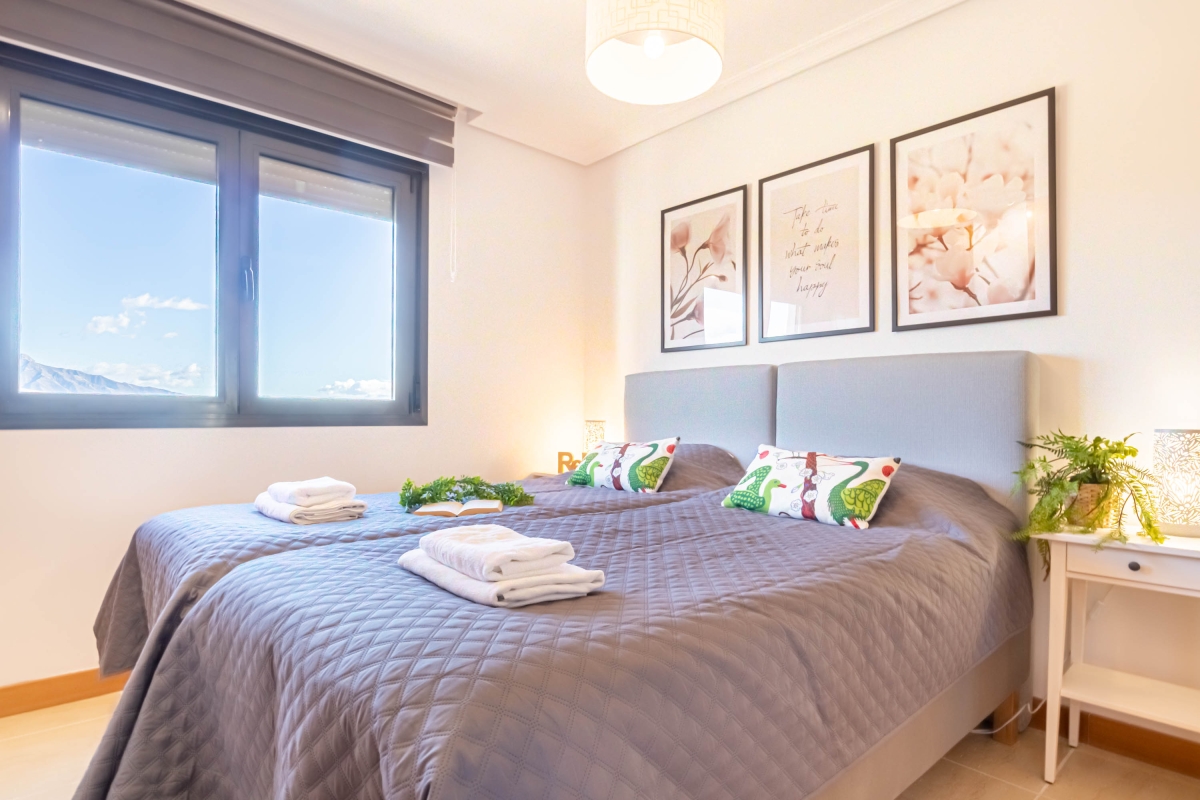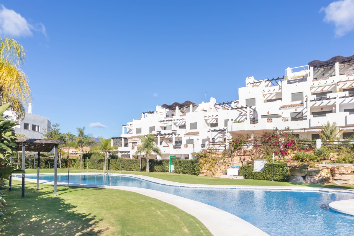 Soak up a classy and versatile vacation at this luxuriously equipped, 2-bedroom holiday apartment for up to 5 guests! From golf enthusiasts to laid-back vacationers and lovers of swimming, this amazing holiday apartment is perfect for a well-rounded vacation on Costa del Sol. The rental is located in a lush apartment complex, just a few steps from the nearest golf course, and offers access to a massive shared outdoor pool and garden area under the vibrant Mediterranean sun. The apartment itself is located on the first floor and has lift access, air-conditioning and central heating for pleasant year-round stays. The elegant and sun-washed living room consists of a large, open and modern space with double access to the big, sunny terrace. The terrace overlooks the manicured gardens of the complex and has alfresco dining, sun loungers and long, relaxing views for uninterrupted relaxation. The living room is furnished with a sofa with a coffee table, Smart TV, a modern dining set-up and a kitchen fully equipped with all essential utilities, including a dishwasher. Furthermore, thanks to a delightfully peaceful setting and amenities like a laptop-friendly workplace, the versatile apartment is ideal for a romantic vacation, a family getaway as well as working remotely! Sleeping Bedroom 1: A splendid master bedroom with a double bed, a wardrobe , an ensuite bathroom and direct access to the terrace. Bedroom 2: A naturally-lit twin bedroom with 2 single beds and a wardrobe. Extra: There is a single sofa bed in the living room. Bathrooms Bathroom 1: A modern, ensuite bathroom with a bath, shower and WC. Bathroom 2: A bright bathroom with a bath and WC. Additional • Wi-Fi • Shared outdoor swimming pool (unheated) • Extra Child-Friendly • Suitable for Elderly • 2 Sun Loungers • Laptop-Friendly Workplace • Pets not allowed - Free public parking The swimming pool is open from May 1st to October 31st. Opening hours: In May and October from 11:30 am to 7:30 pm. In June, July, August and September from 12:30 pm to 8:30 pm. Also available for longer-term rental in the winter season. Please ask for special prices. Location The holiday apartment is just a few minutes' drive from the various amenities and exciting attractions of Costa del Sol. Within a 10-minute drive, guests will reach Playa de Guadalmansa and Saladillo Beach, the animal park Selwo Aventura that is perfect for children, as well as, the waterpark Cableski and Wakeboard Centre with guaranteed dynamic fun. For golf lovers, there are a number of top-class golf courses around, with the closest–Resin Golf and Country Club–just a 5-minutes walk away from the apartment complex. Additionally, for those who want to explore the other famous and attractive towns of Costa del Sol, then Marbella is just 20-minutes away, the beautiful Mijas Pueblo is half an hour's drive whereas Málaga is a 1 hour and 15 minutes from here. There is a grocery store at just a 4-minute drive from here to facilitate a carefree self-catered stay. The nearest international airport is Málaga-Costa del Sol.