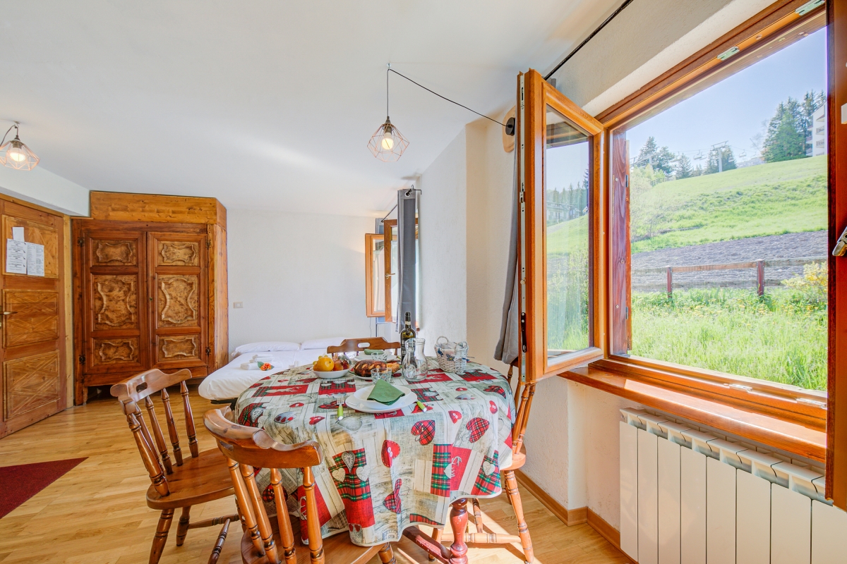 Perfect for an absolutely carefree ski break, this ground-floor studio in Sauze d’Oulx will provide you with one of the easiest ski bases on The Milky Way ski slopes. The cosy studio is furnished with a double sofa bed and a full family bathroom complemented by a well-equipped kitchen cum diner for hassle-free self-catering holidays. A microwave, oven, fridge, toaster and coffee machine are available for use. Other desirable amenities include free Wi-Fi, Smart TV and ski storage.